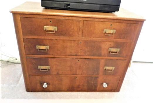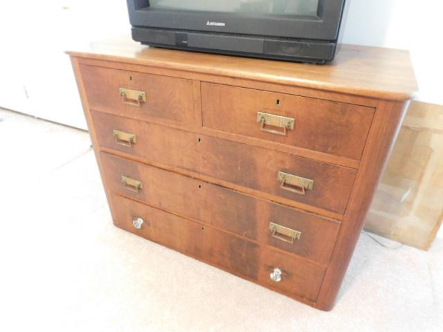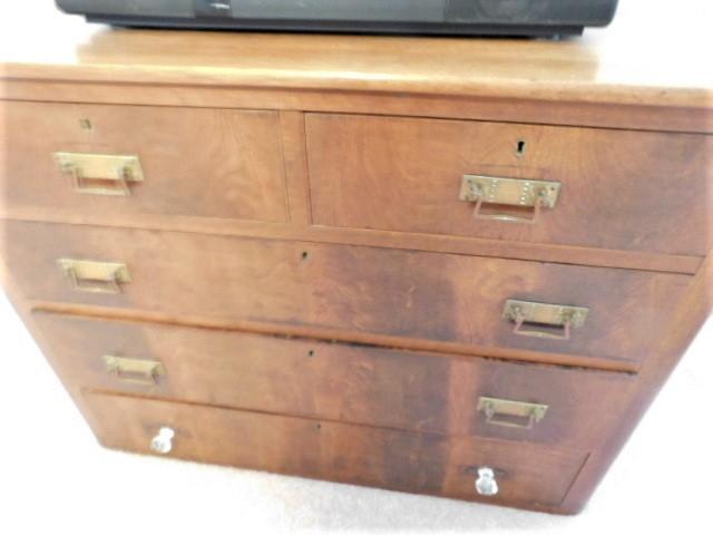 Antique Two over Three Chest of Drawers has holes drilled on top for past attachment. Downstairs item