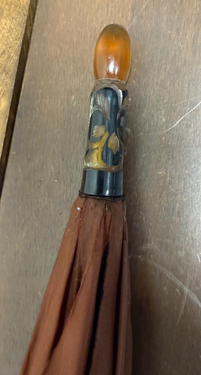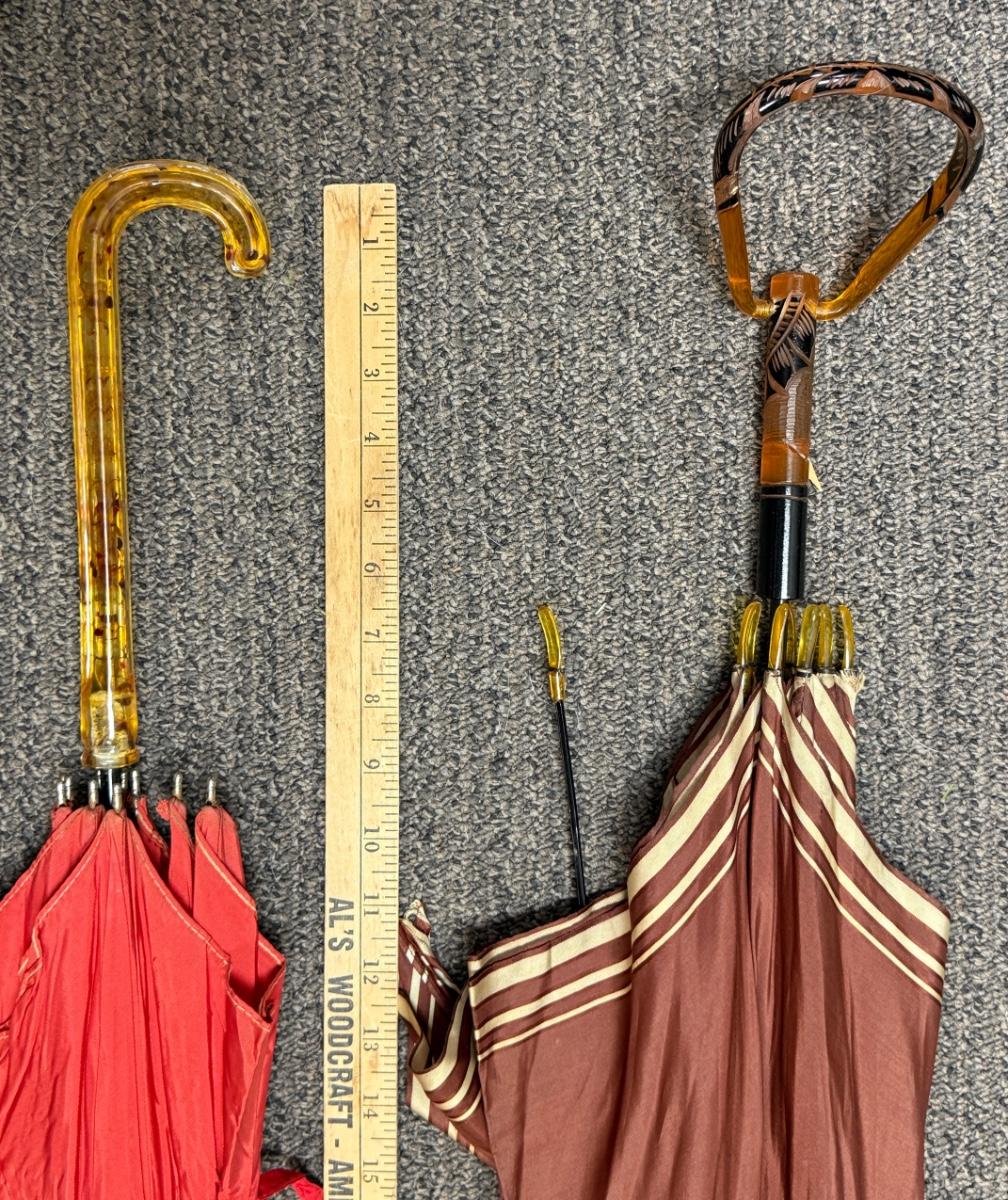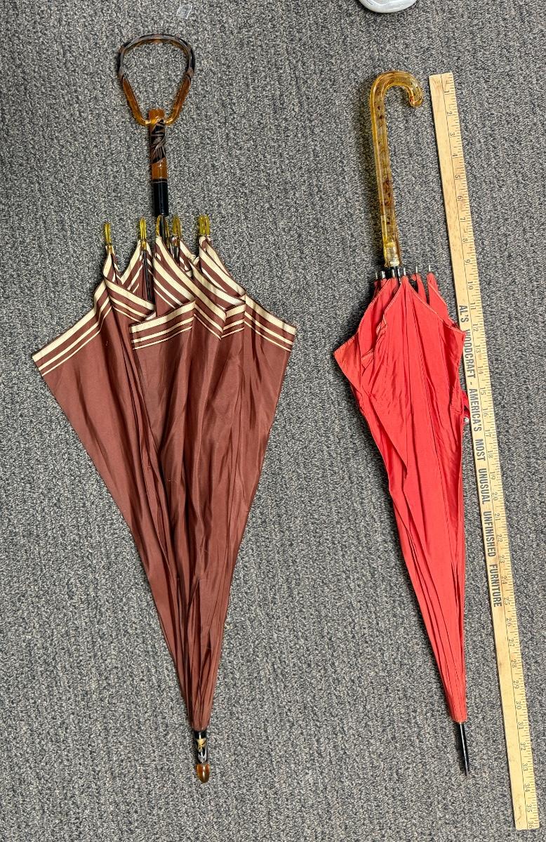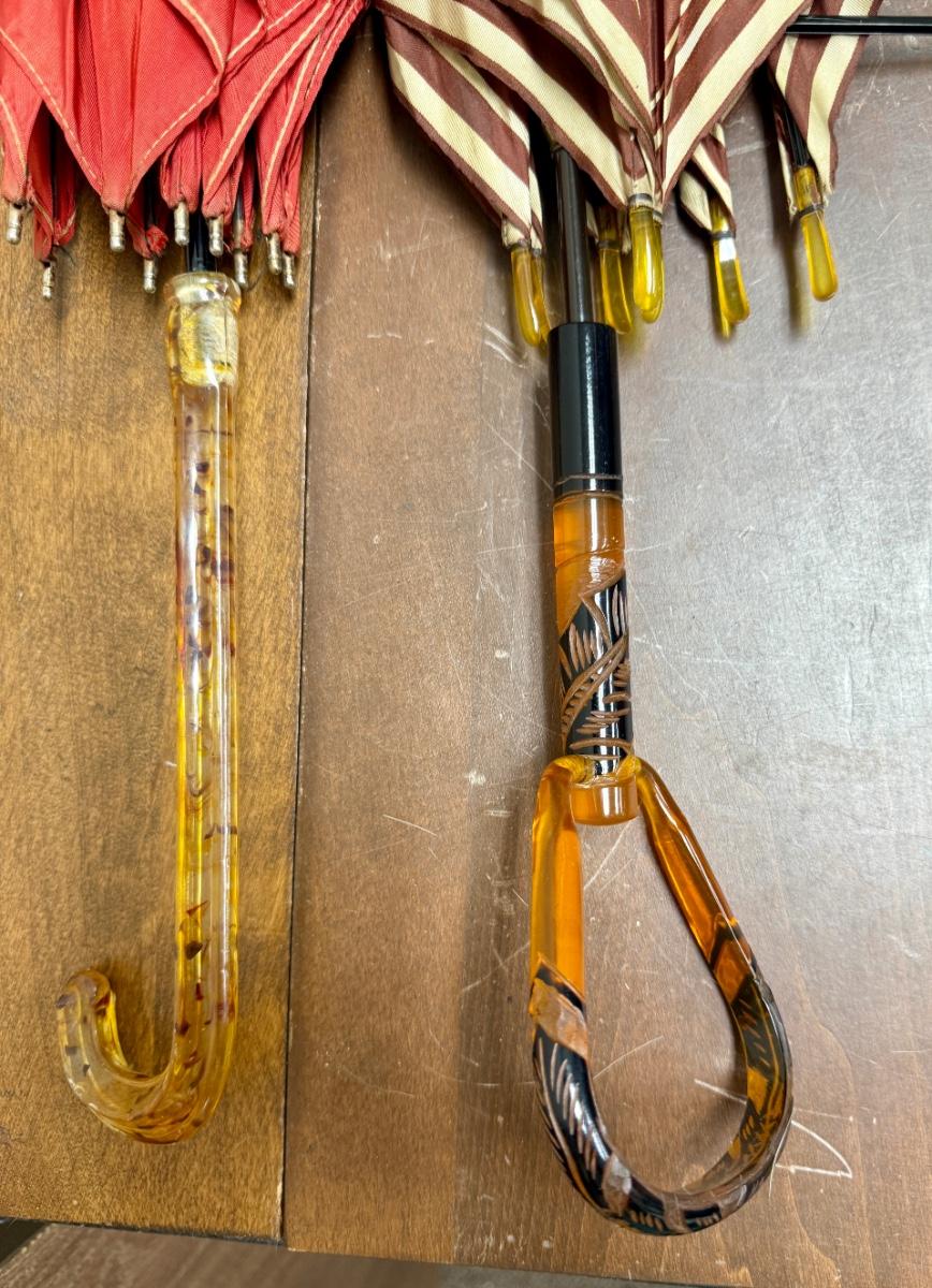 Antique Umbrellas Parasols - lot of 2 old silk umbrellas with amber handles