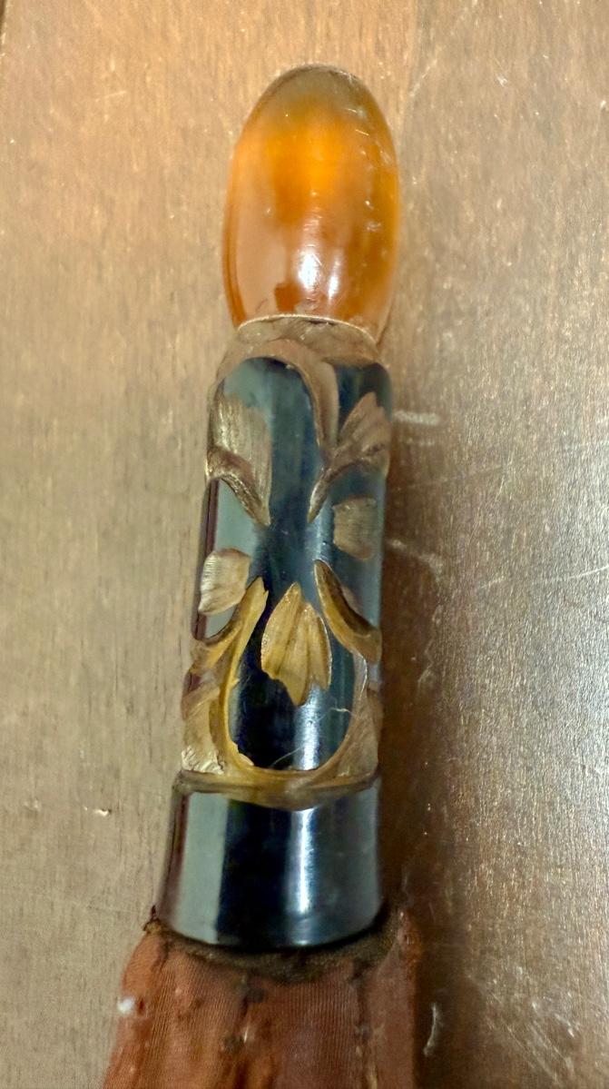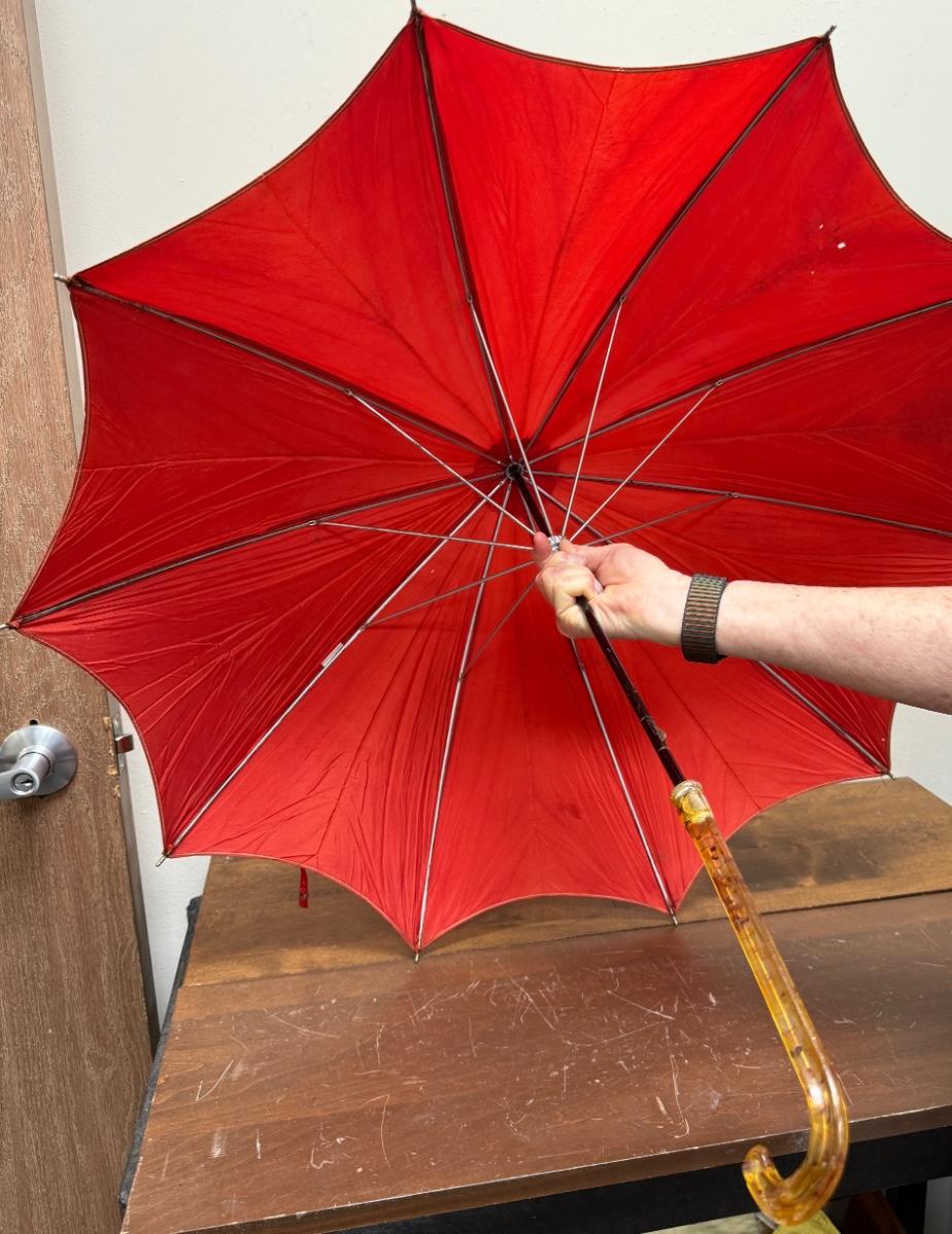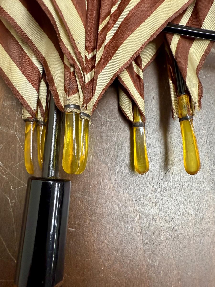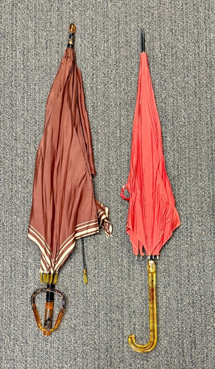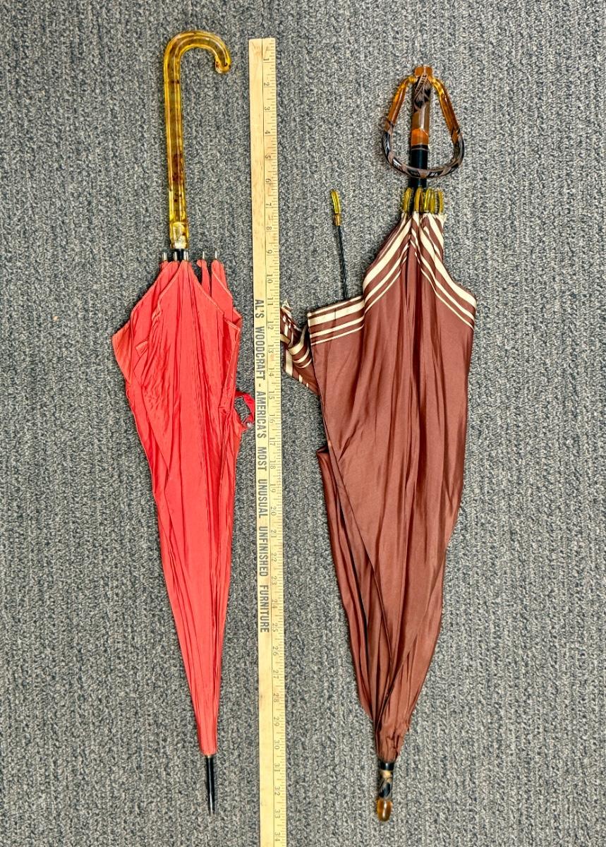 Antique Umbrellas Parasols - lot of 2 old silk umbrellas with amber handles