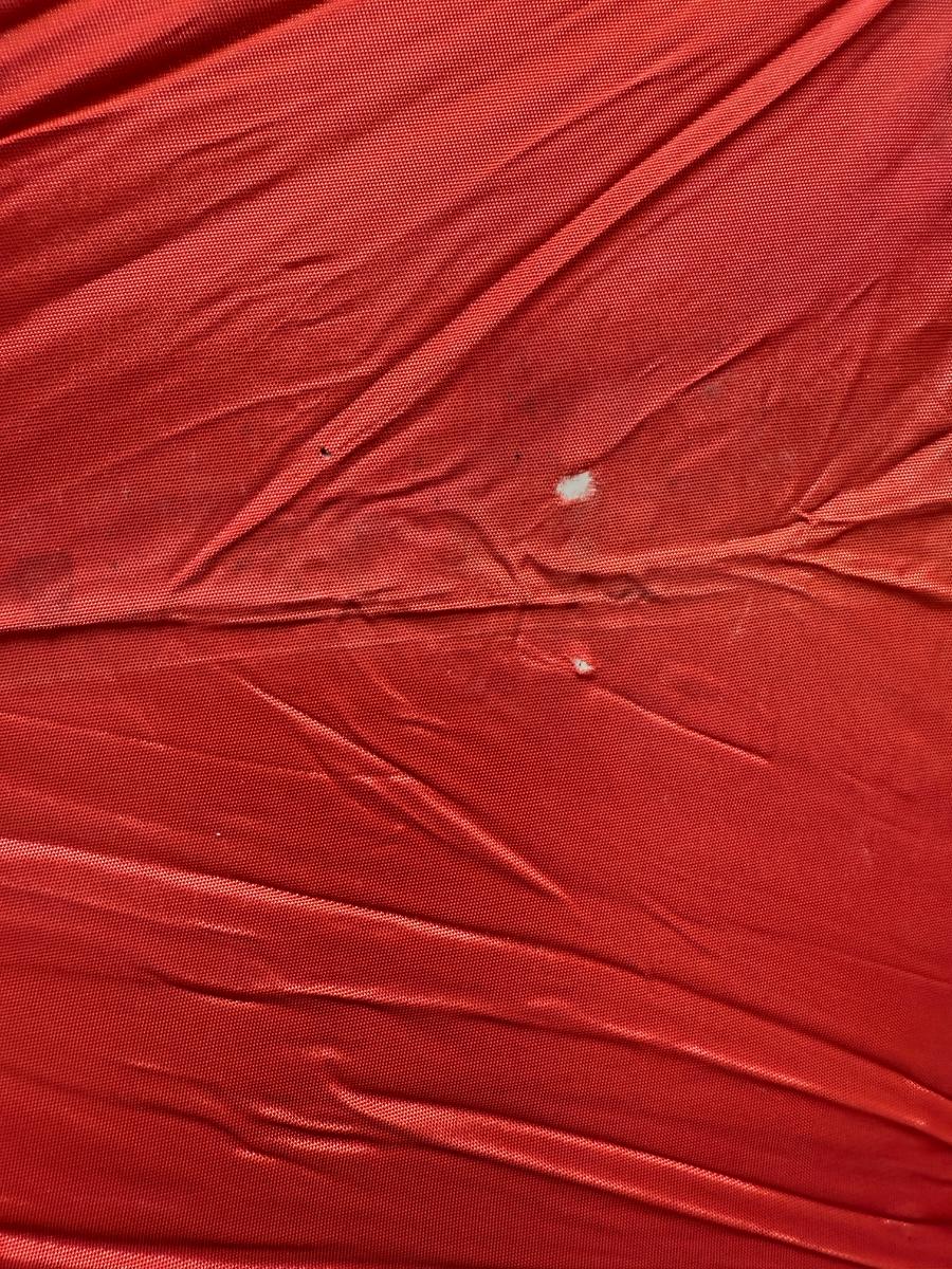 Brown one has large rip that couldn't be captured in photos without making it worse. The red one is in better shape, but still wood need some repair. They are super cool just the way they are, though.