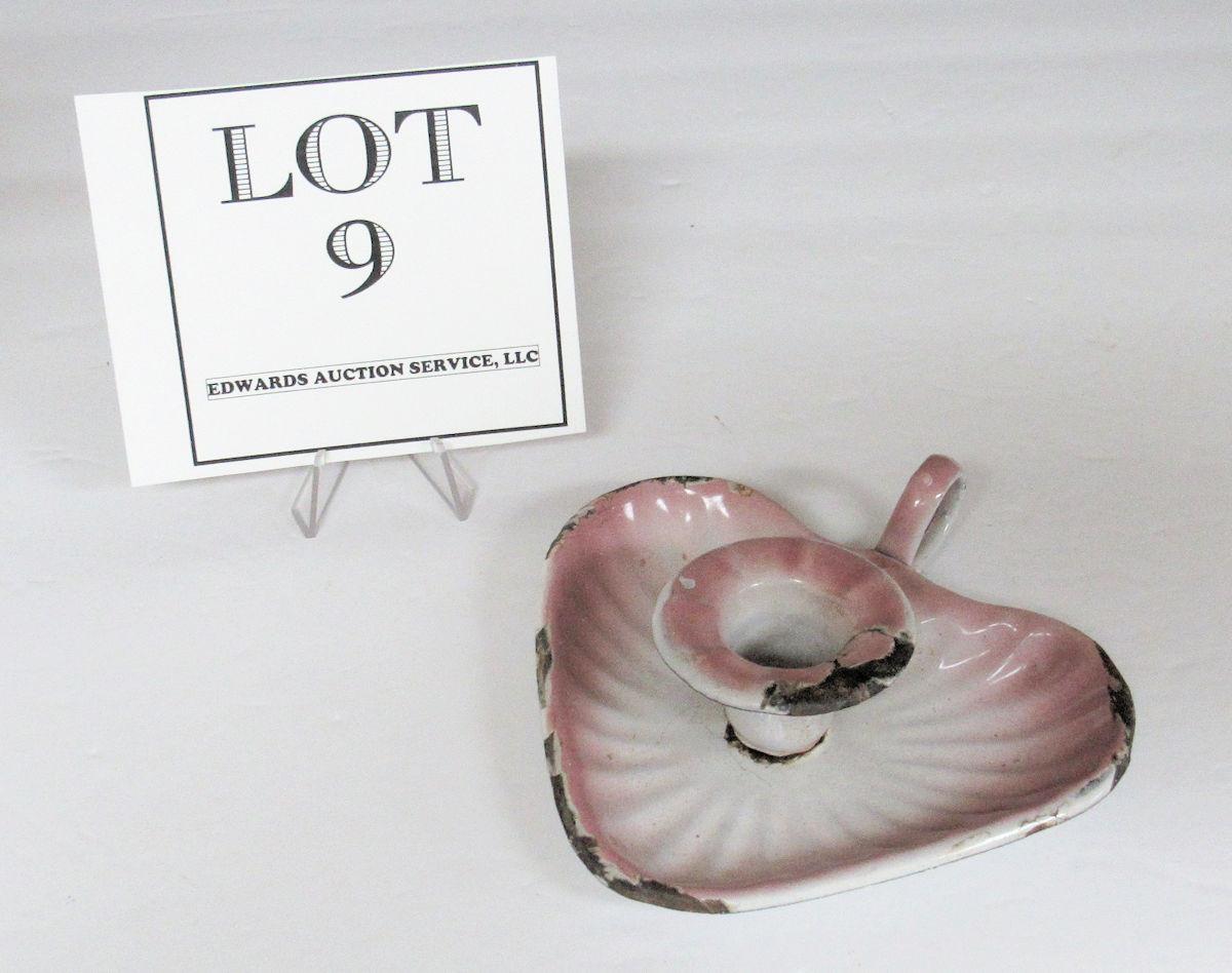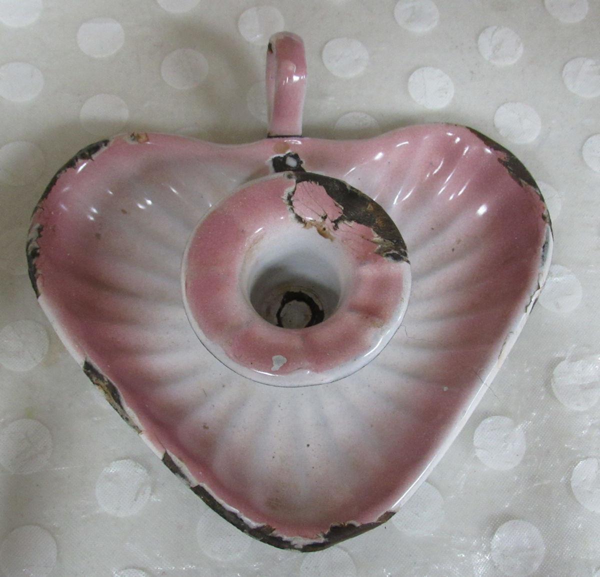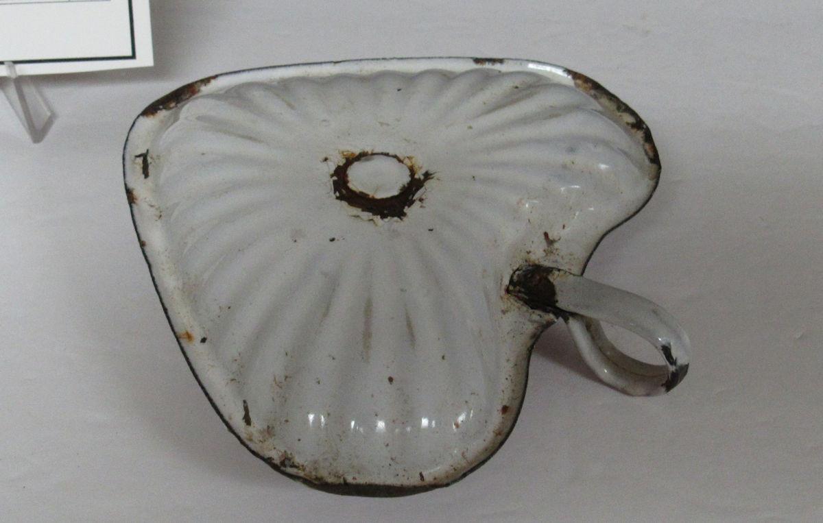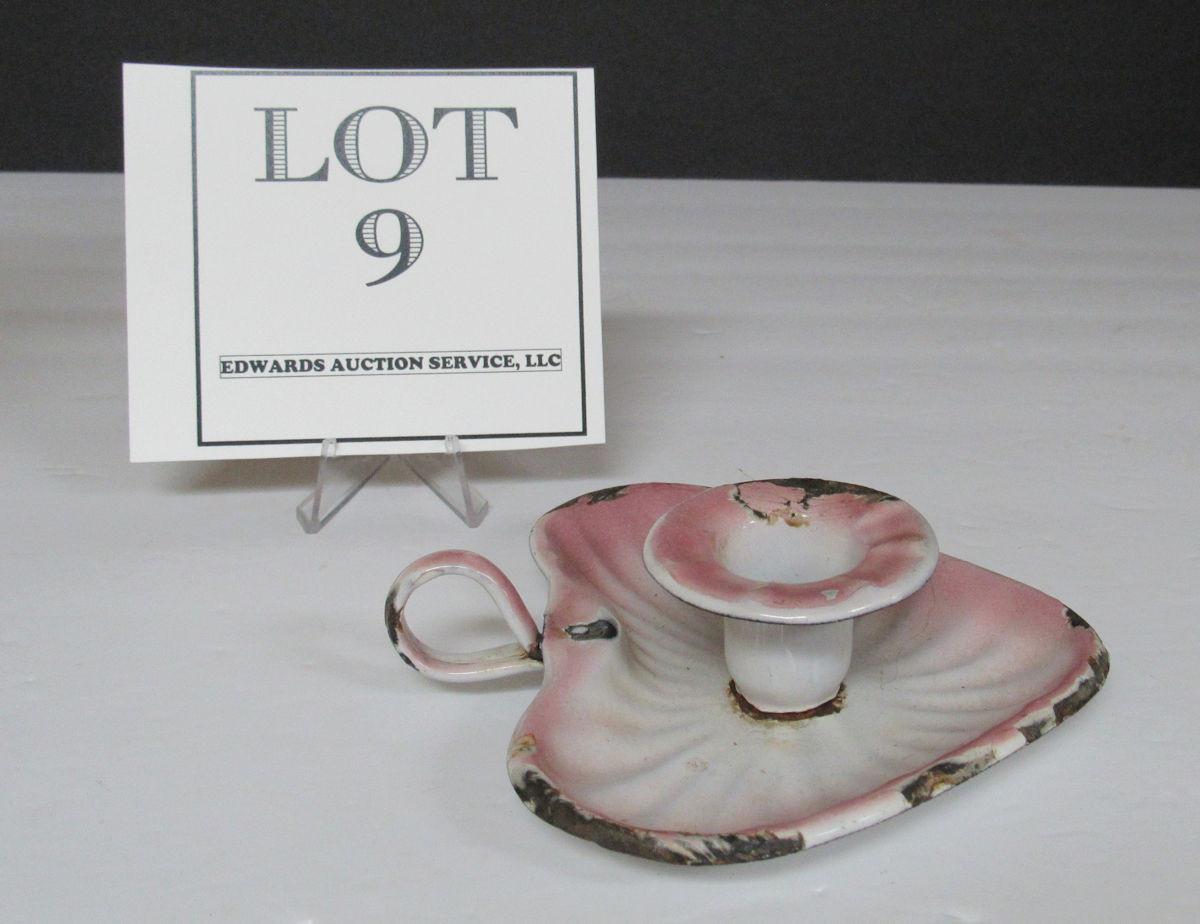 Antique Unusual Enamelware Chamber Stick Has Wear, Great Character