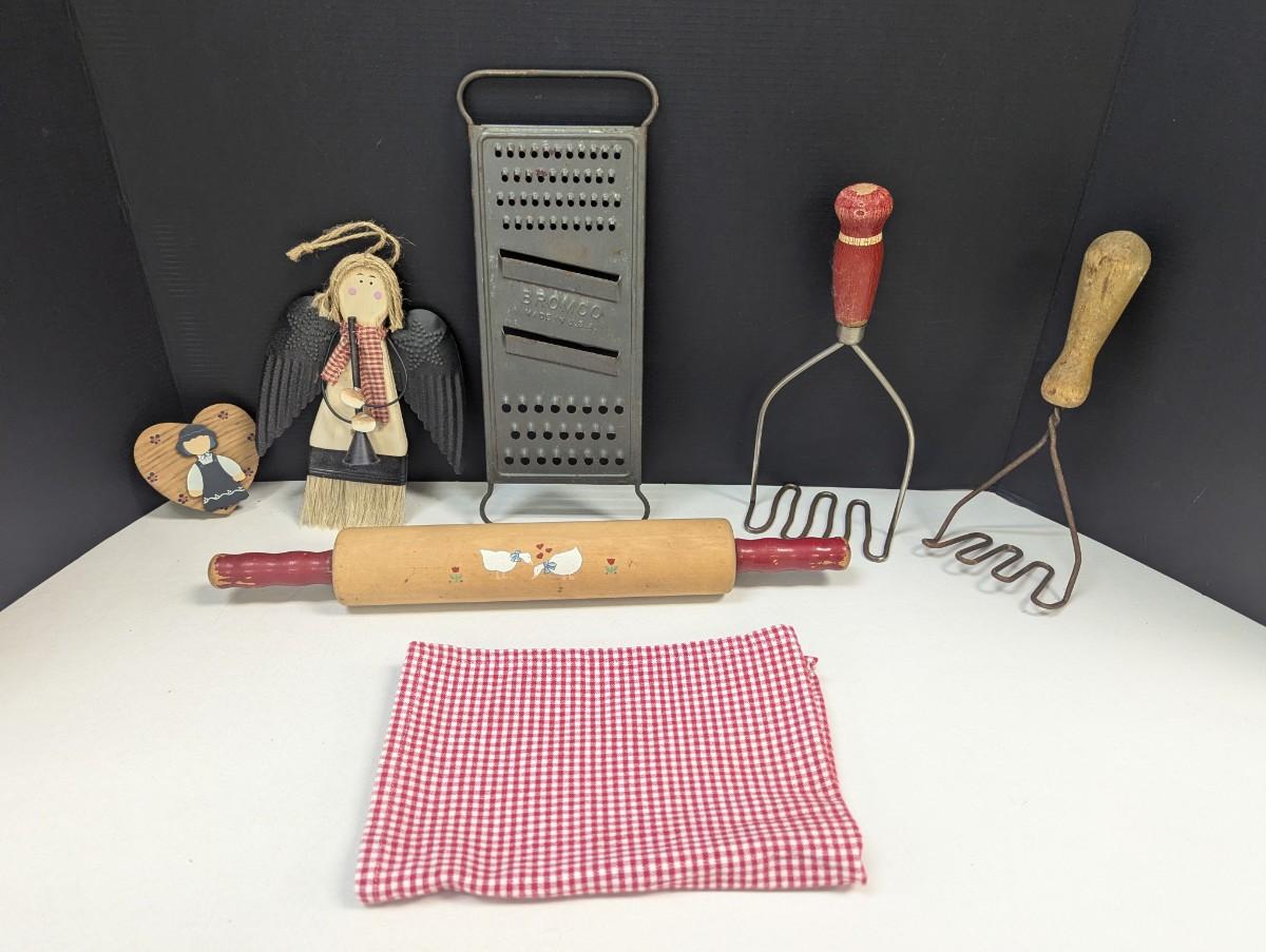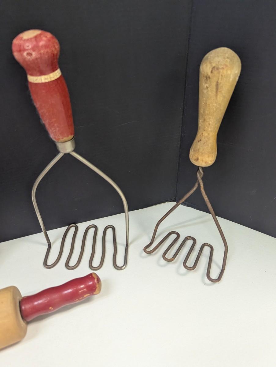 Antique Utensils & Vintage Wooden Handled Potato Mashers