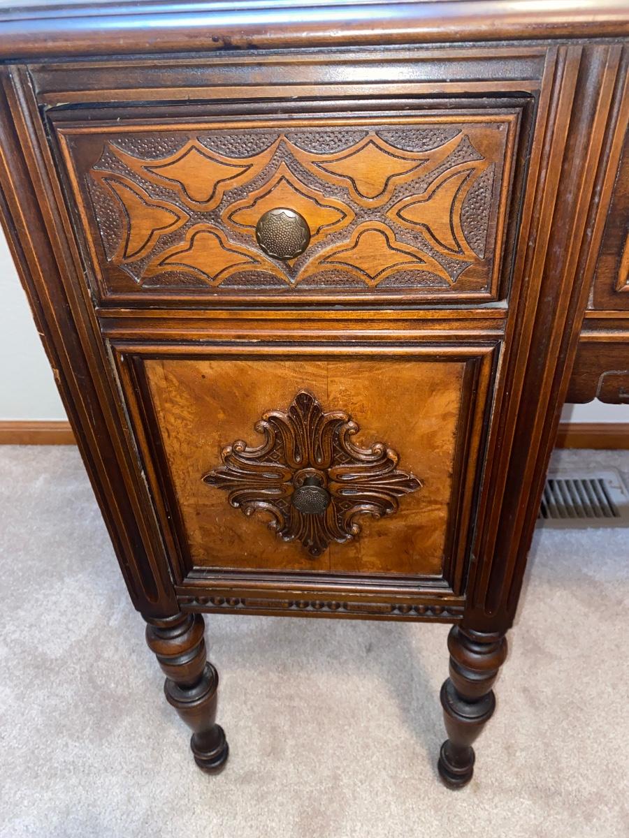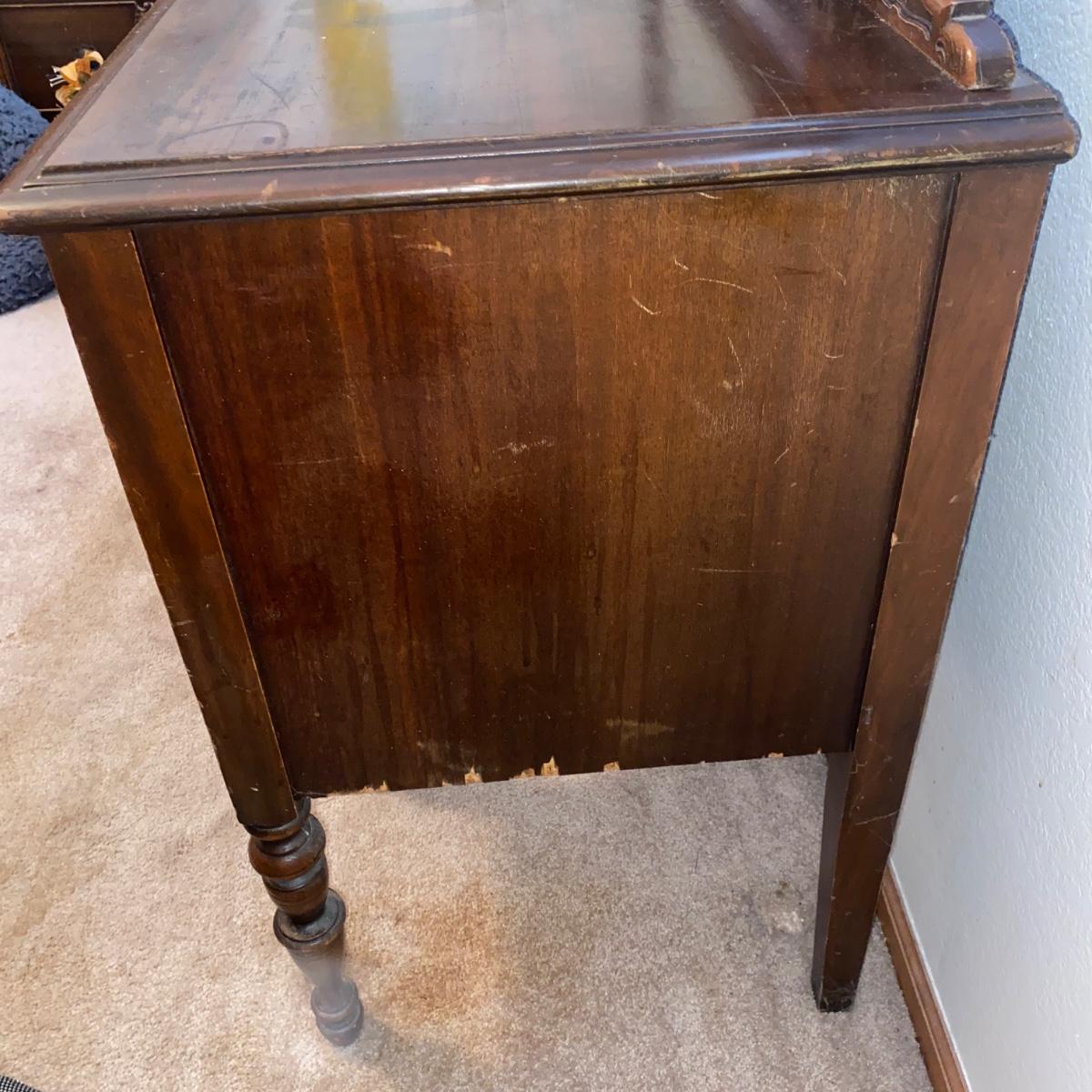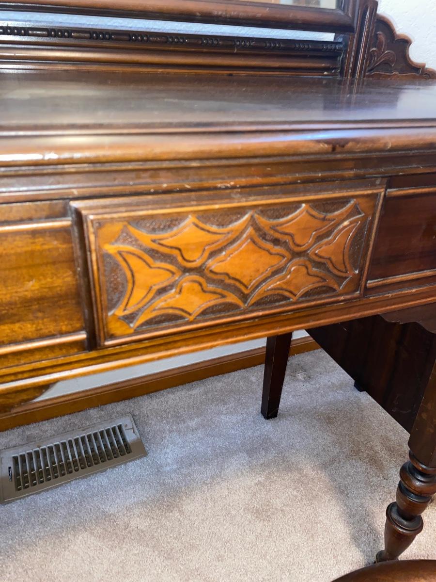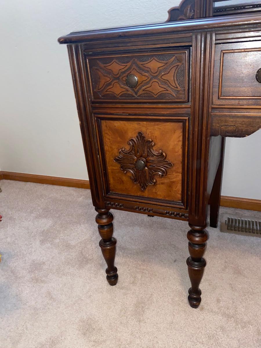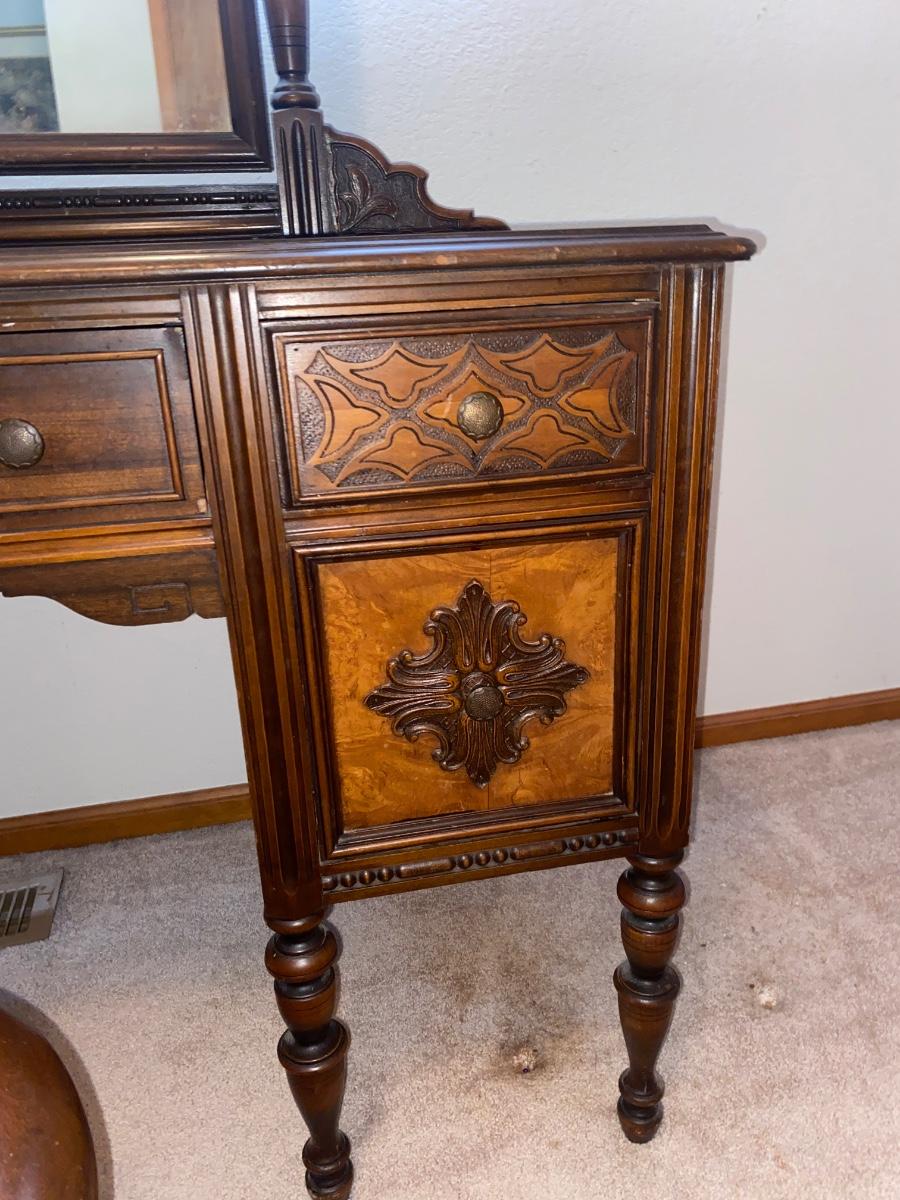 ANTIQUE VANITY and GLASS FOOTED STOOL HUNTLEY SIMMONS FURNITURE COMPANY