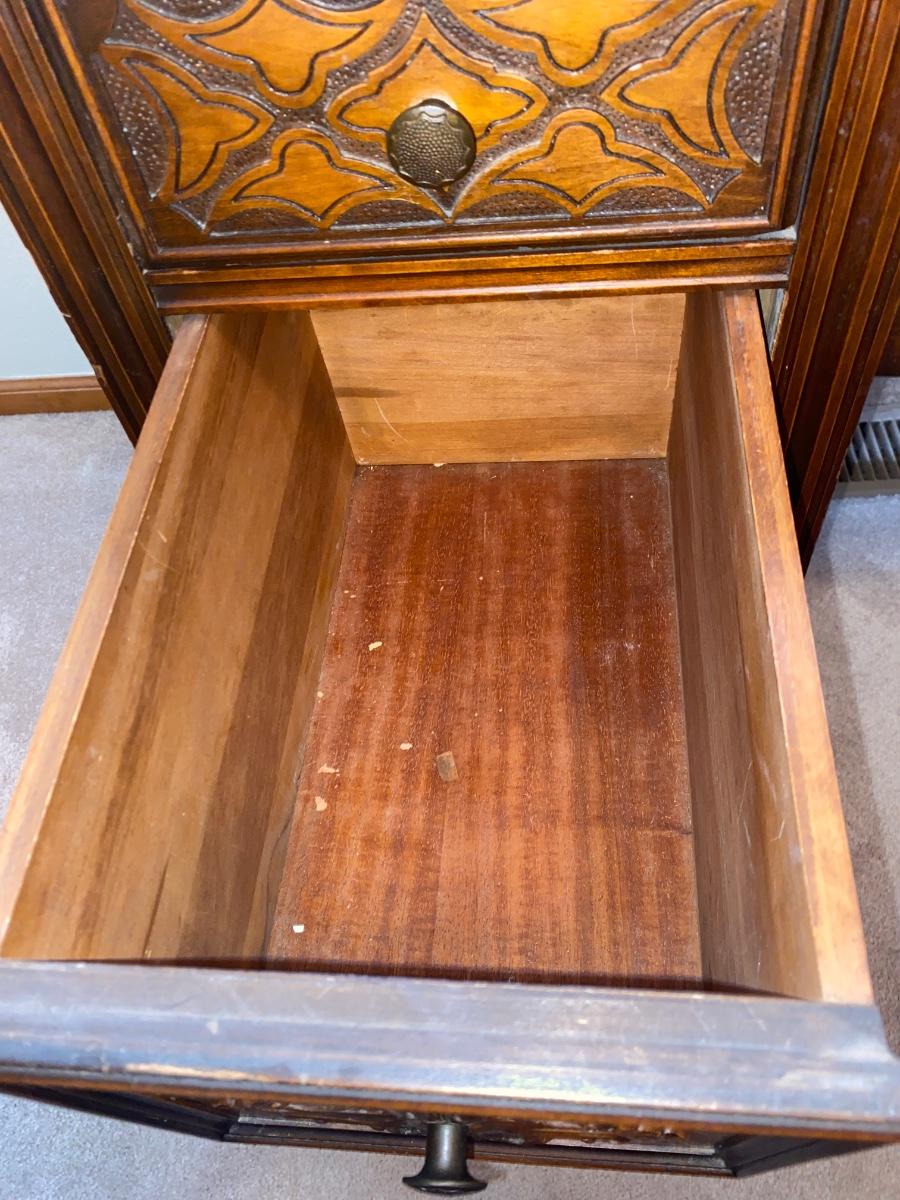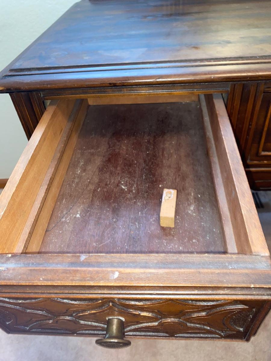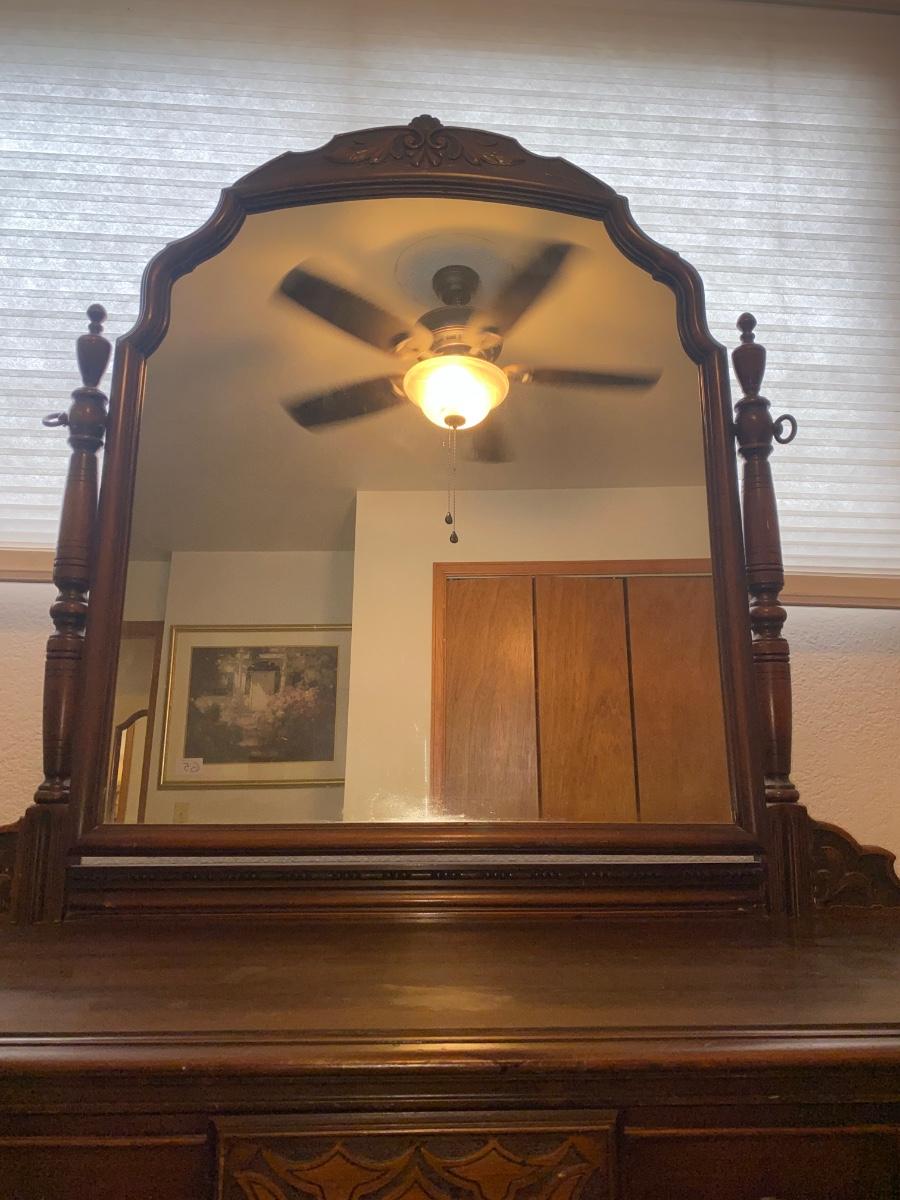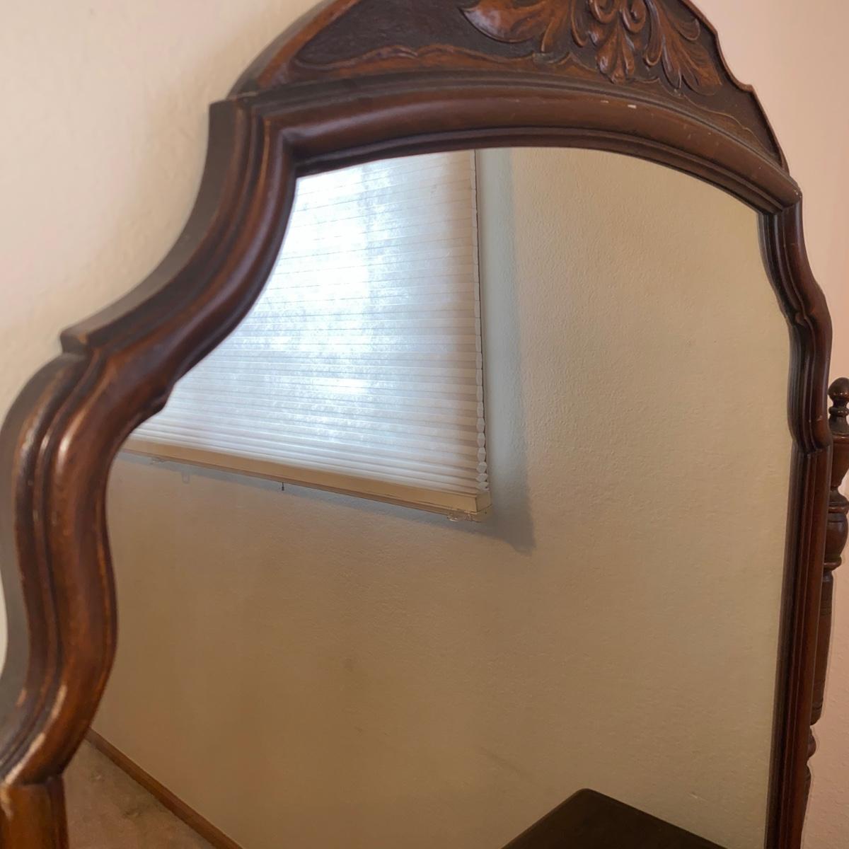 ANTIQUE VANITY and GLASS FOOTED STOOL HUNTLEY SIMMONS FURNITURE COMPANY