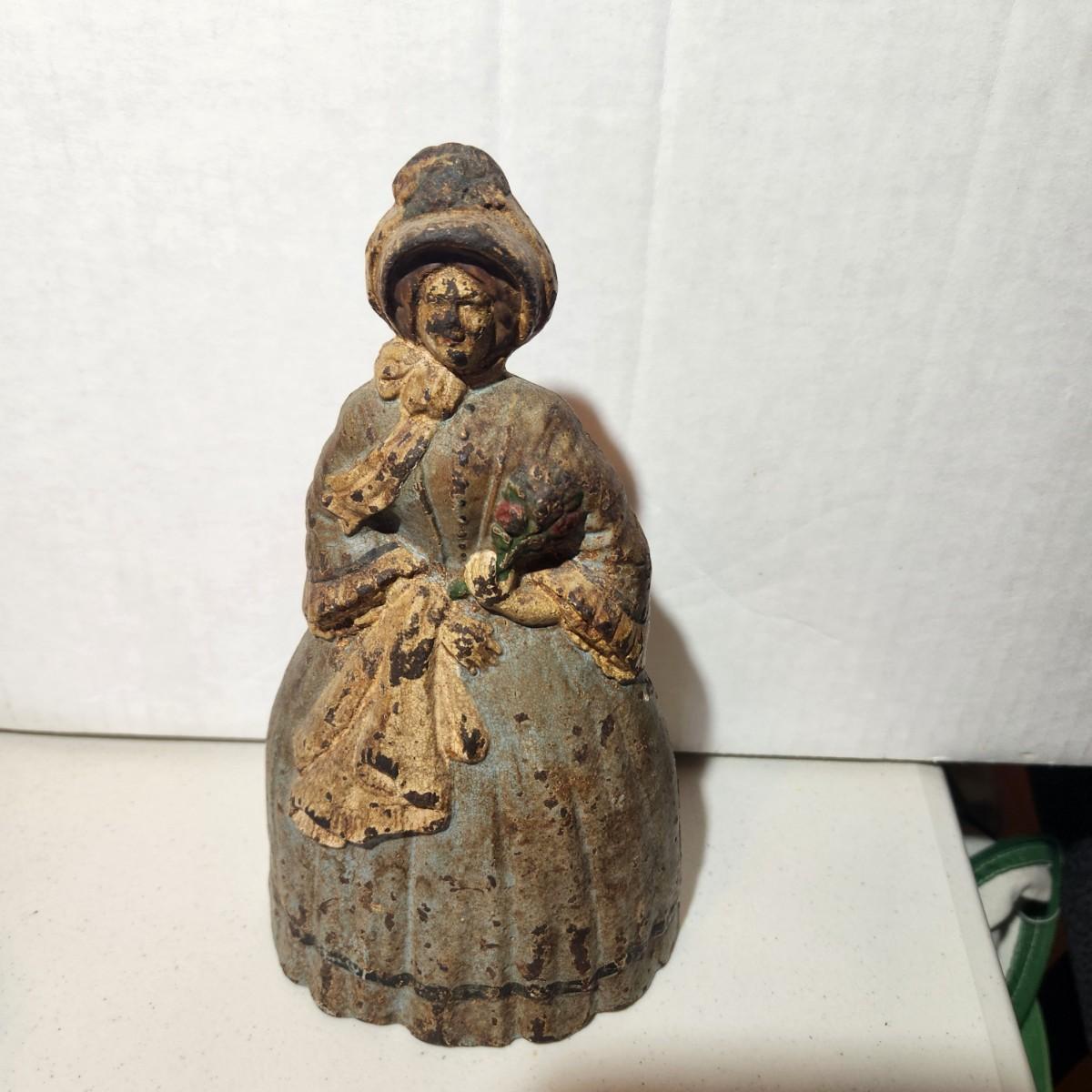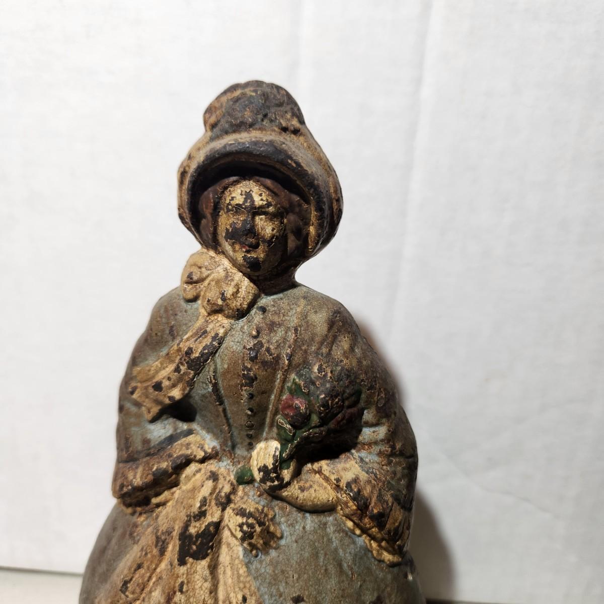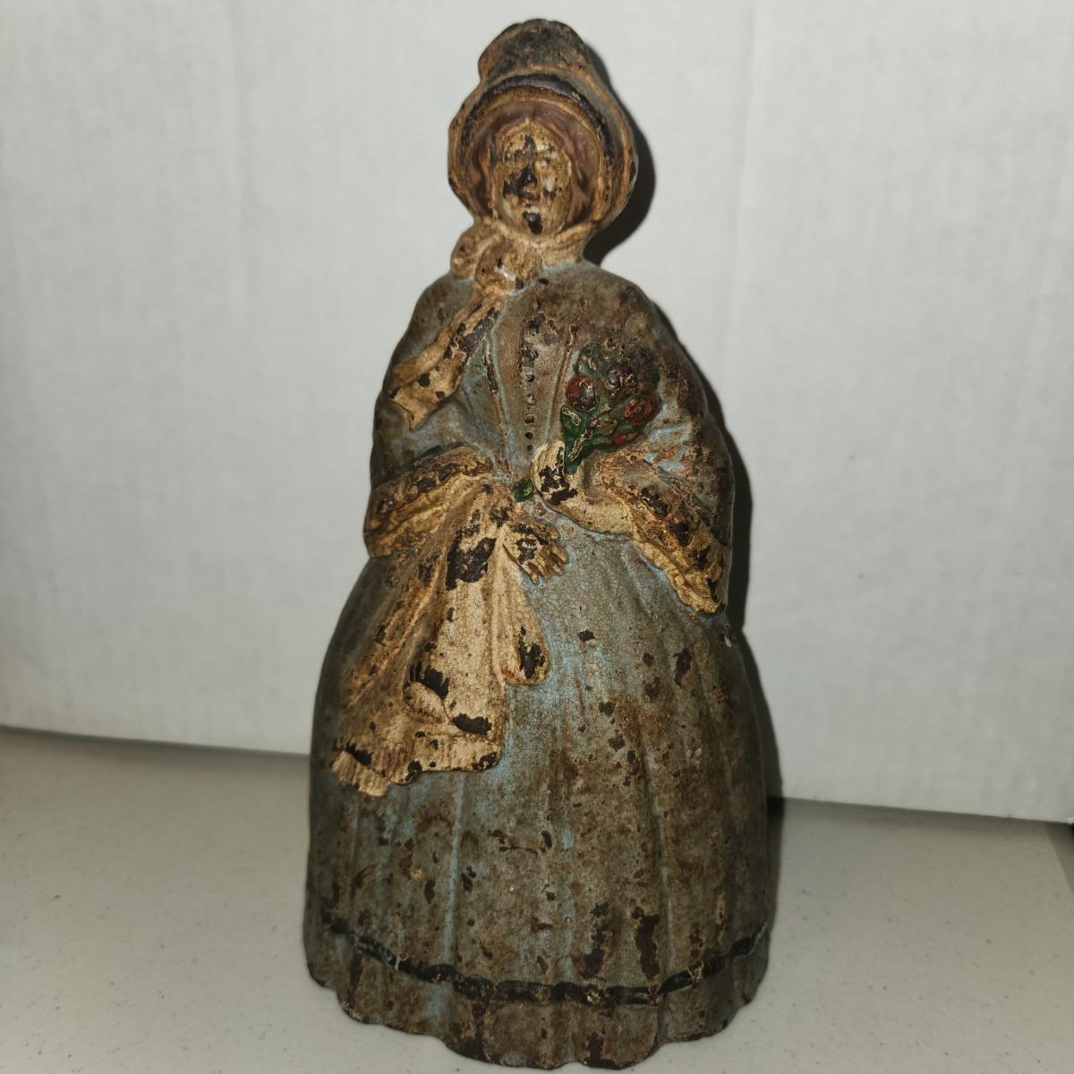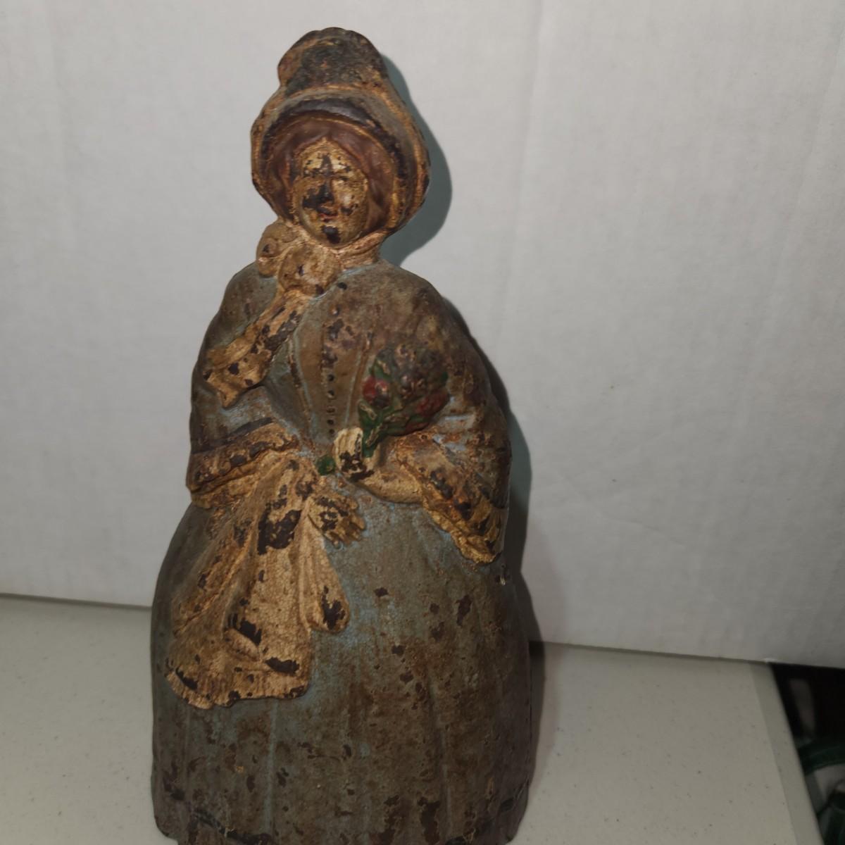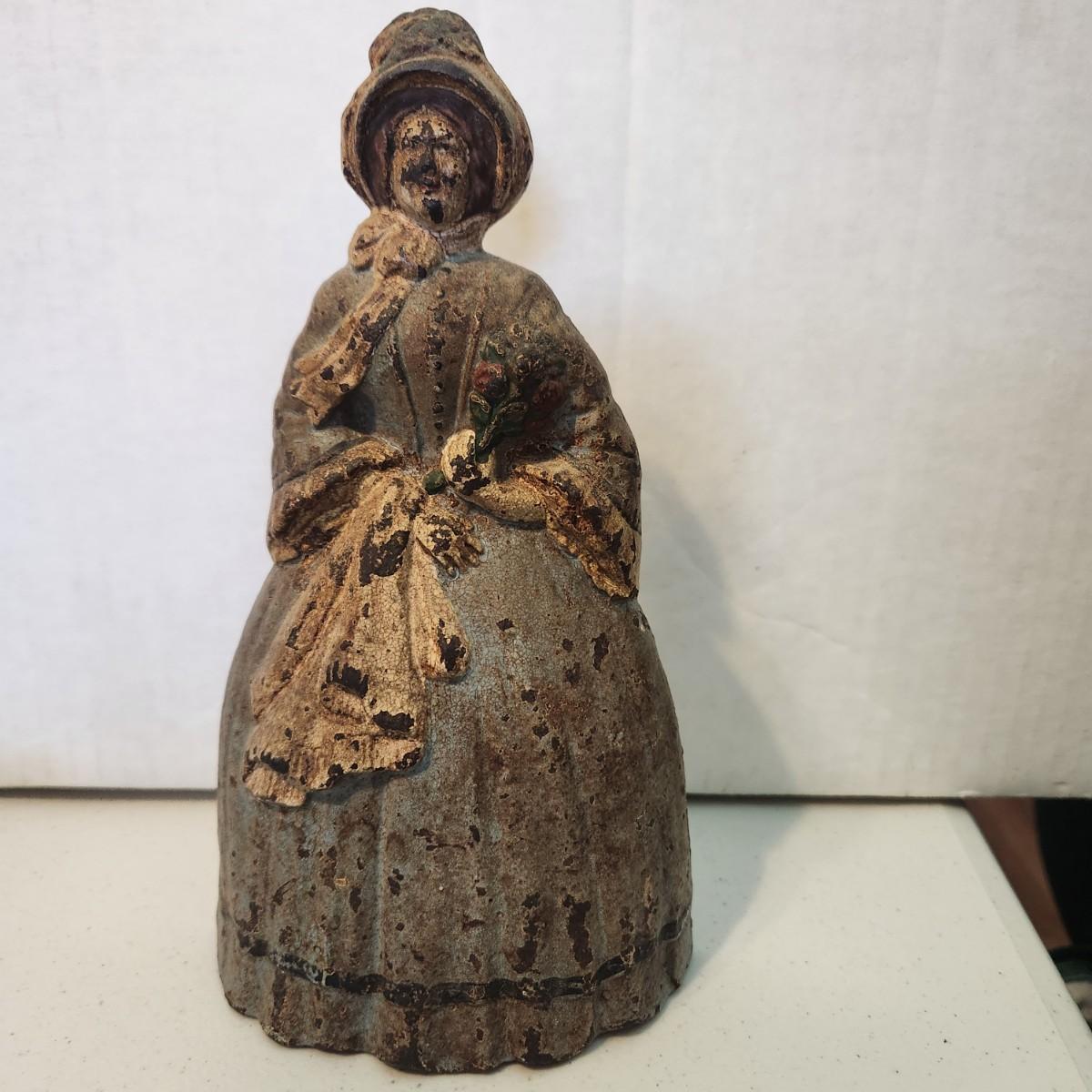 Antique Very Heavy Cast Iron Door Stop 8" Colonial Woman