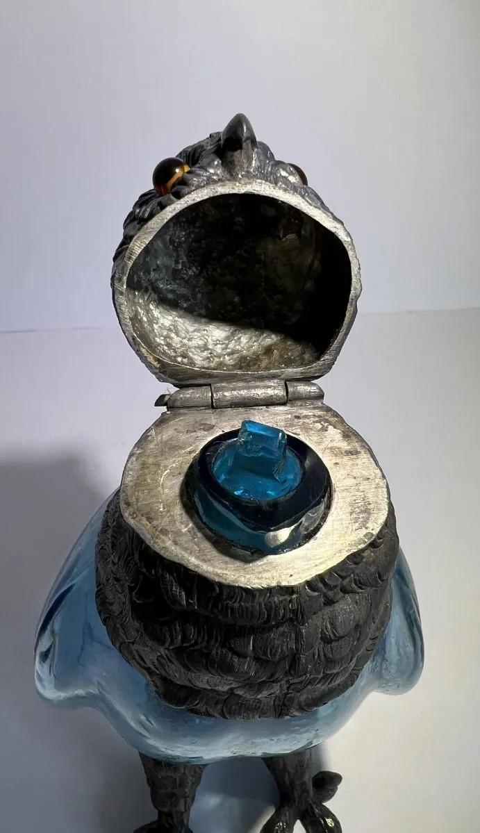 Antique Very Scarce Blue Glass Owl Decanter with Stopper 8" Tall in VG Preowned Condition. $20 DOMESTIC SHIPPING.