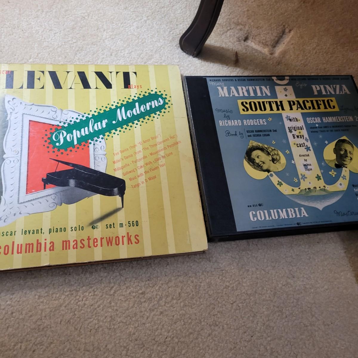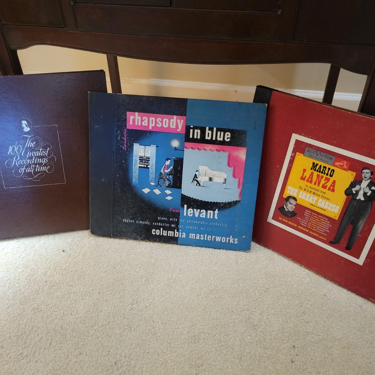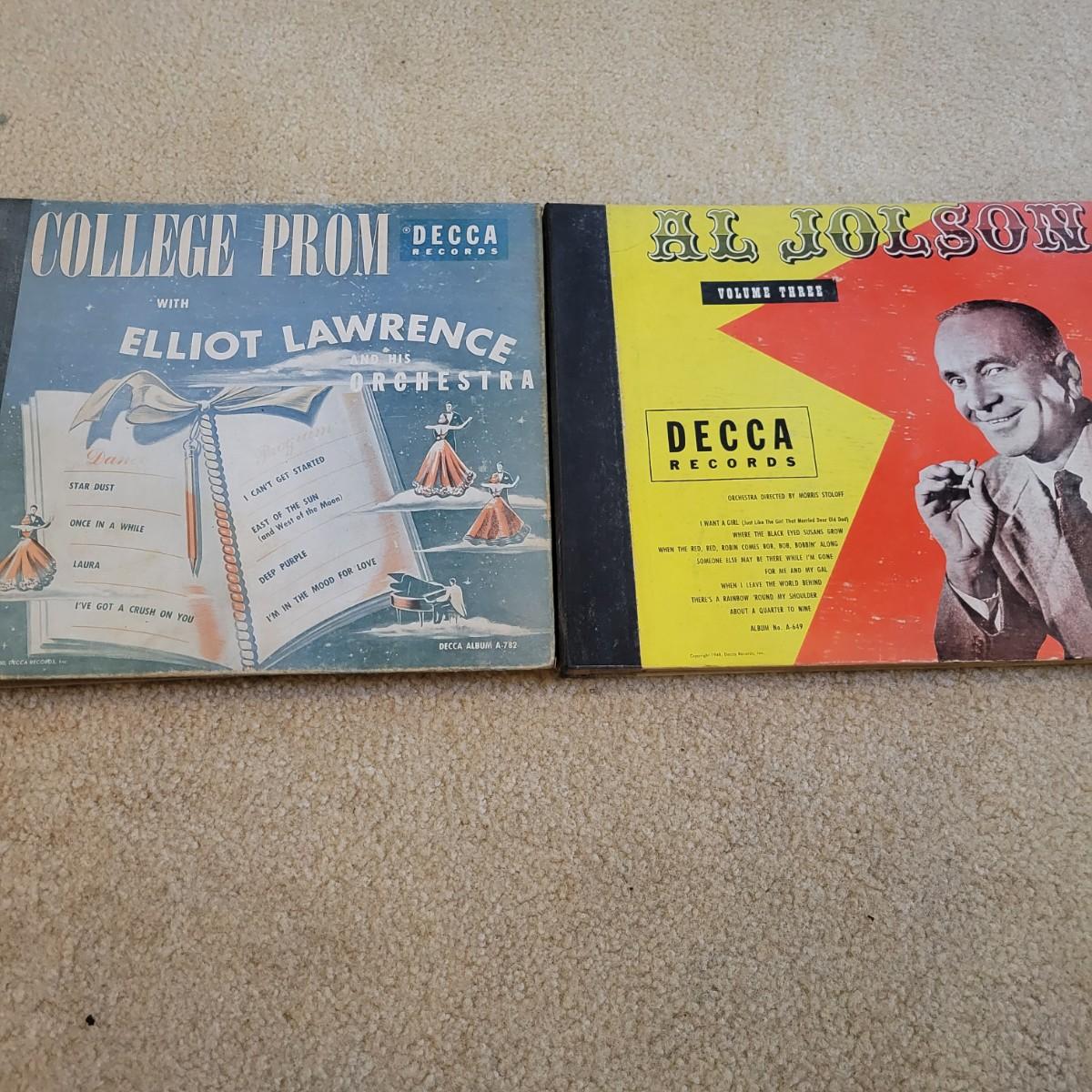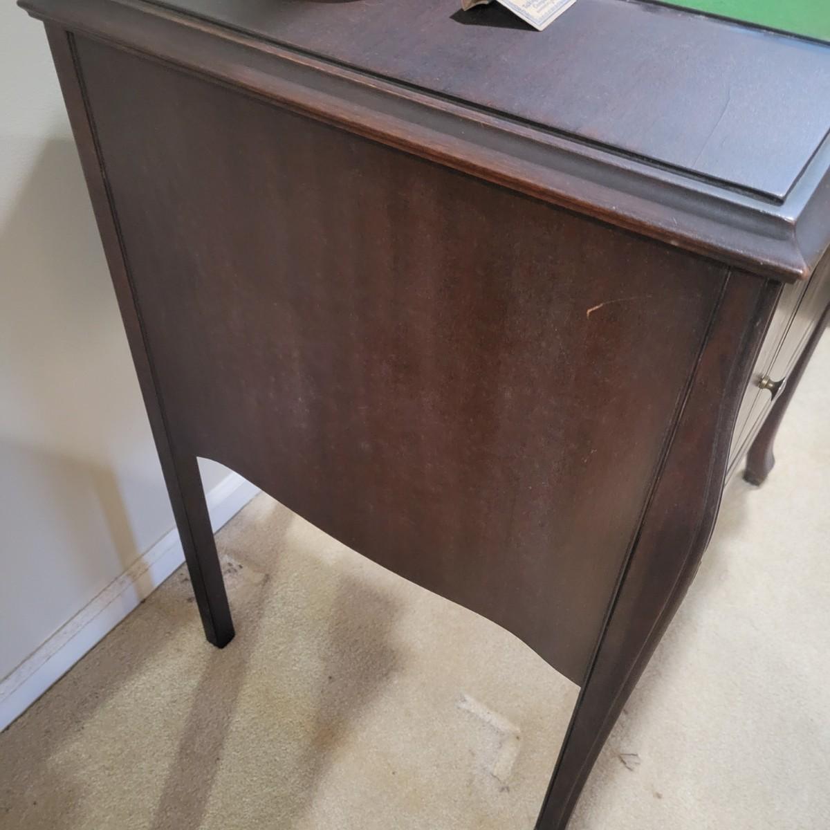 An antique Victor Talking Machine and Victrola recordings in good condition. The console cabinet does have some scratches and blemishes typical of a piece this age. The Victor Talking Machine model VV240 4132 is a humpback style console cabinet with nickel hardware. This item was tested and still works! Spring feels tight and creates a consistent speed. Included with the console is a cleaning pad and weights. Cabinet is a rich cherry stain and features three storage compartments. Also included in this lot is a plethora of victrola recordings. Over 80 recordings featuring Mario Lanza, Al Jolson, Gershon, Perry Como and many, many more. Local pickup only