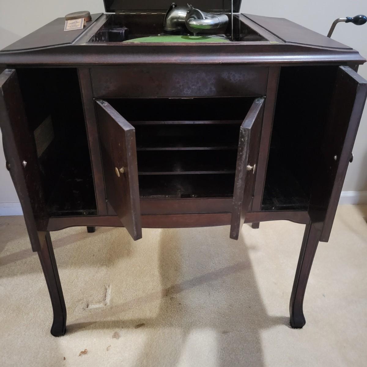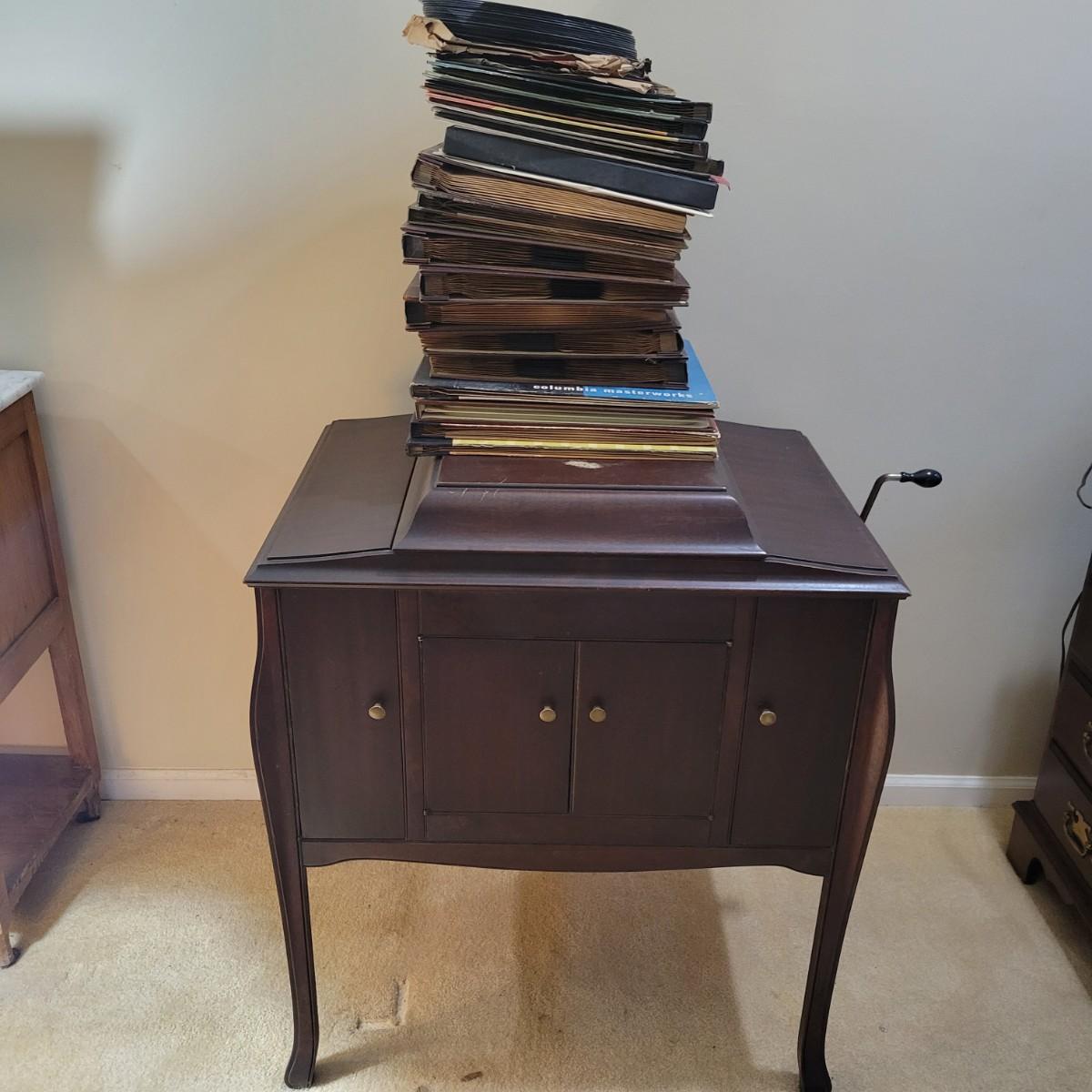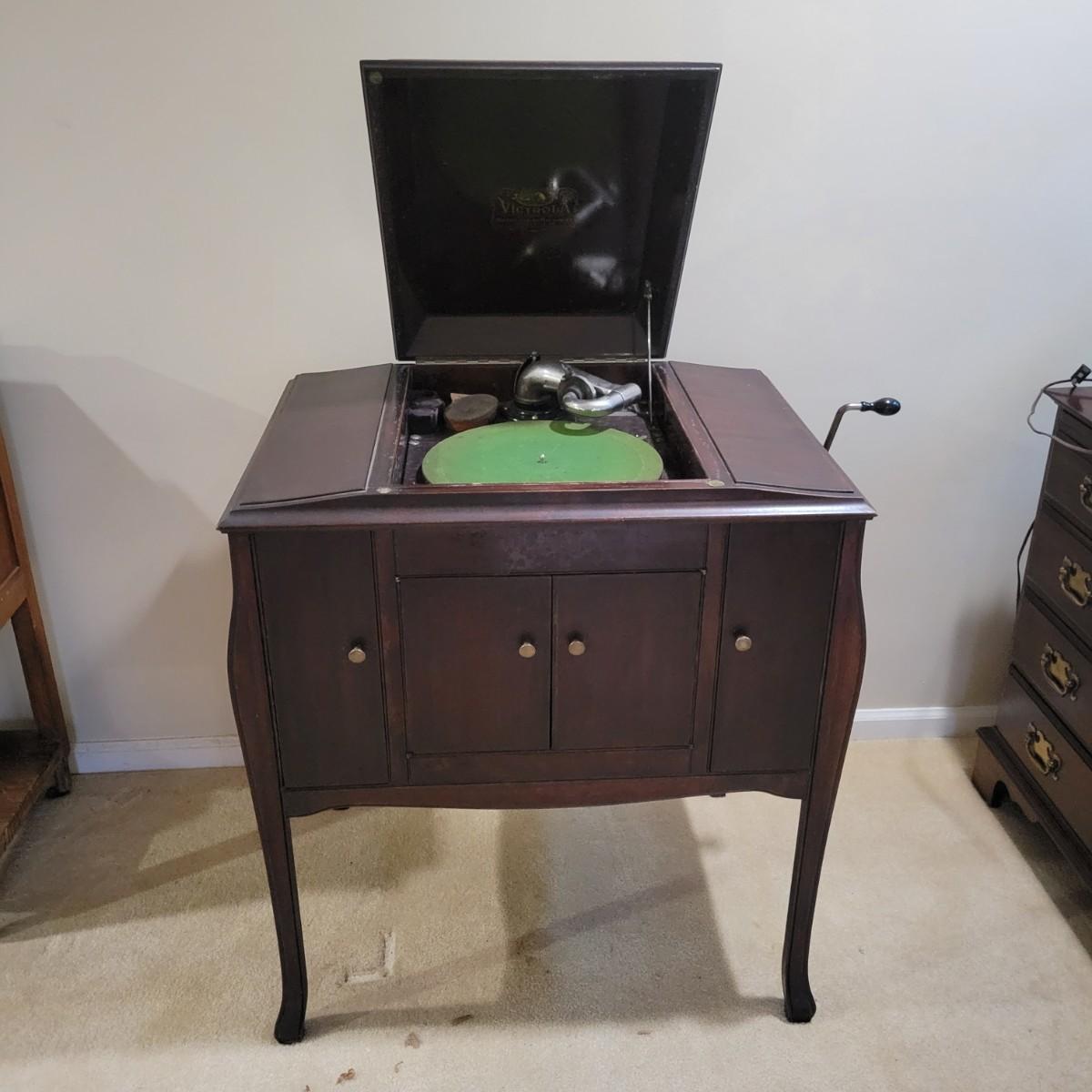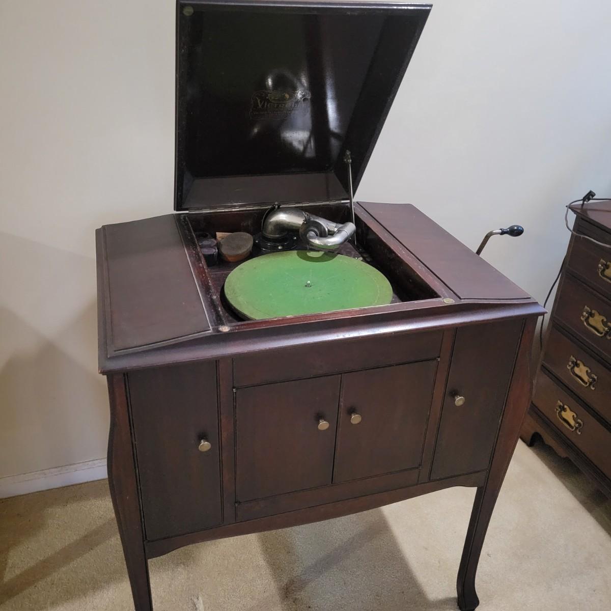 Antique Victor Talking Machine Humpback Console VV240 4132 and Vinyl (DN-DW)