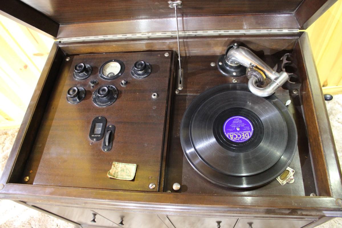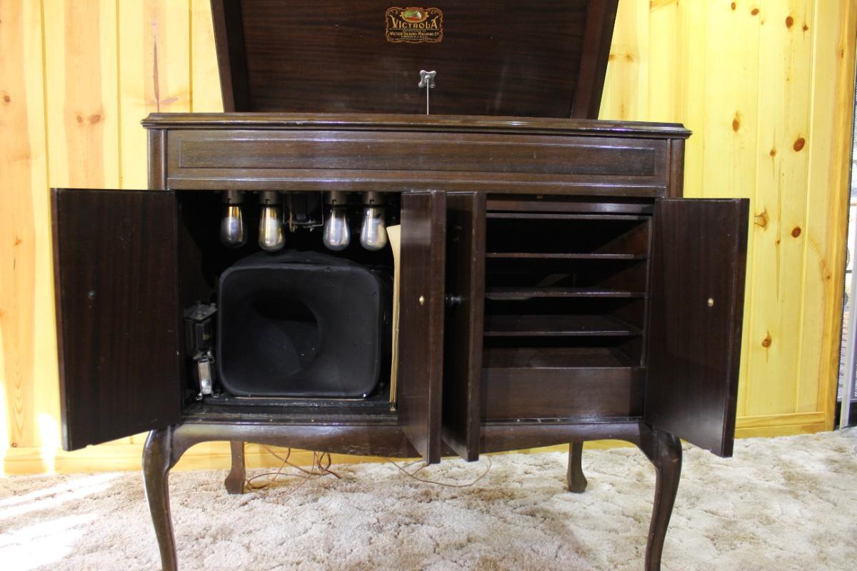Antique Victor Victrola Gramophone & Tube Powered Speaker Cabinet