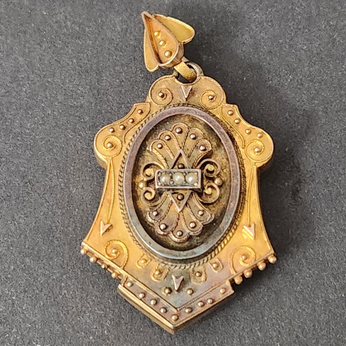 Antique Victorian 14kt Gold Mourning Pendant Locket Back Opens 10.33 Grams