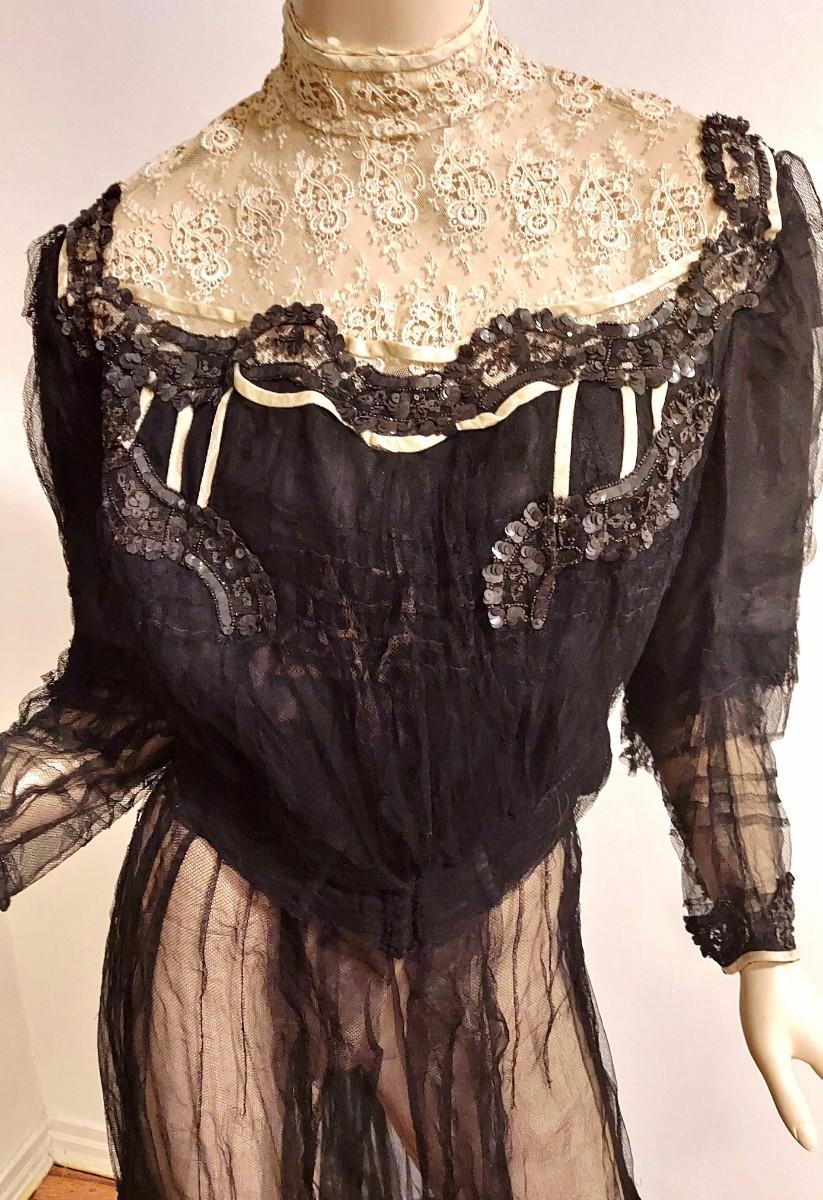 The Blouse is made of French Guipure Lace in a Cream Color , underlayer is Black Silk with Net ,Lace and gelatin Sequins in a Floral Design