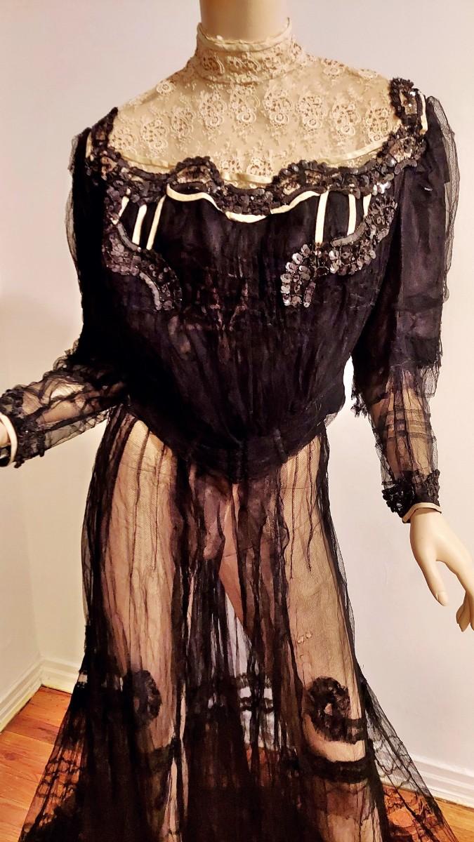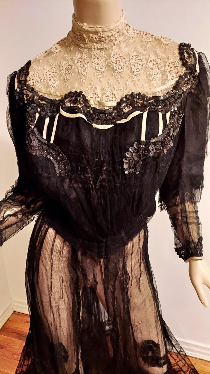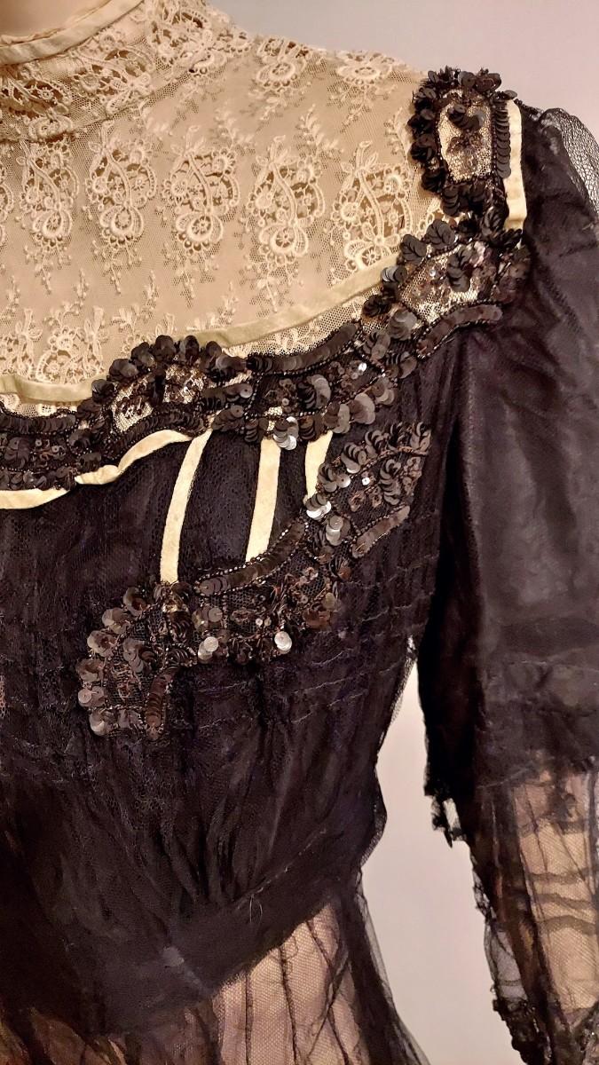 The Blouse is made of French Guipure Lace in a Cream Color , underlayer is Black Silk with Net ,Lace and gelatin Sequins in a Floral Design