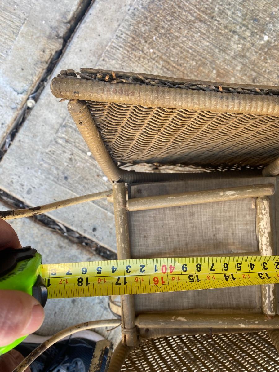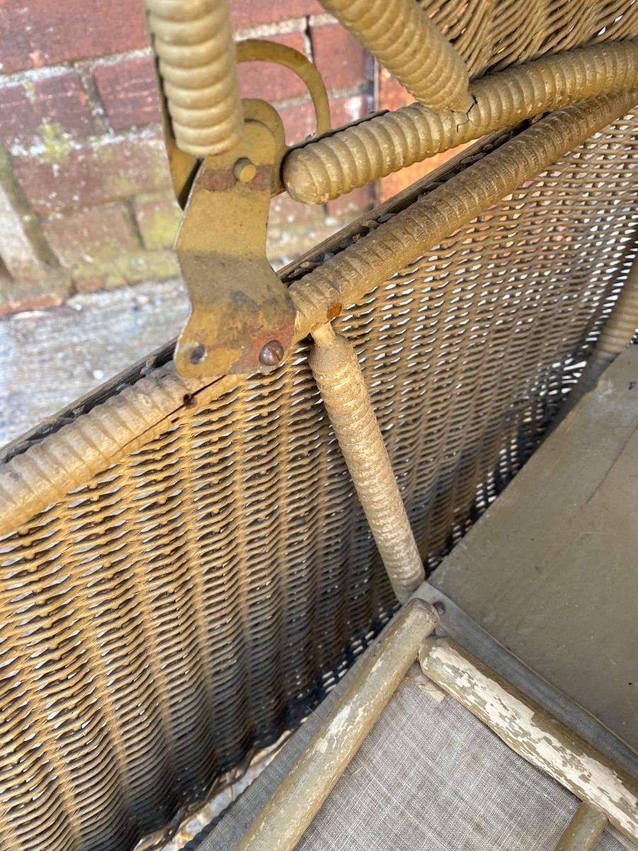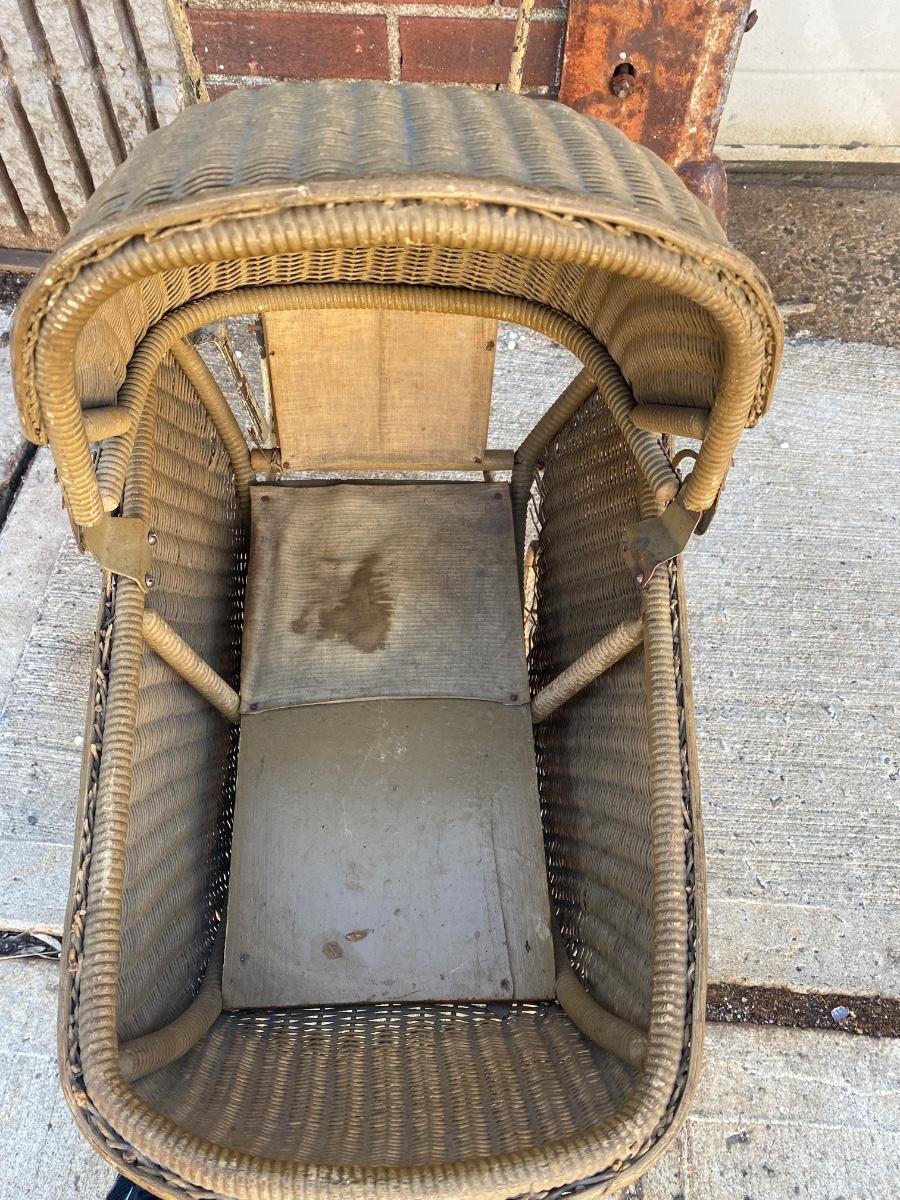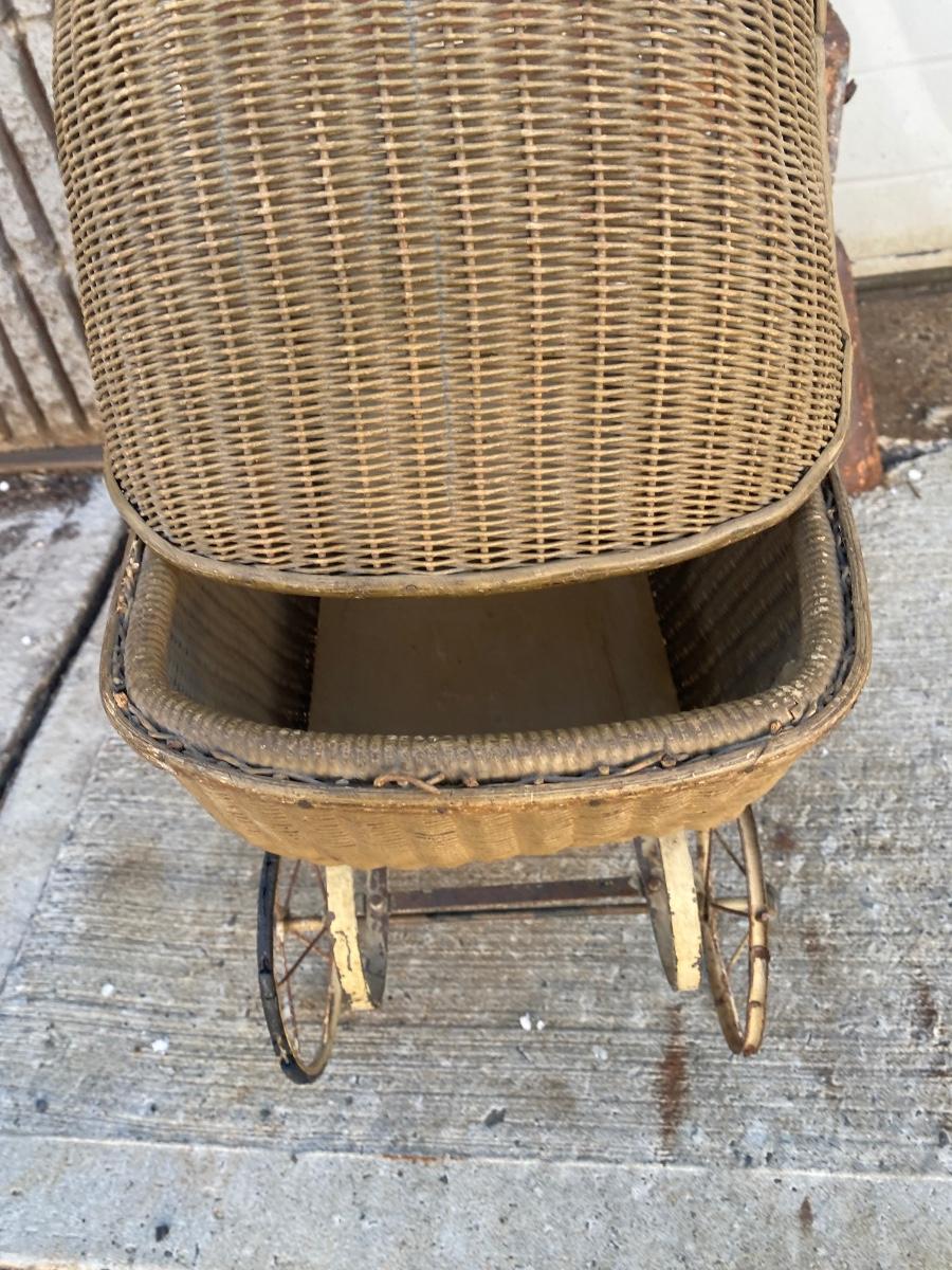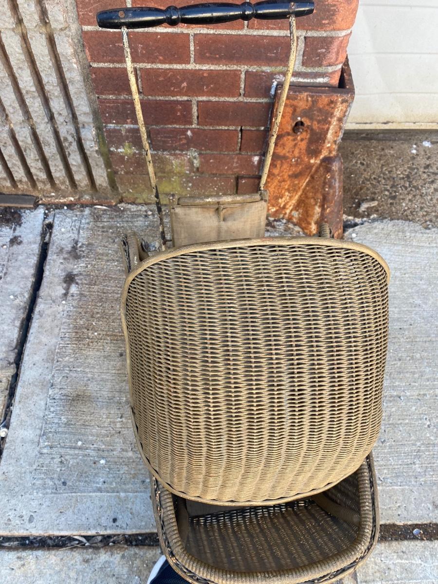This antique Victorian baby doll stroller is a beautiful piece made of wicker and rattan, with metal accents. Foot rest is adjustable and top part is movable . Solid wood handle. Great for your antique doll display.