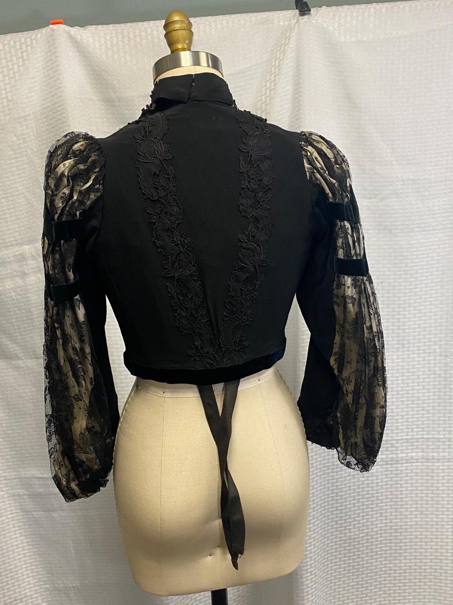 Antique Victorian Black Lace Mourning Gothic Long Sleeve Blouse Bodice Top