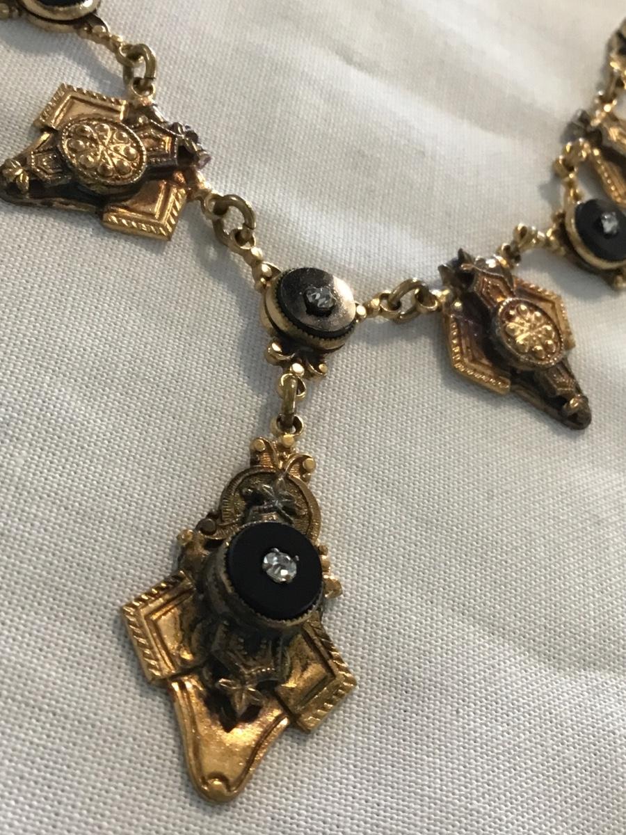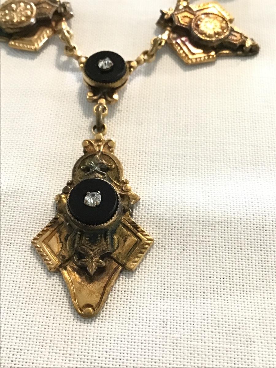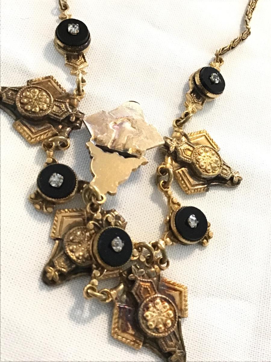 Antique Victorian Black onyx Accent Faux Diamond Art Deco
