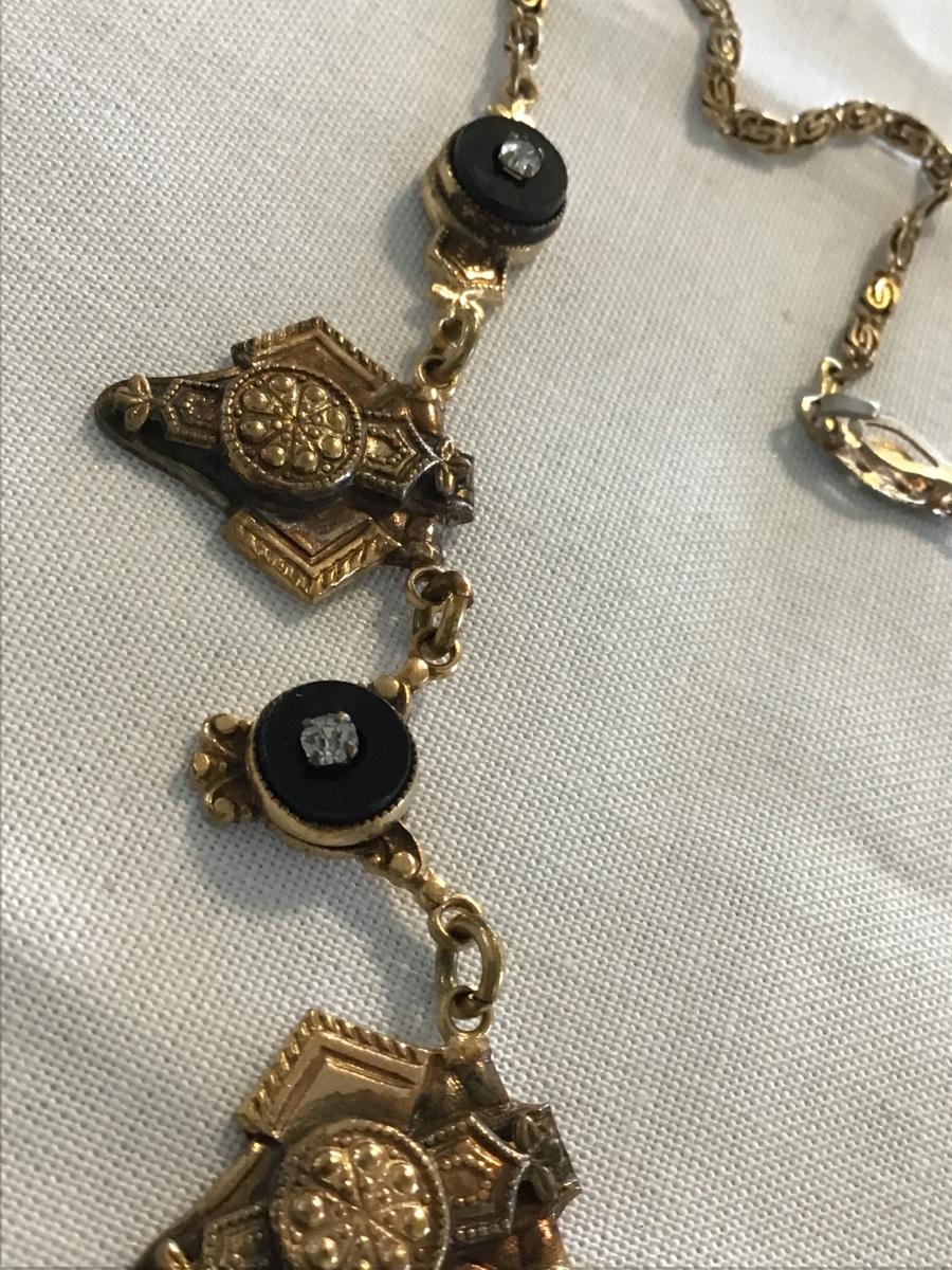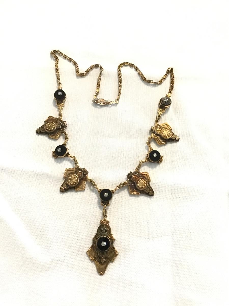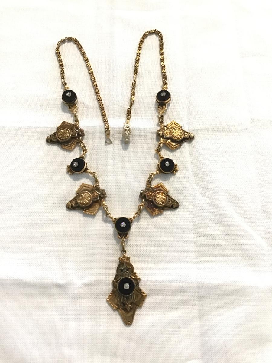 Antique Victorian Black onyx Accent Faux Diamond Art Deco