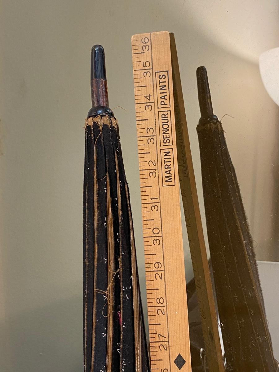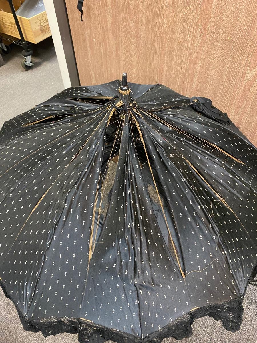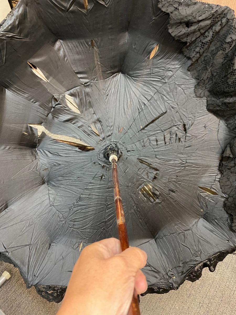 Antique Victorian Black Silk & Lace Mourning Parasol Umbrella