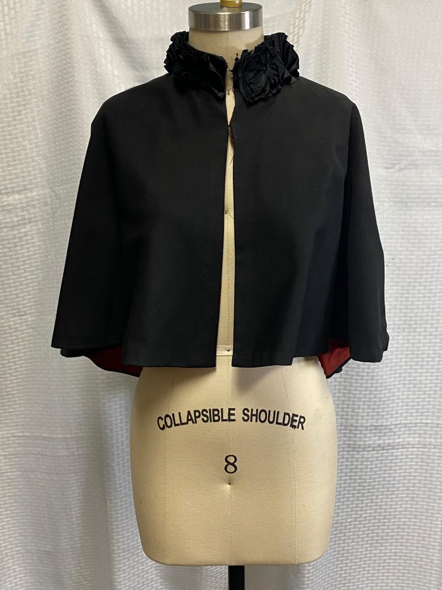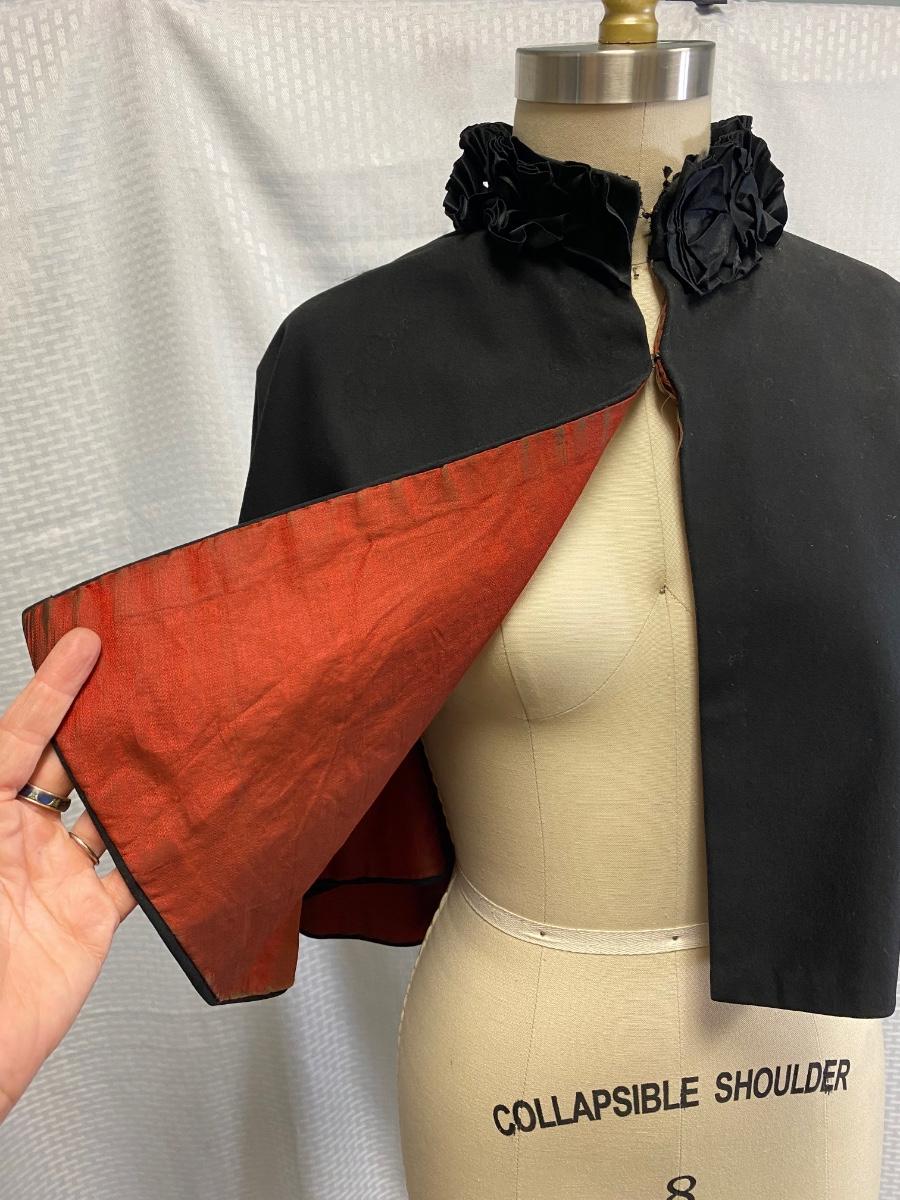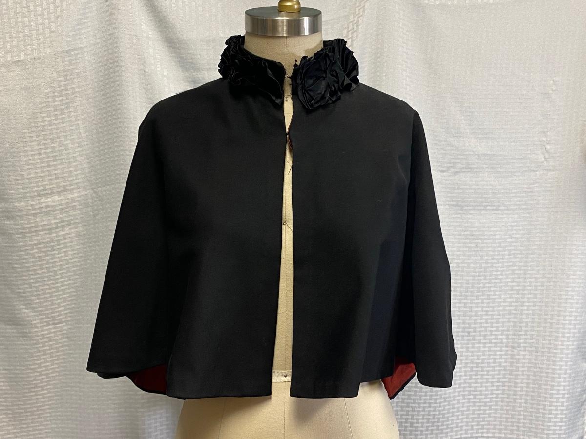 Antique Victorian Black with Red Lining Gothic Short Cape