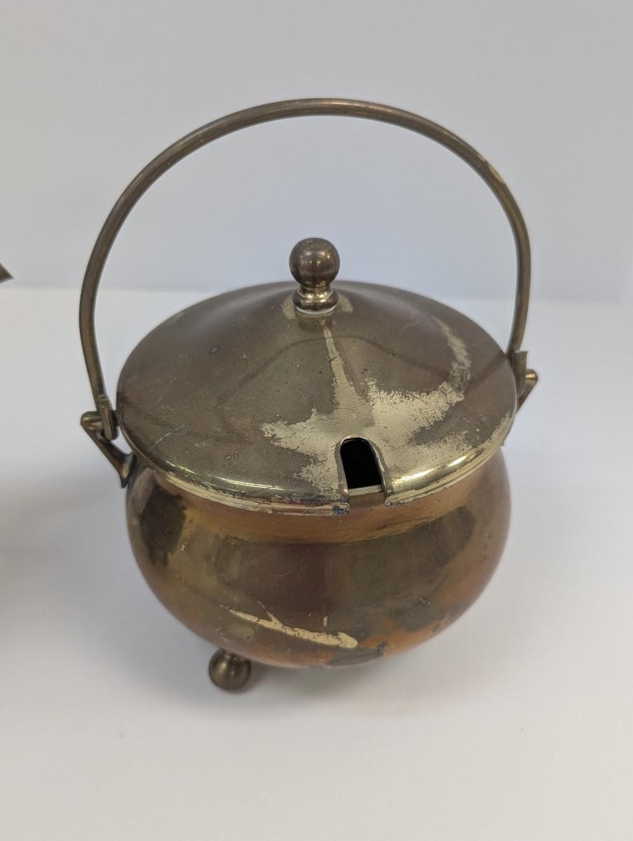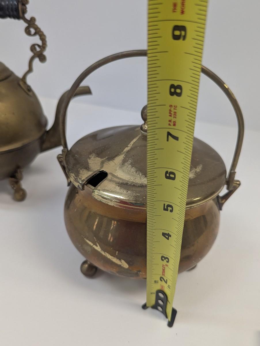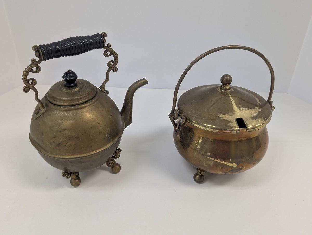 Antique Victorian Brass Tea Kettle & Vintage Brass Smudge Pot Cauldron
