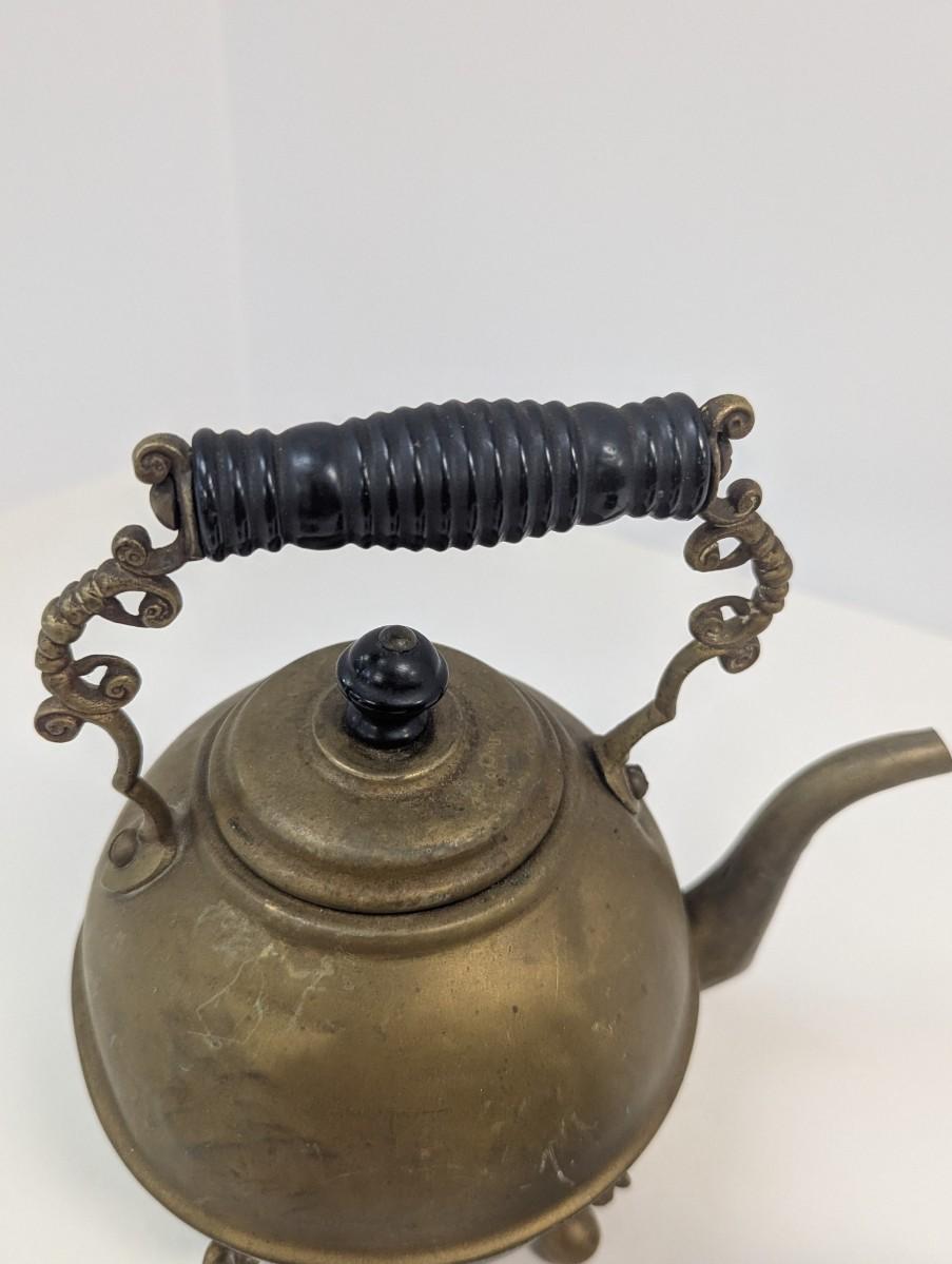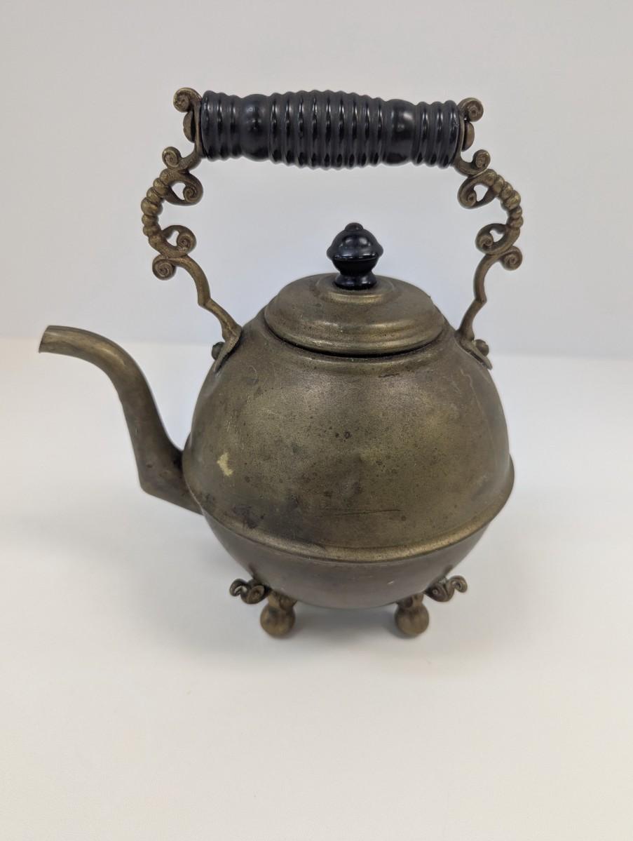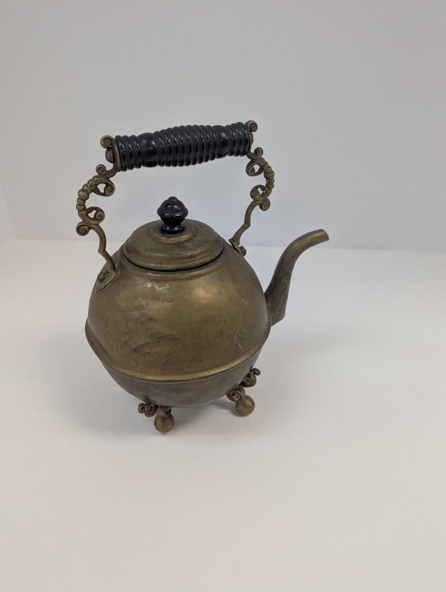 Antique Victorian Brass Tea Kettle & Vintage Brass Smudge Pot Cauldron