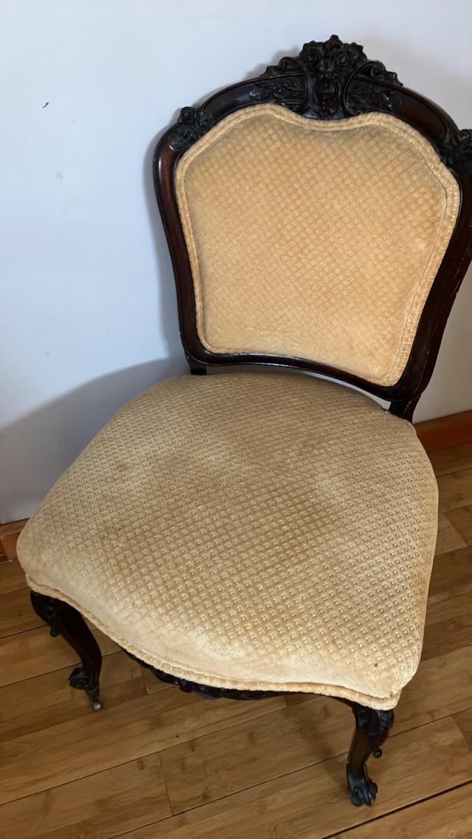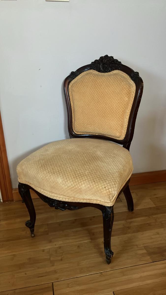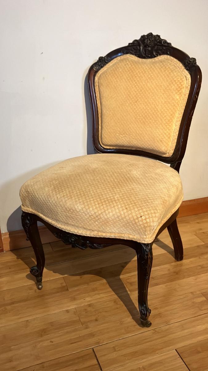 Antique Victorian Carved Rosewood Parlor/Slipper Chair – Original Casters