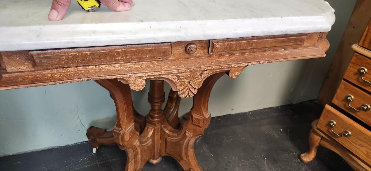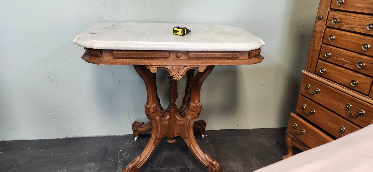 Antique Victorian Carved Walnut Marble Top Parlor Center Accent Side Table