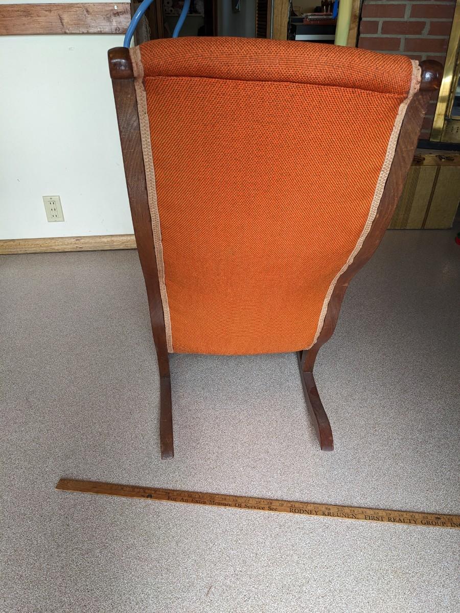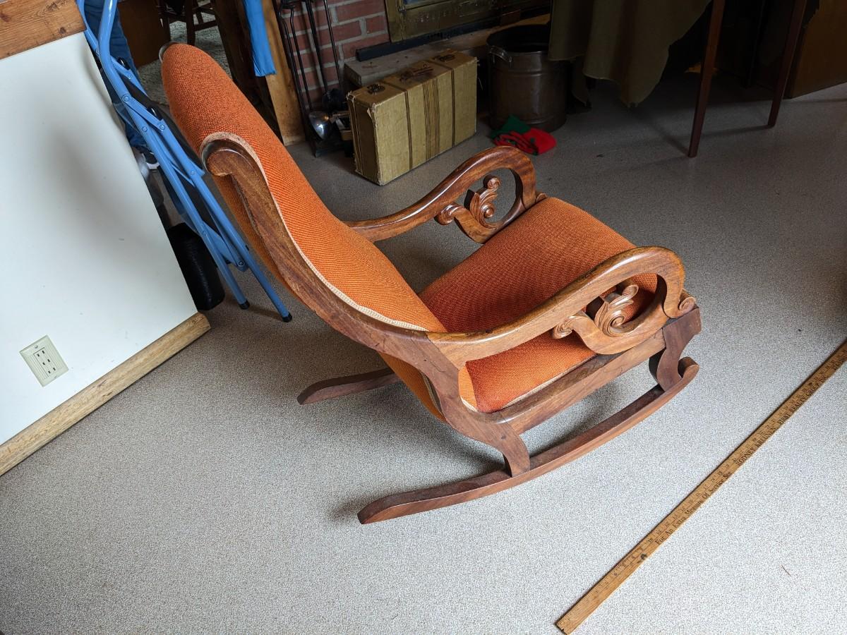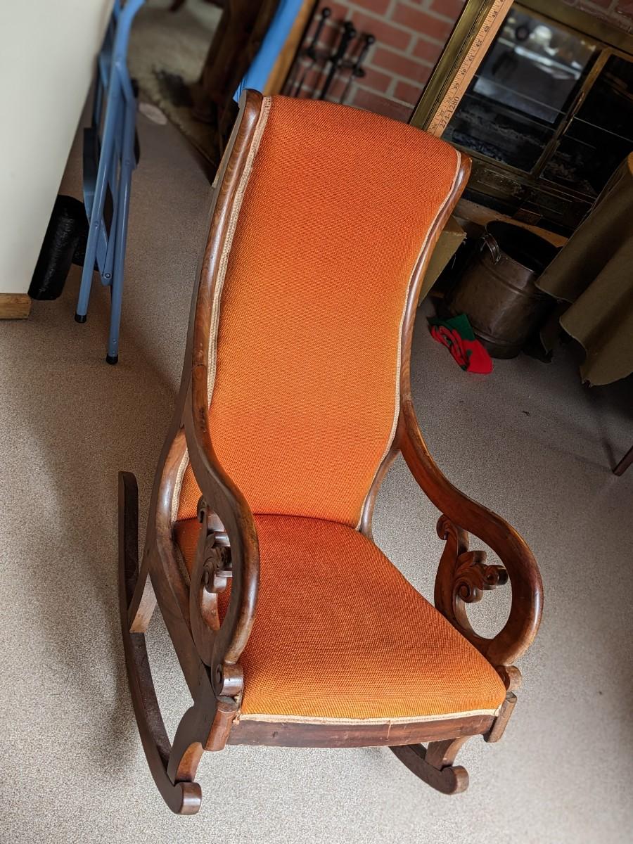 Antique Victorian Carved Walnut, Well Upholstered Rocking Chair