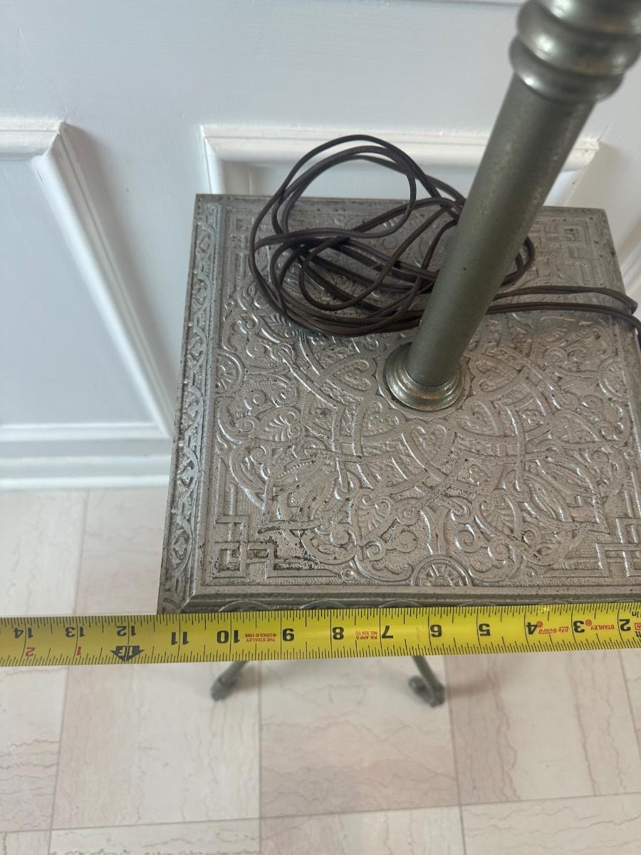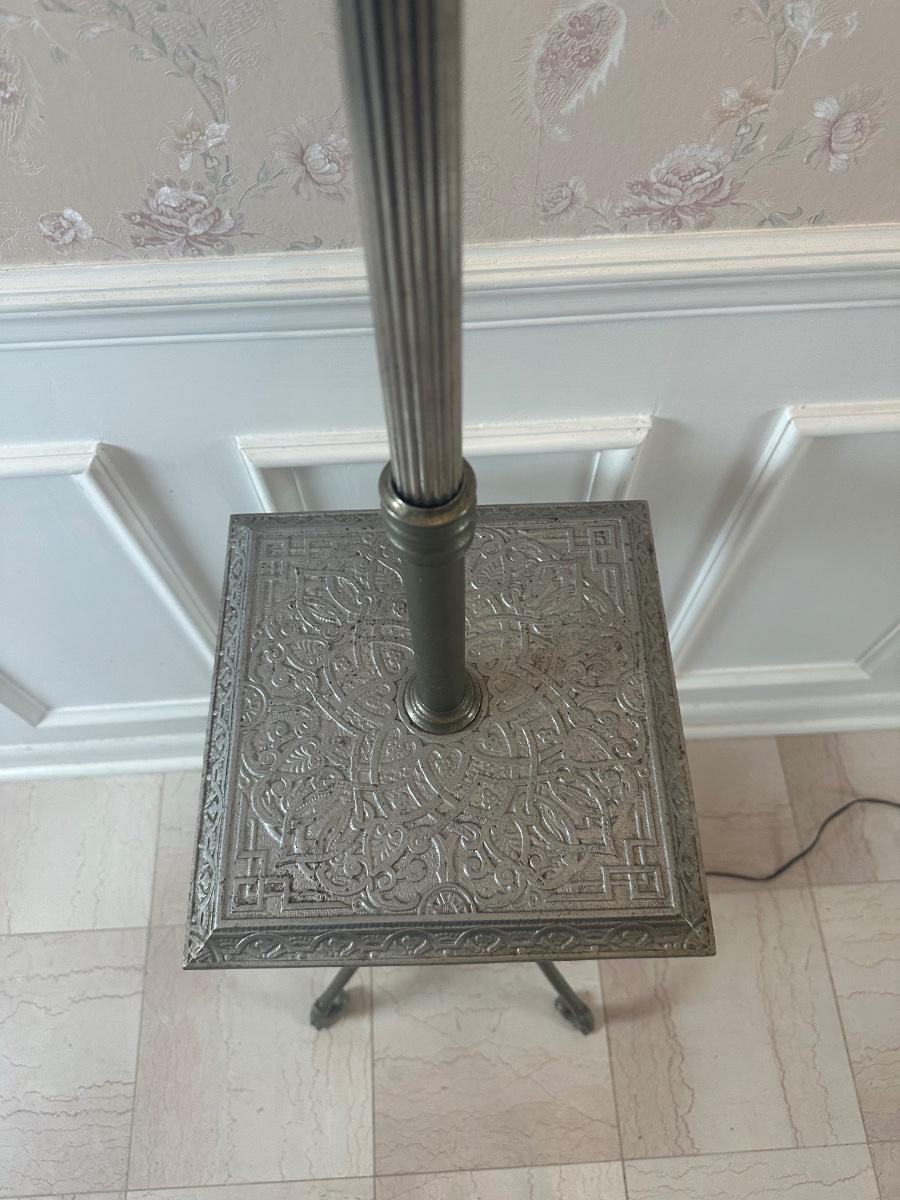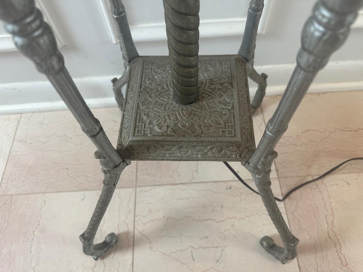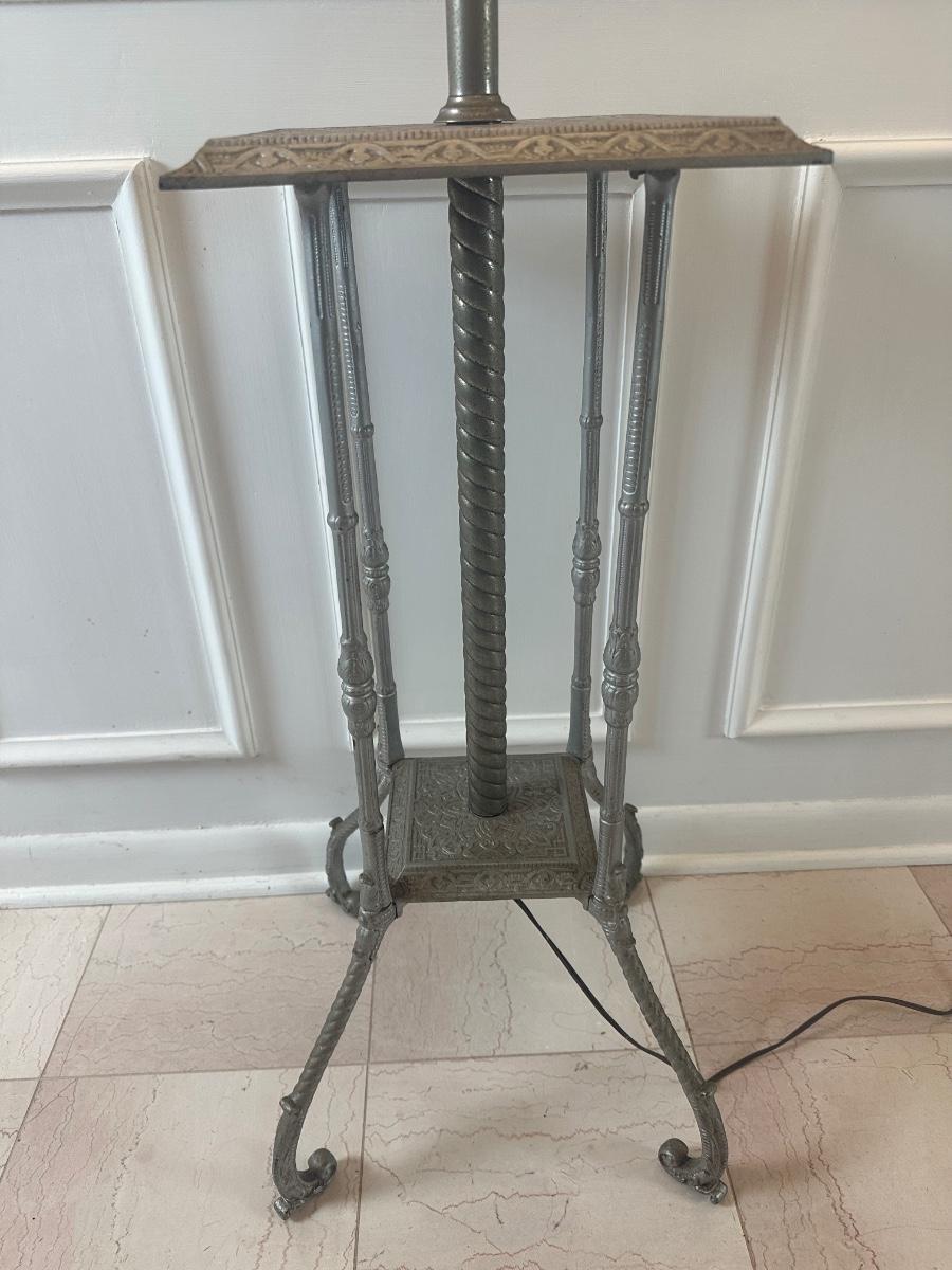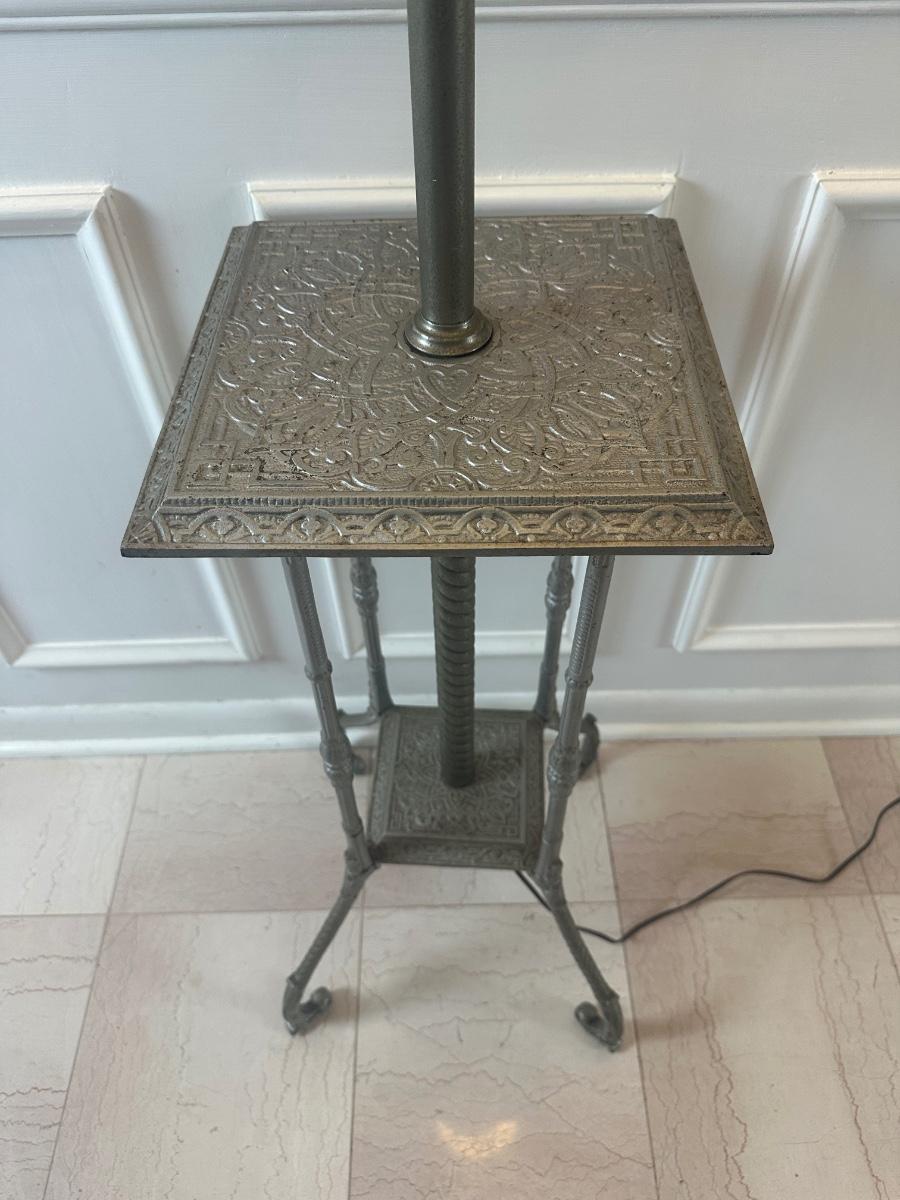 Vintage Victorian Cast Metal Floor Lamp with Side Table