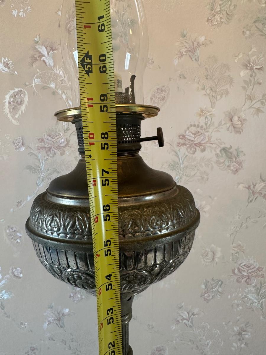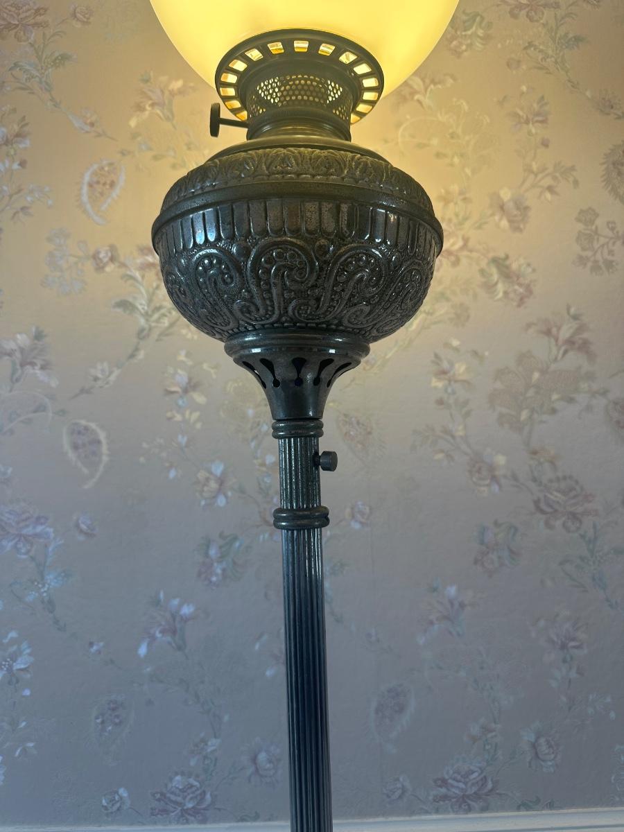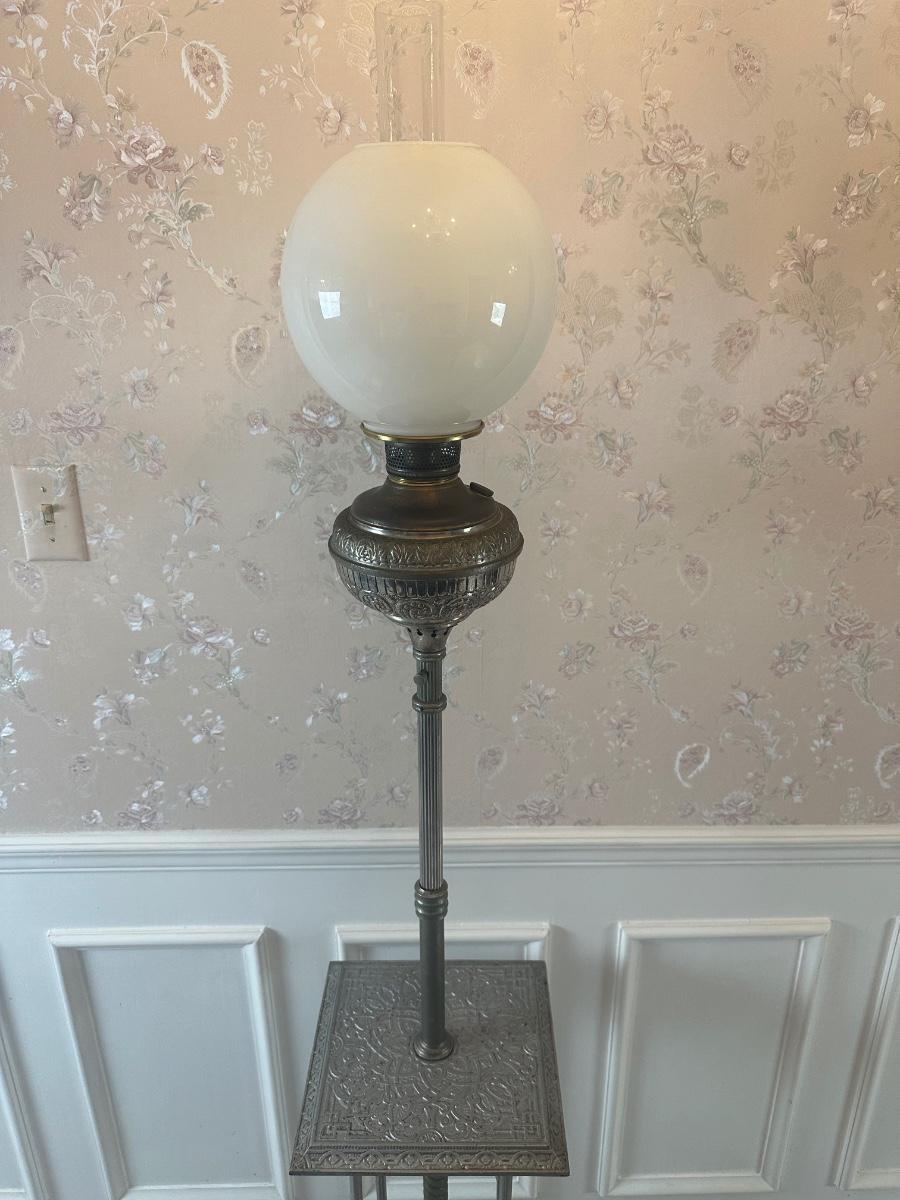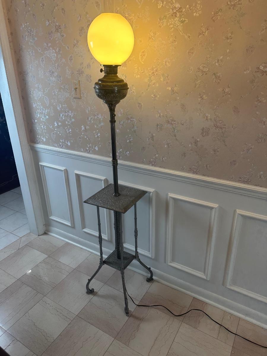 Vintage Victorian Cast Metal Floor Lamp with Side Table