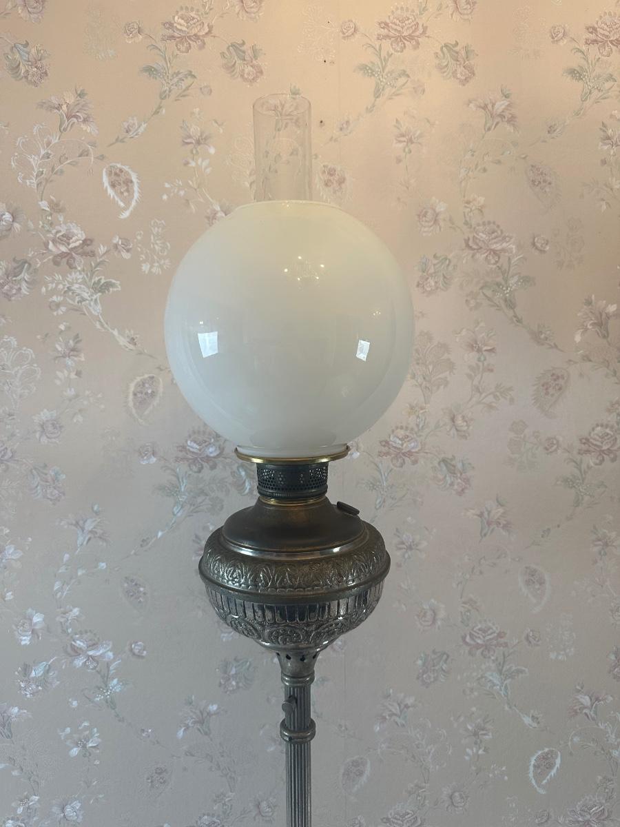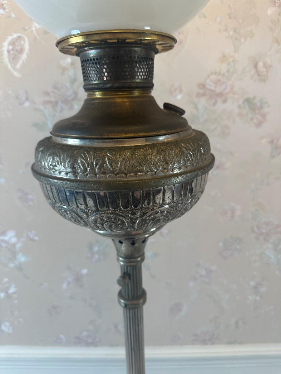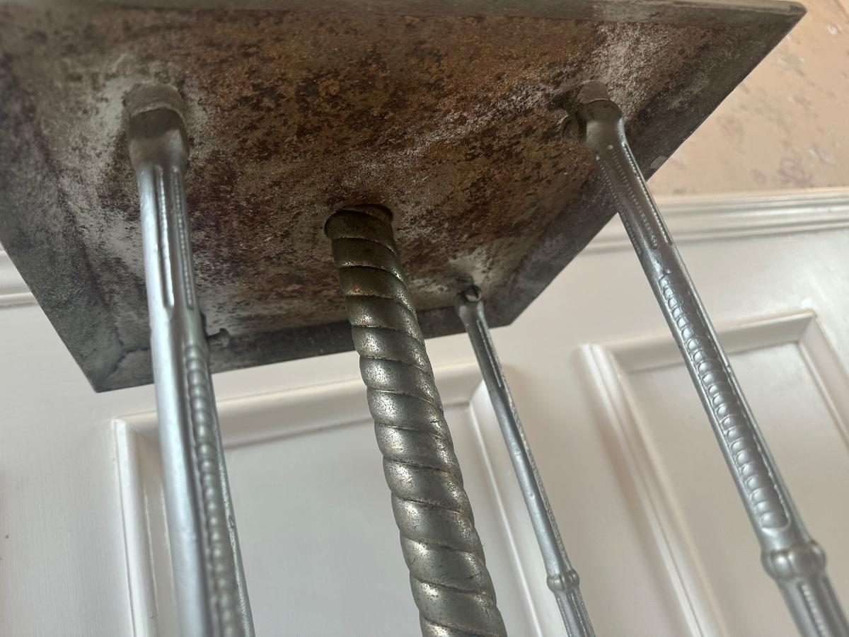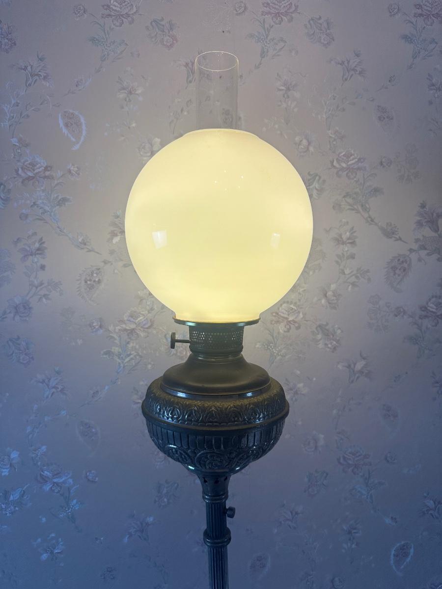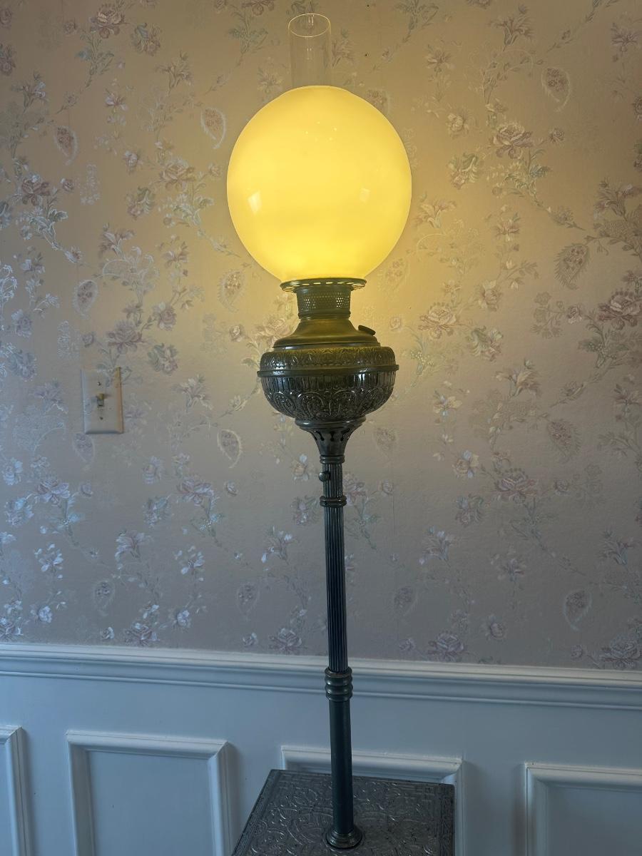 Vintage Victorian Cast Metal Floor Lamp with Side Table