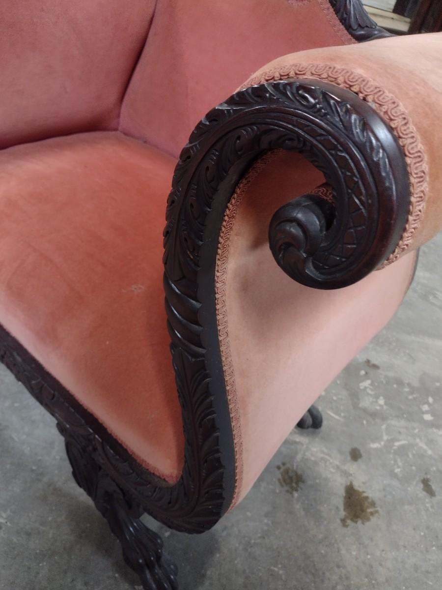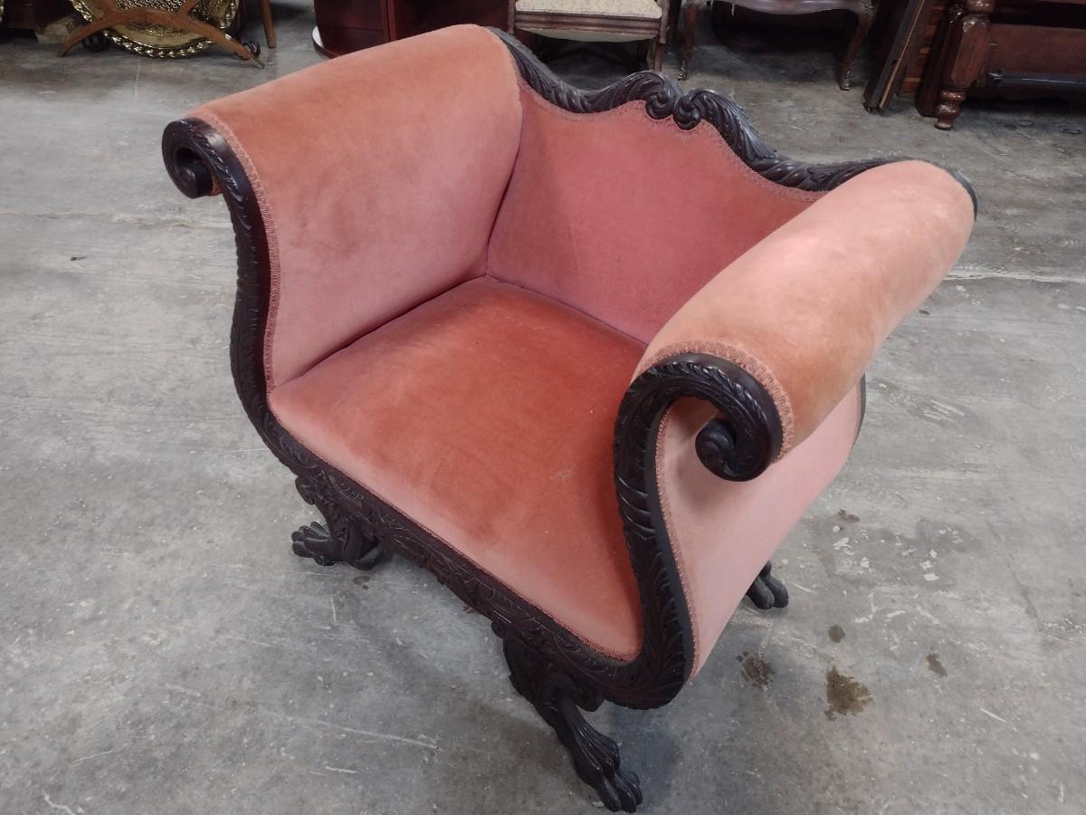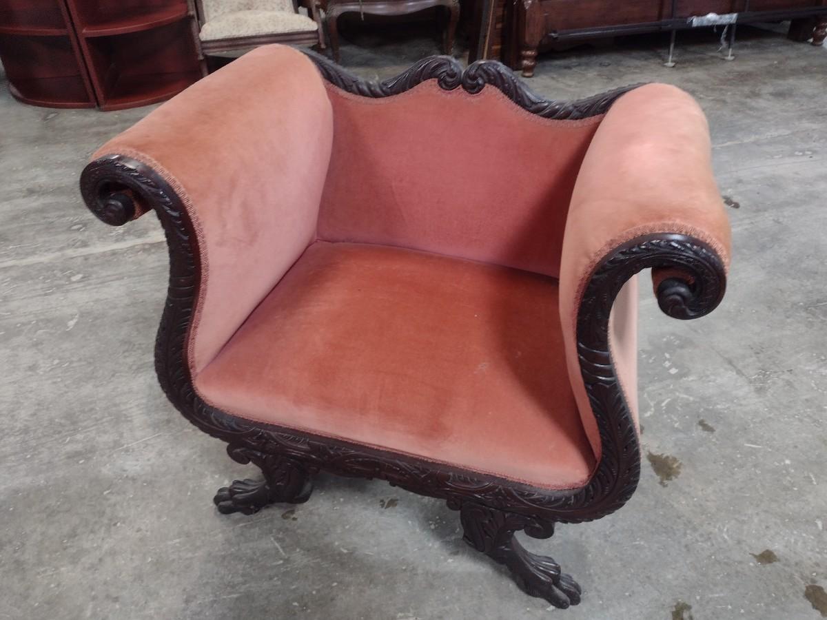 Antique Victorian Clawfoot Scroll Arm Upholstered Chair Charleston, SC Origin
