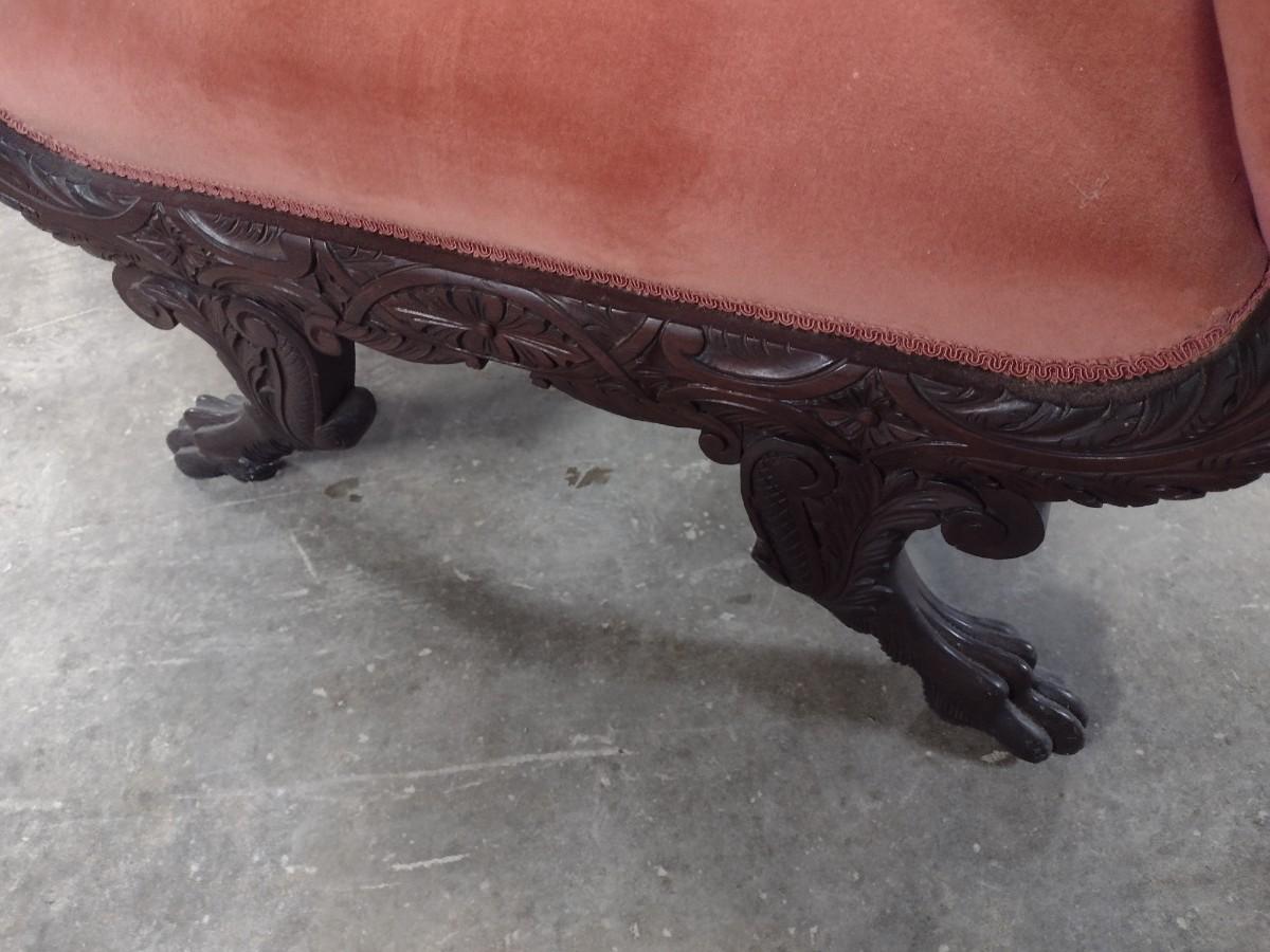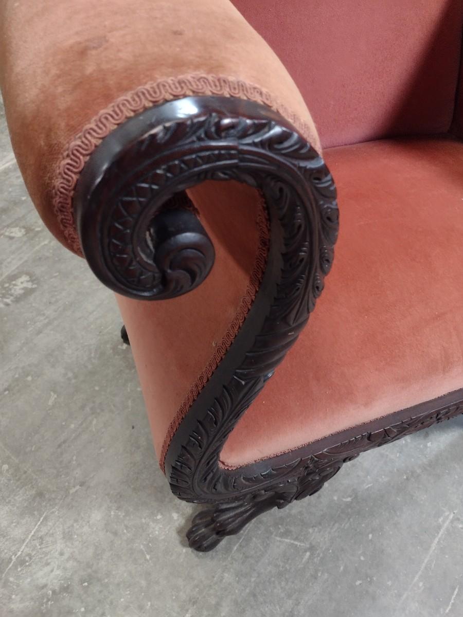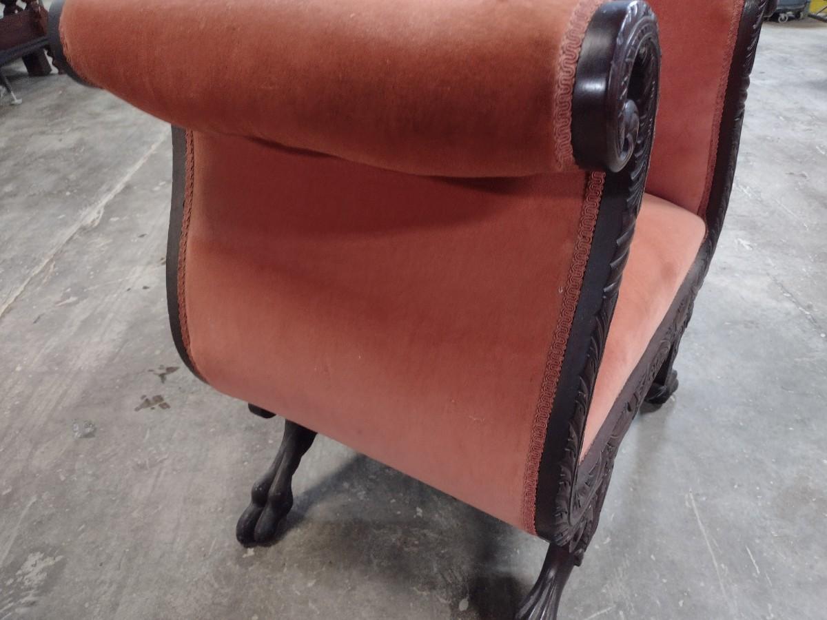 Antique Victorian Clawfoot Scroll Arm Upholstered Chair Charleston, SC Origin