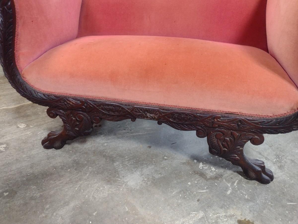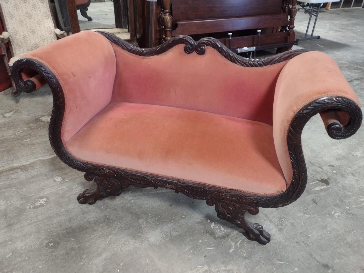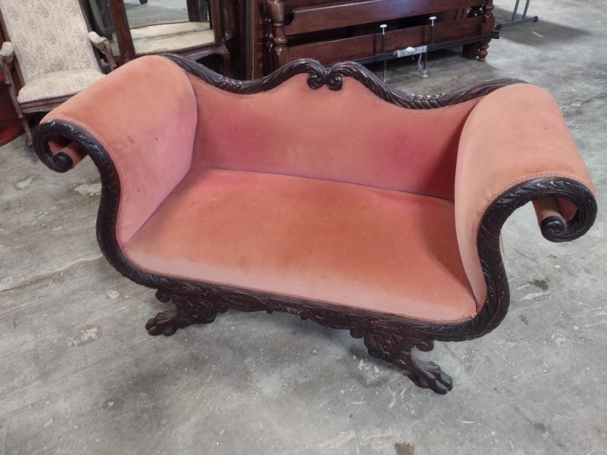 Antique Victorian Clawfoot Scroll Arm Upholstered Satee Charleston, SC Origin