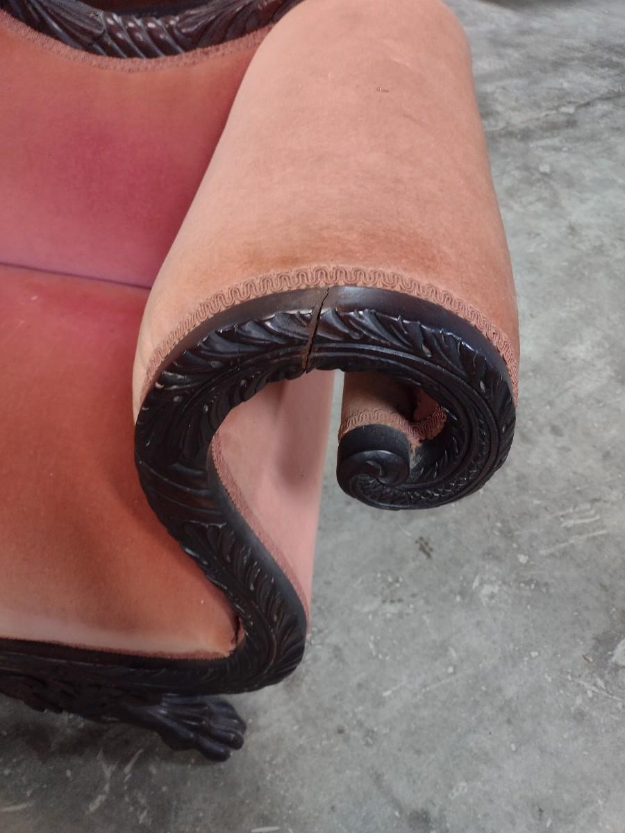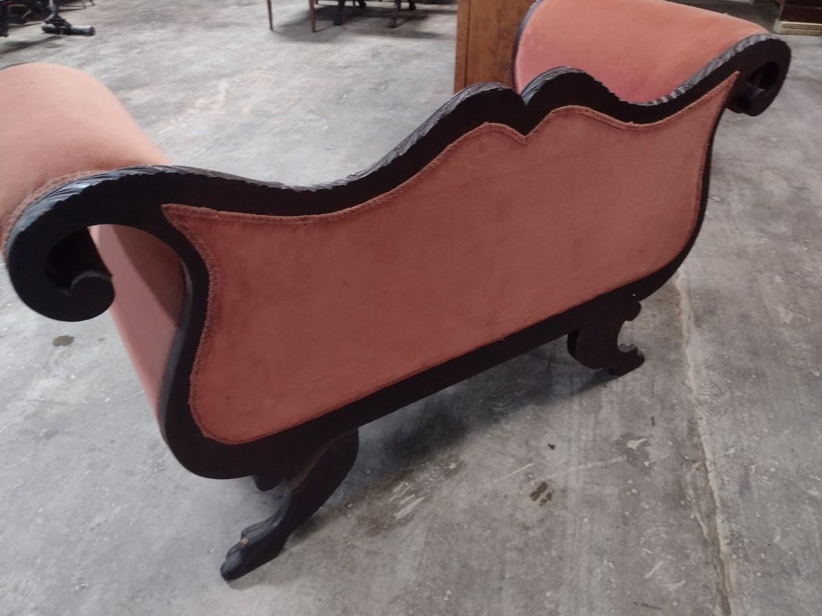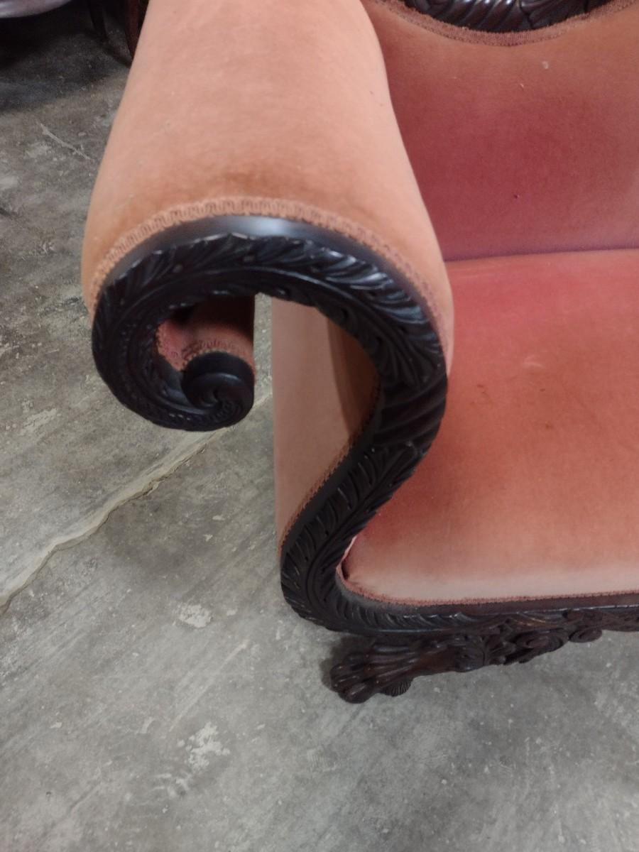 Antique Victorian Clawfoot Scroll Arm Upholstered Satee Charleston, SC Origin