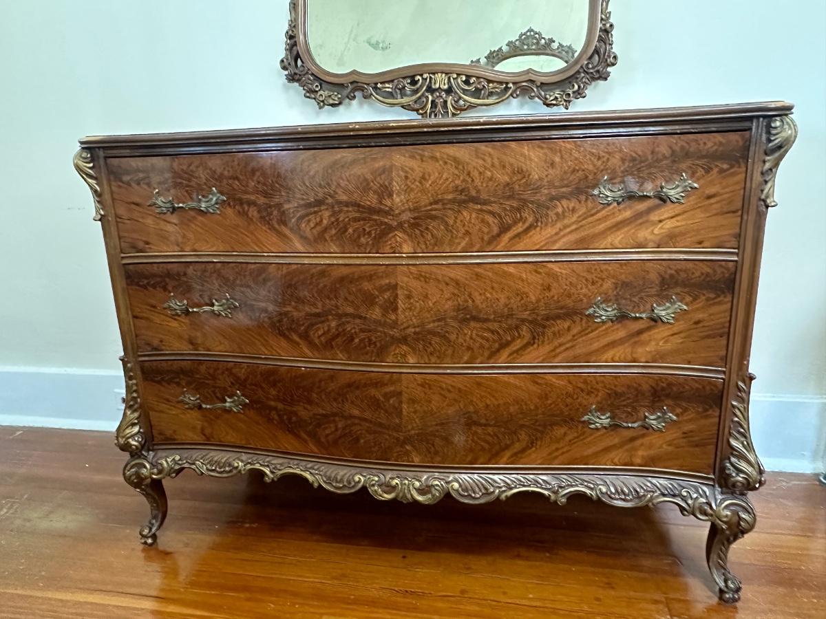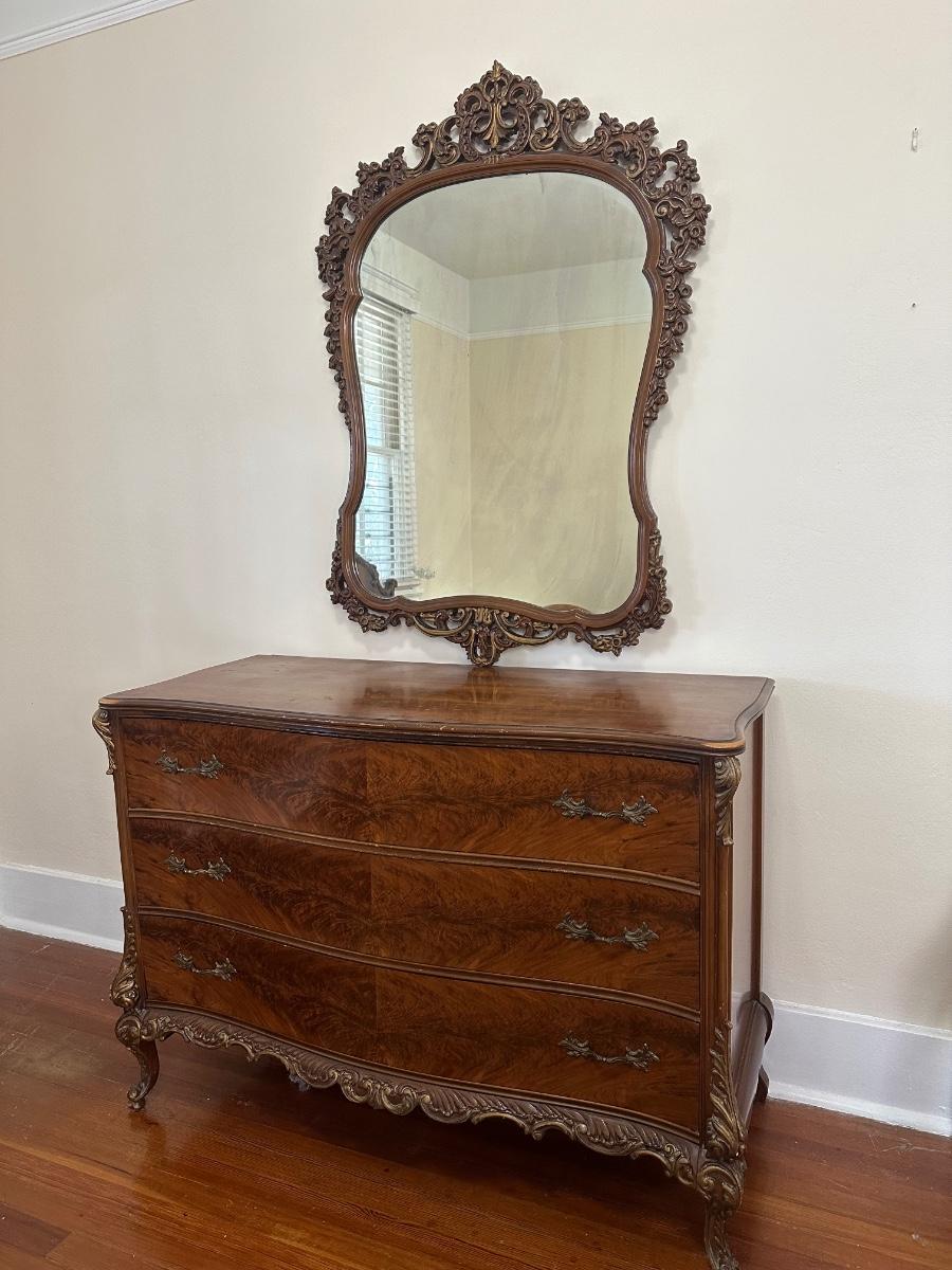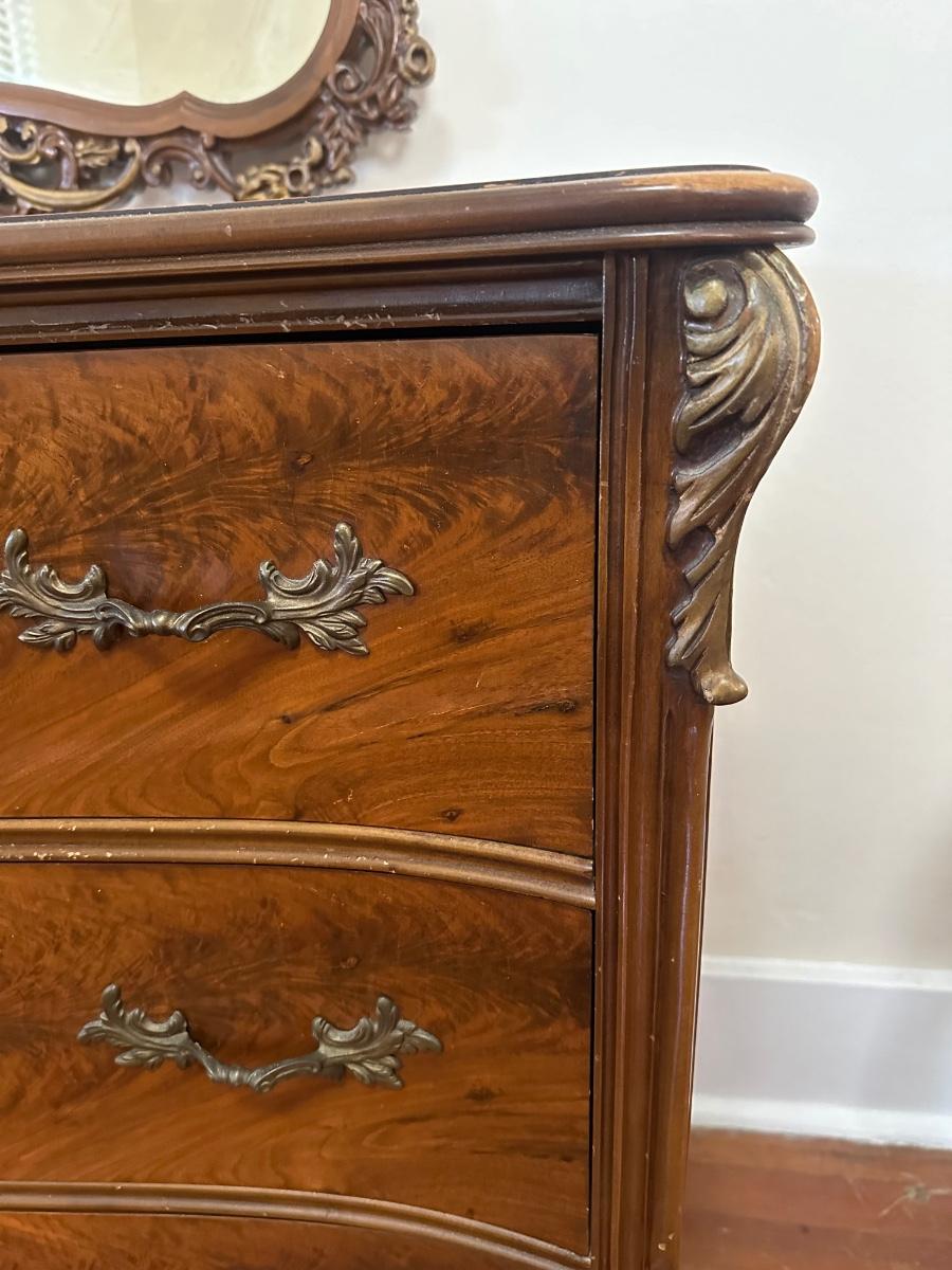 Matching tall dresser in the auction! See aging in detailed pictures. Mirror detaches.