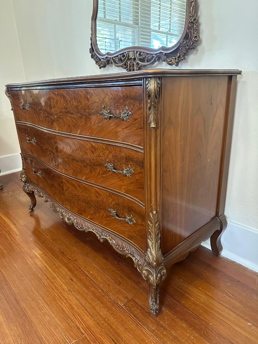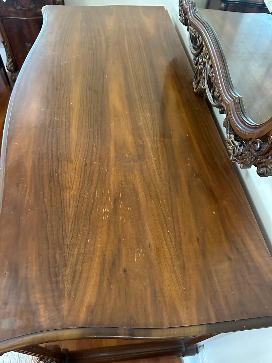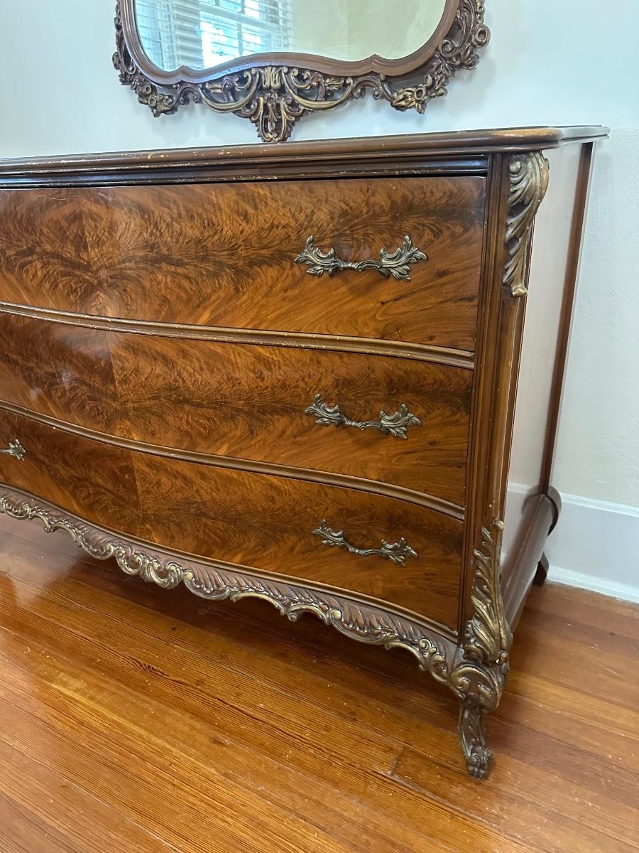 Matching tall dresser in the auction! See aging in detailed pictures. Mirror detaches.