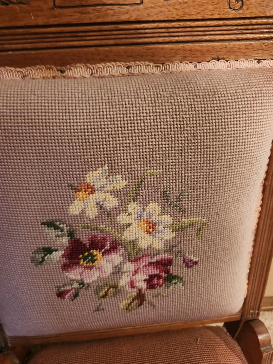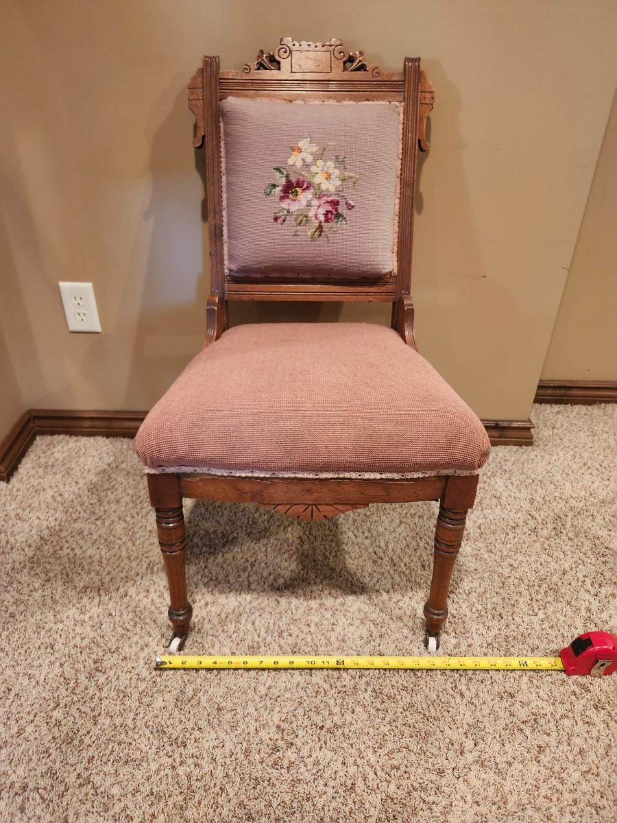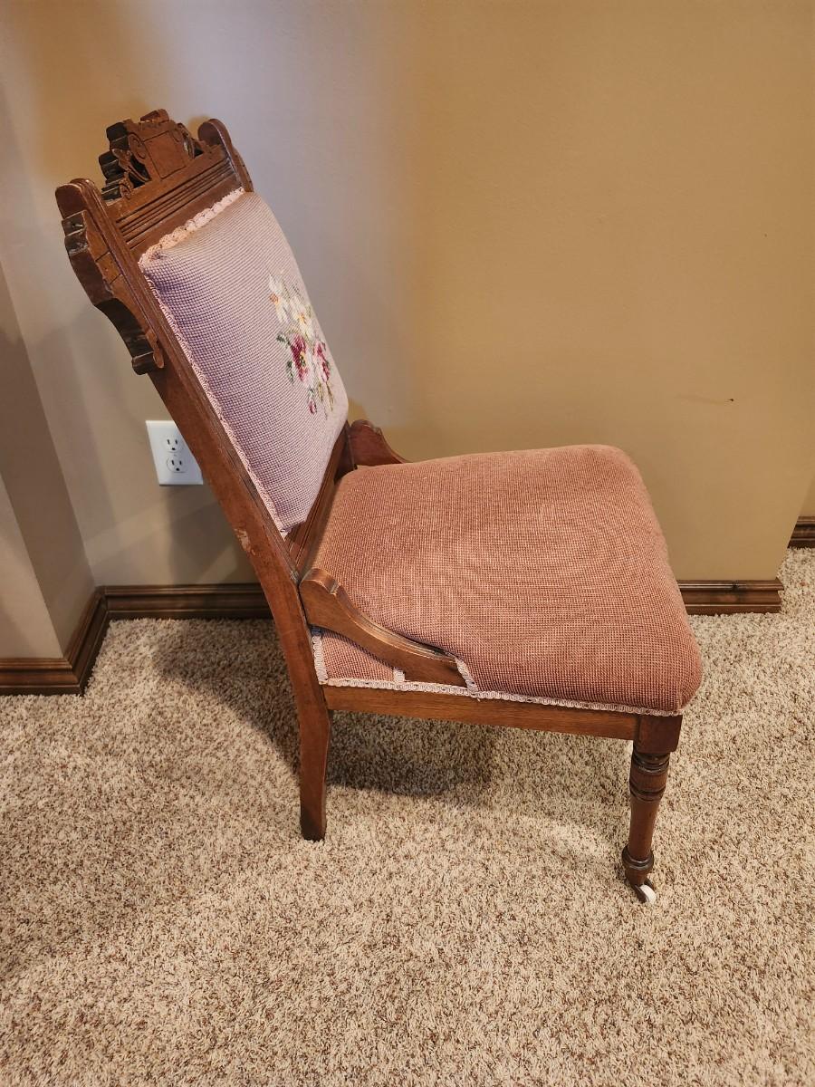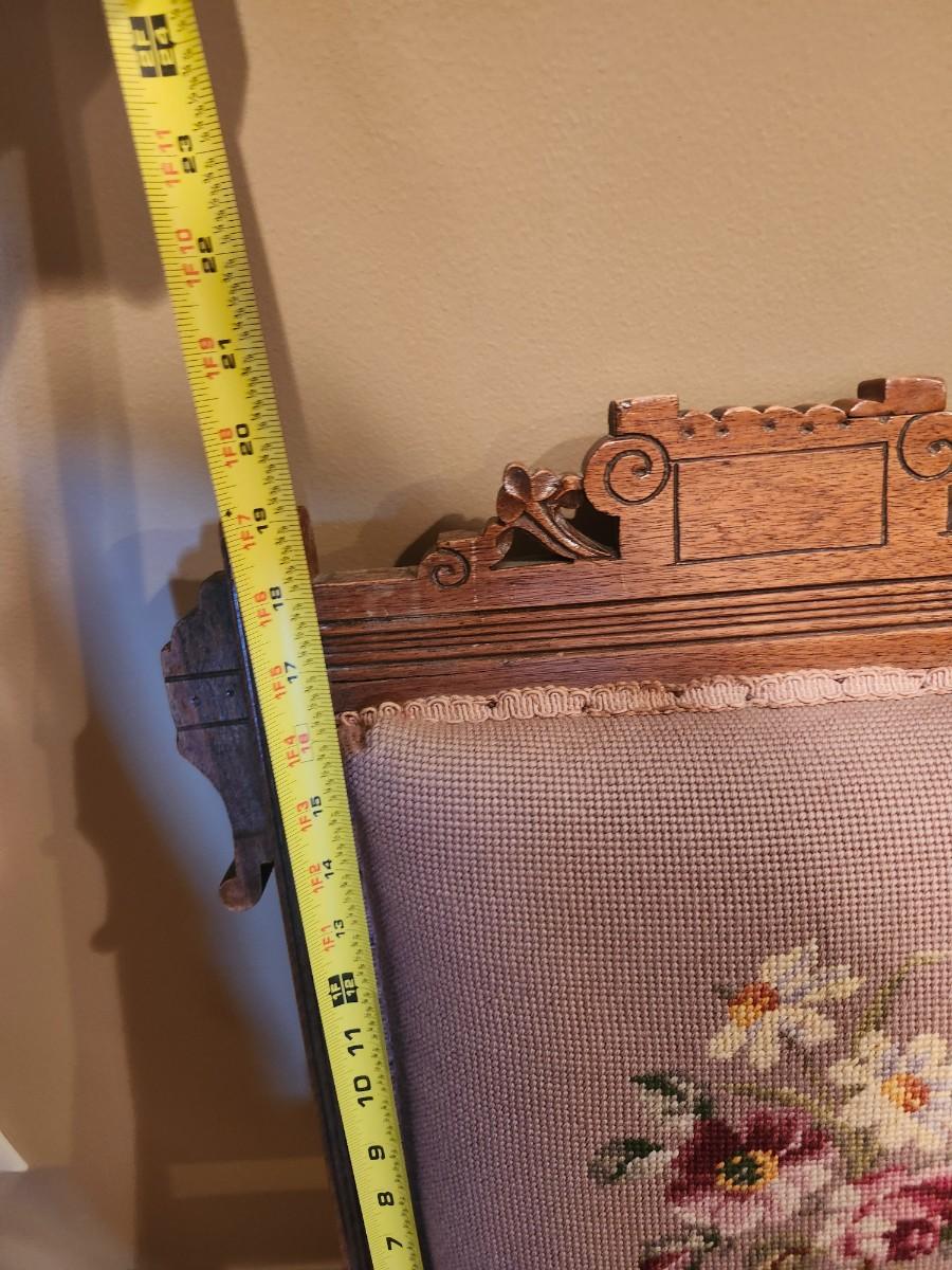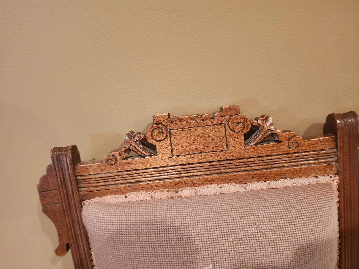 Antique Victorian EASTLAKE Walnut & Needlepoint Carved Fire Place Side Chair