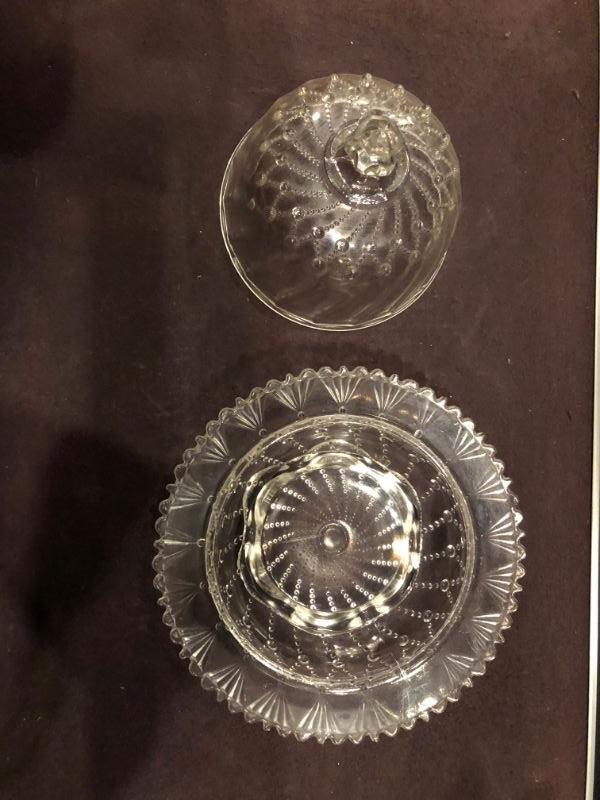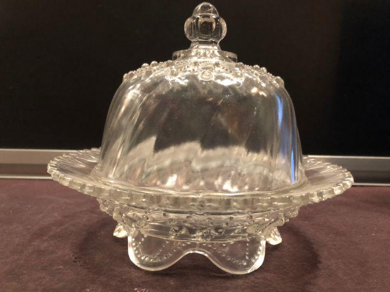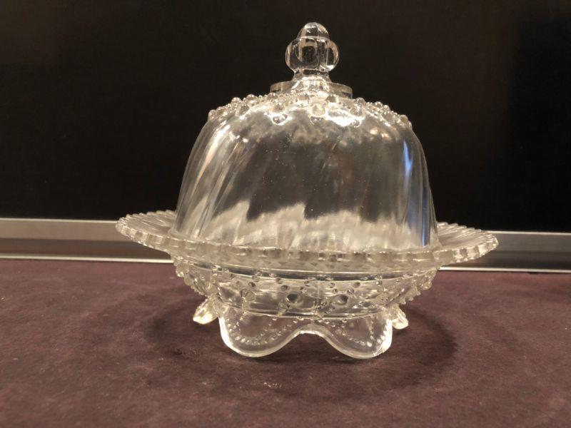 ANTIQUE VICTORIAN ERA CLEAR GLASS FOOTED BUTTER DISH