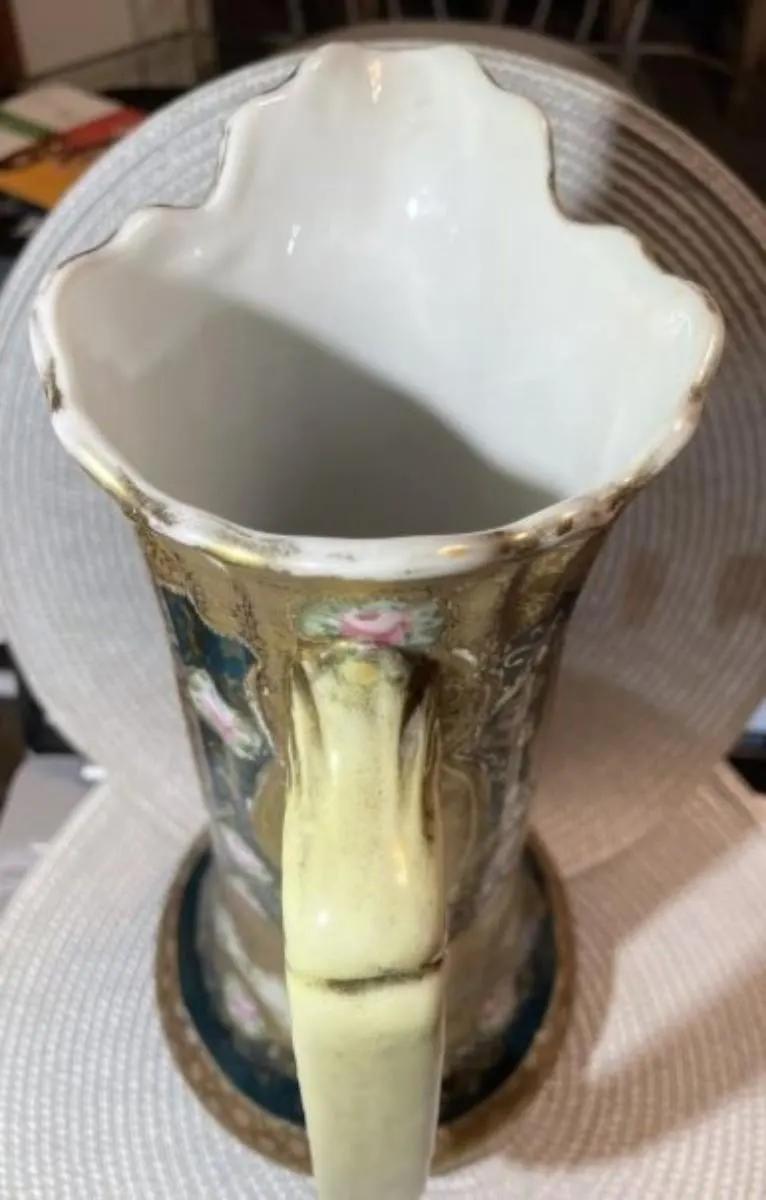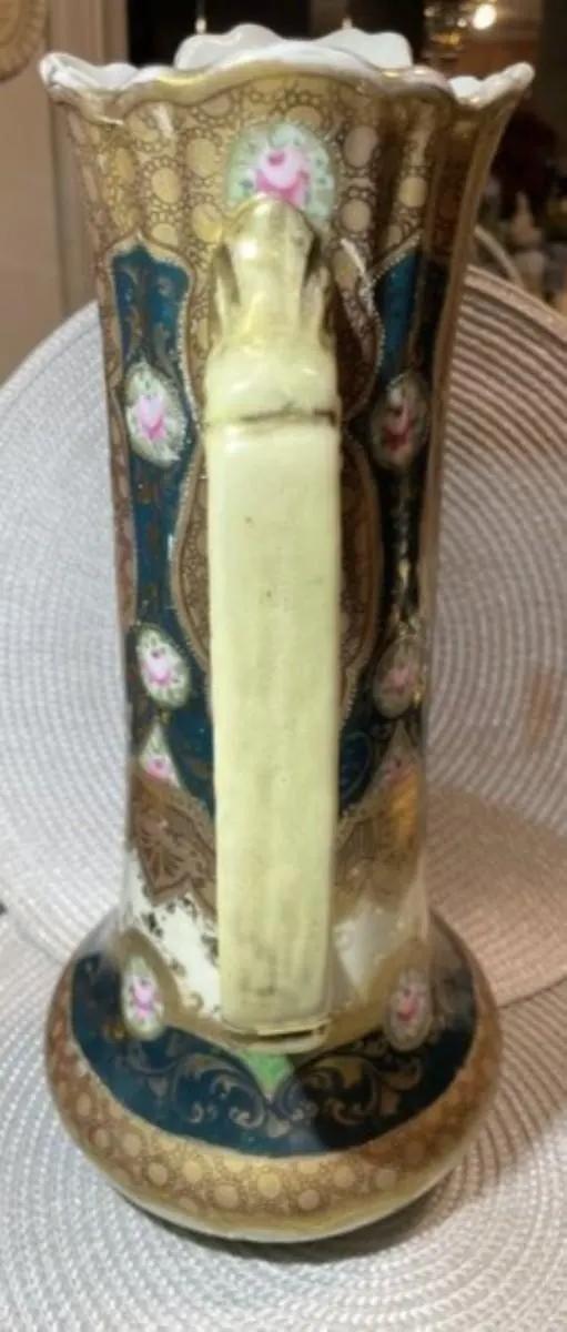 Antique Victorian Era Decorated Tankard/Pitcher Unmarked Base 13.5" Tall in Good Preowned Condition.