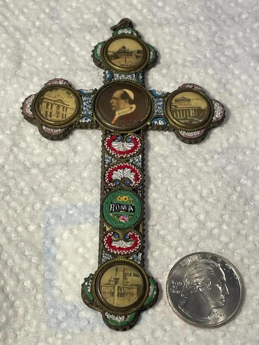 Antique Victorian Era Micro-Mosaic CROSS/CRUCIFIX Made in Italy in Good Preowned Condition.