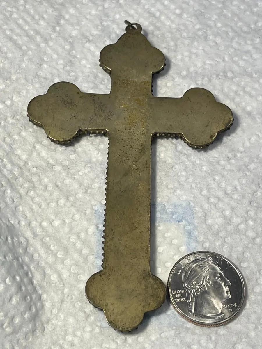 Antique Victorian Era Micro-Mosaic CROSS/CRUCIFIX Made in Italy in Good Preowned Condition. $5 DOMESTIC SHIPPING.