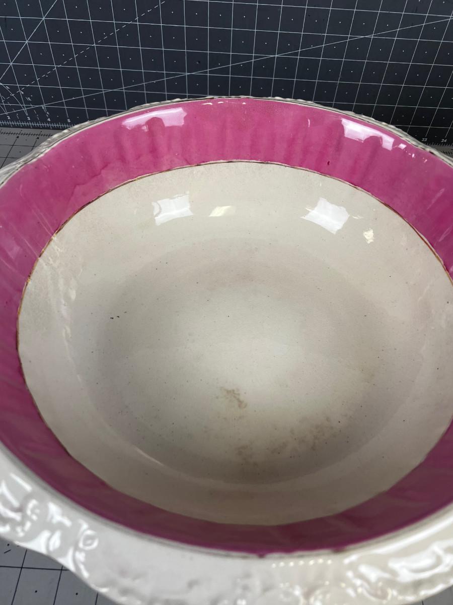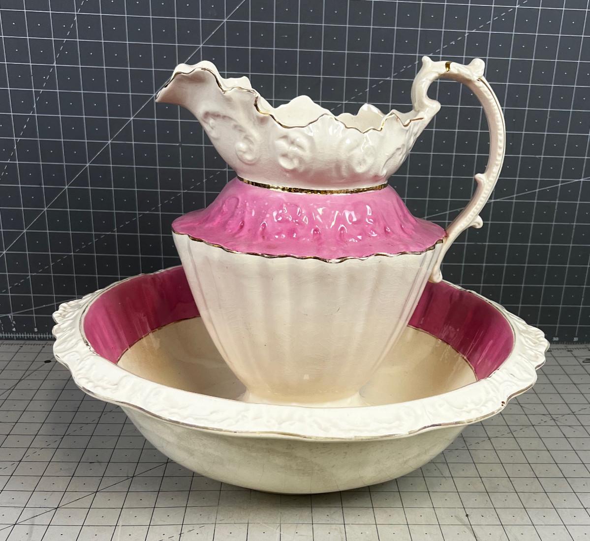 ANTIQUE Victorian Era Wash Basin and Pitcher Pink & White.