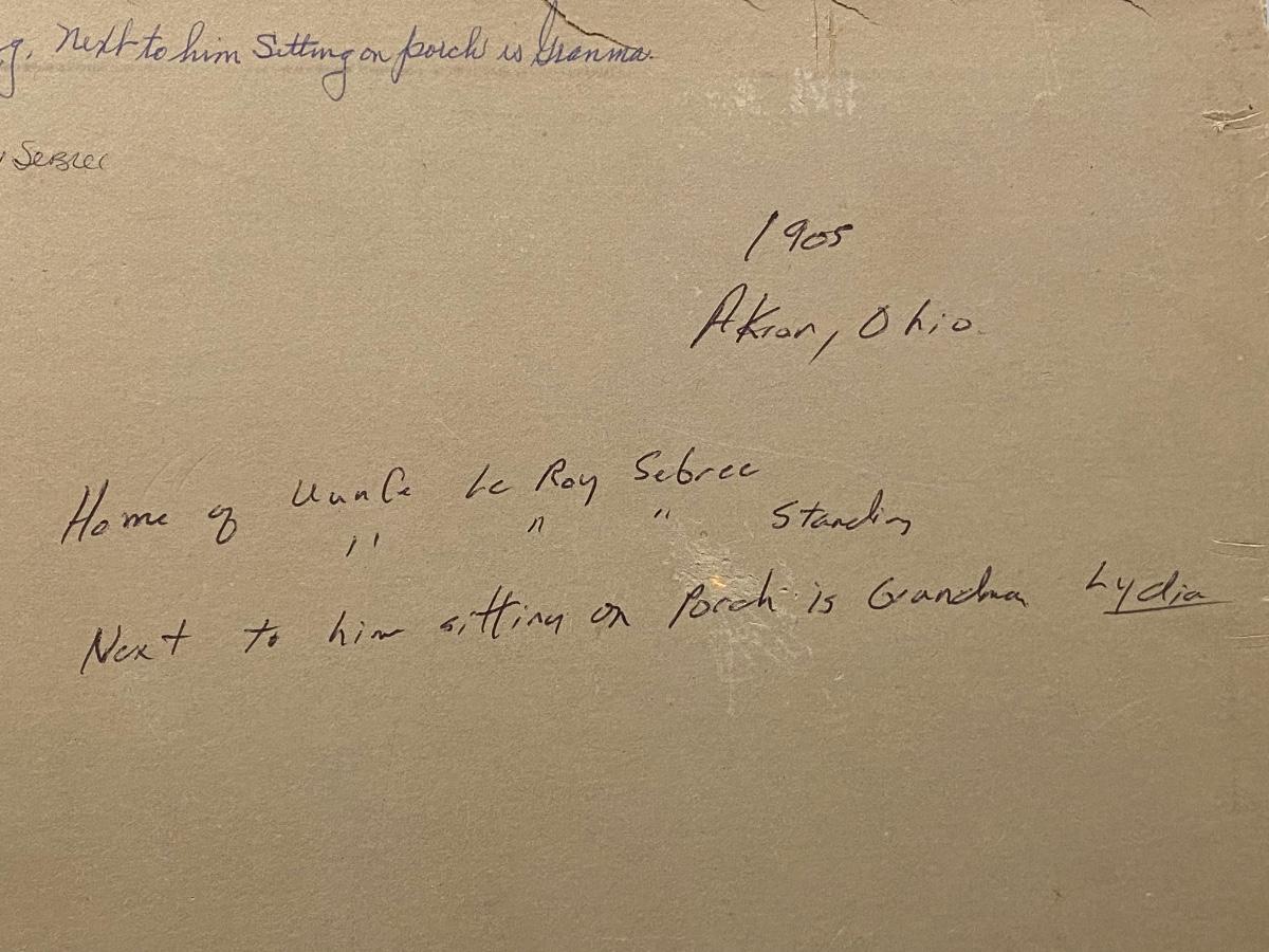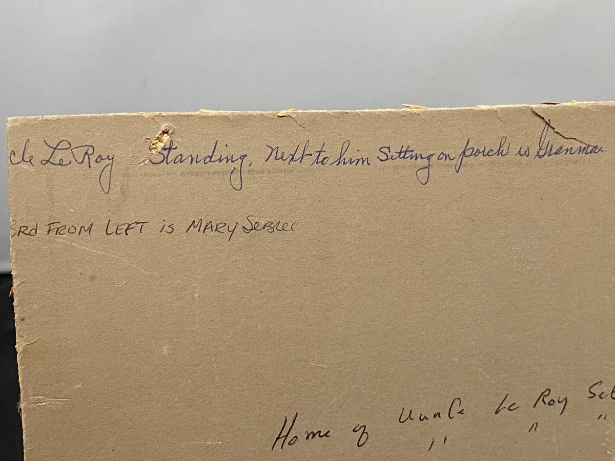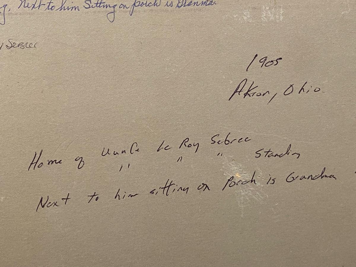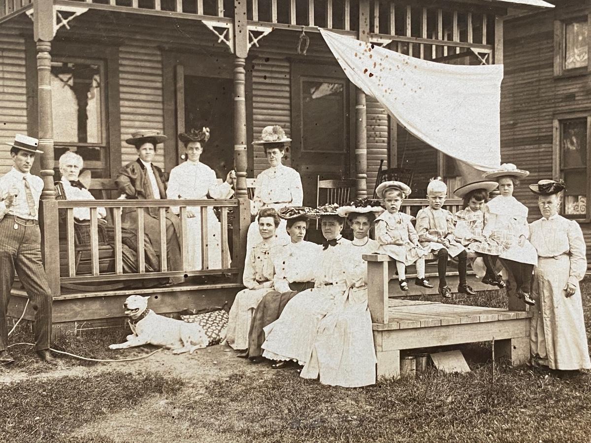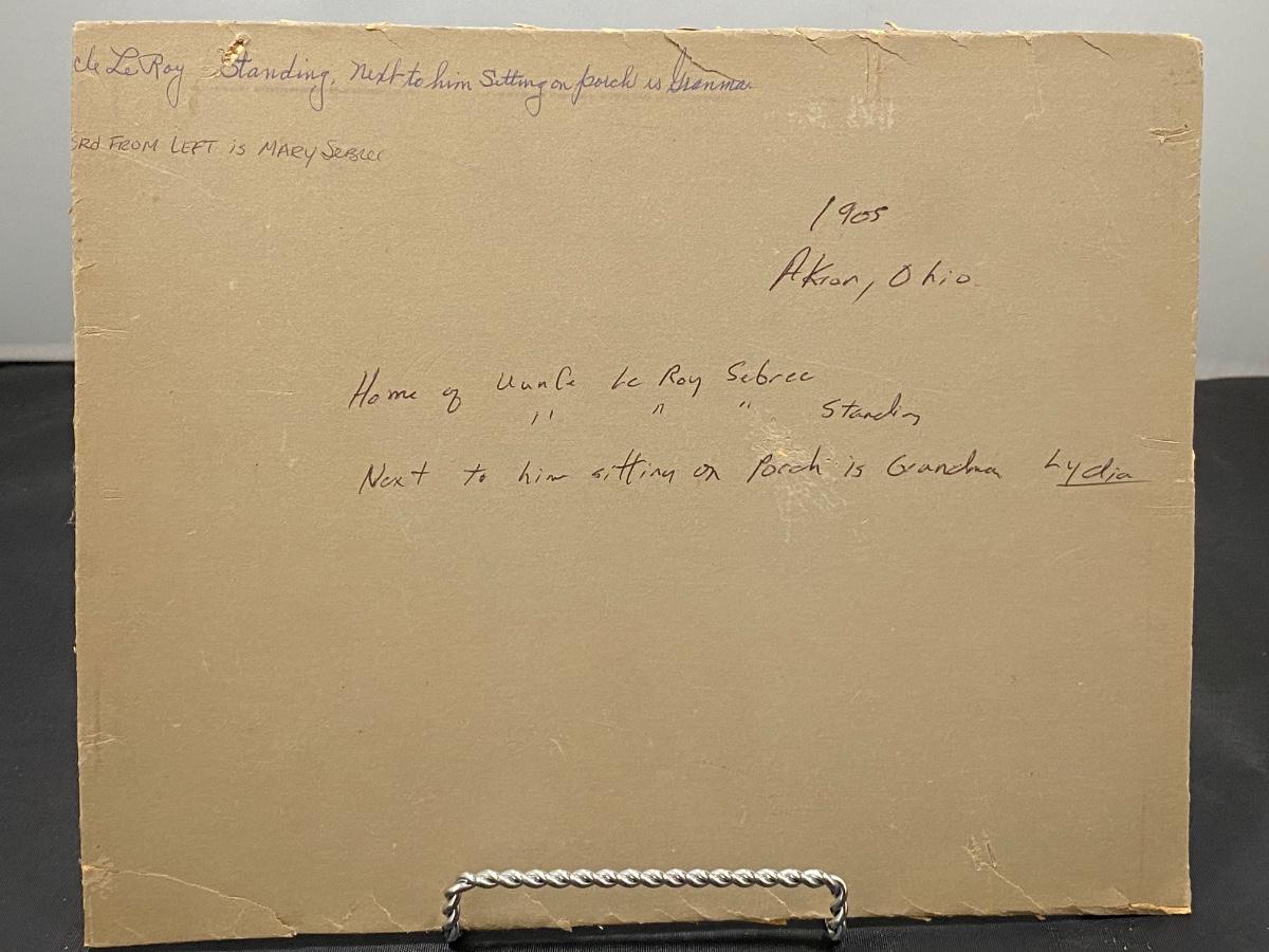 Antique Victorian Family On Porch Photograph 1908 Ohio Writing on Back with Name