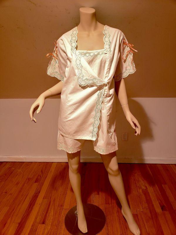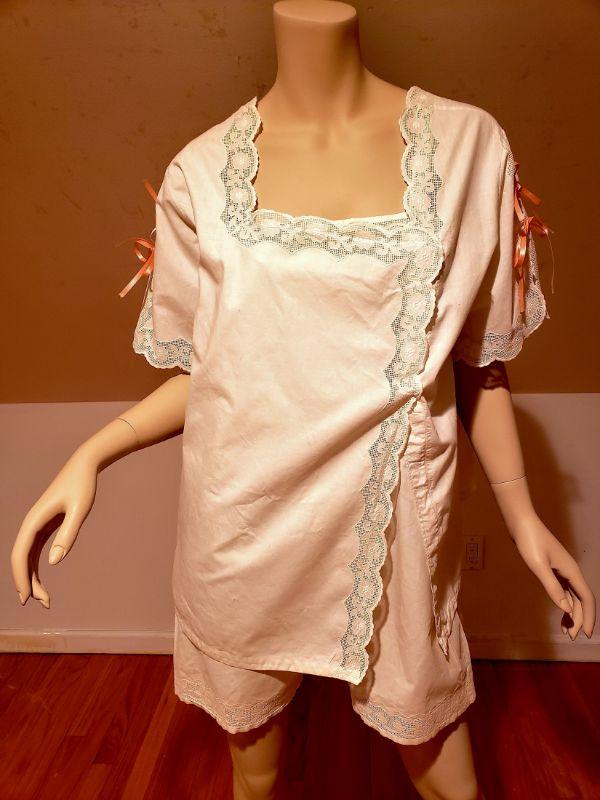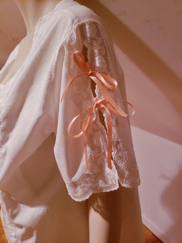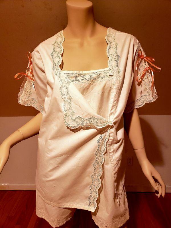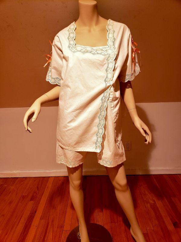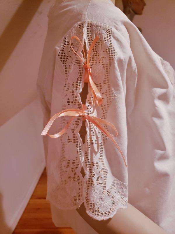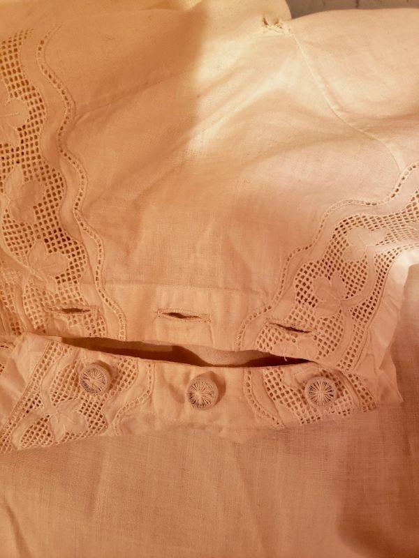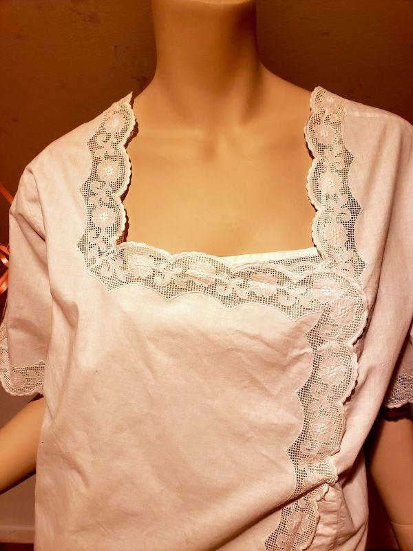 Exquisit ensemble in cotton and handmade Lace and embroidery.