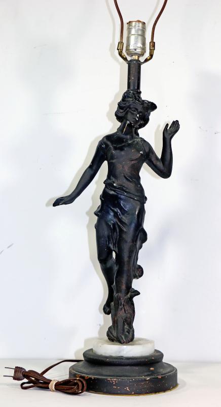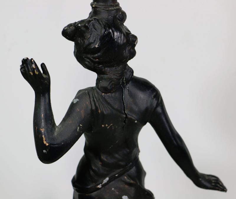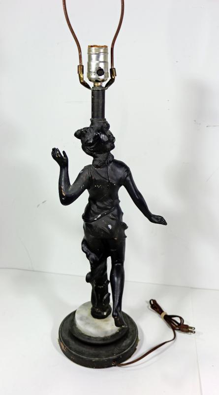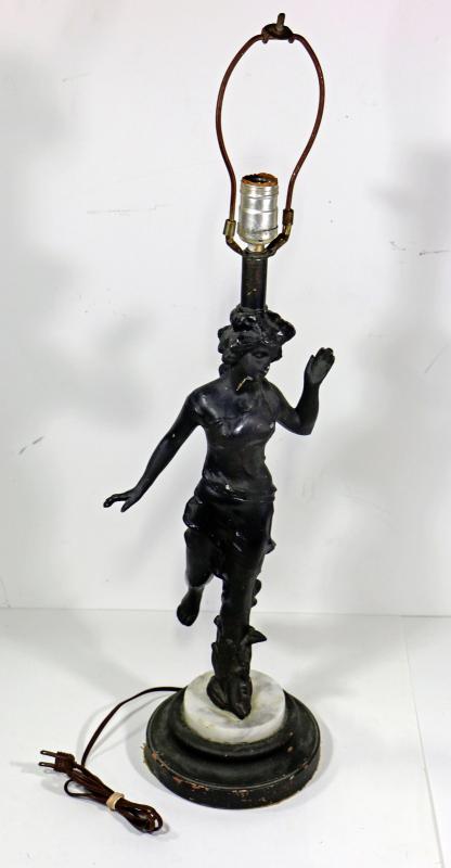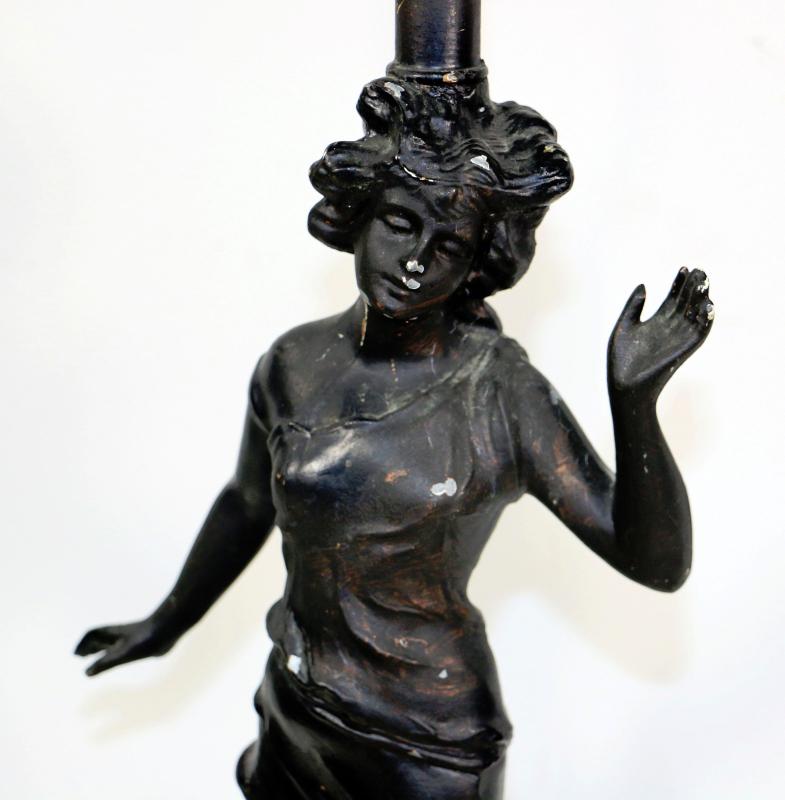 Antique Victorian Figural Metal Sculpture Lamp - 29" Tall.
