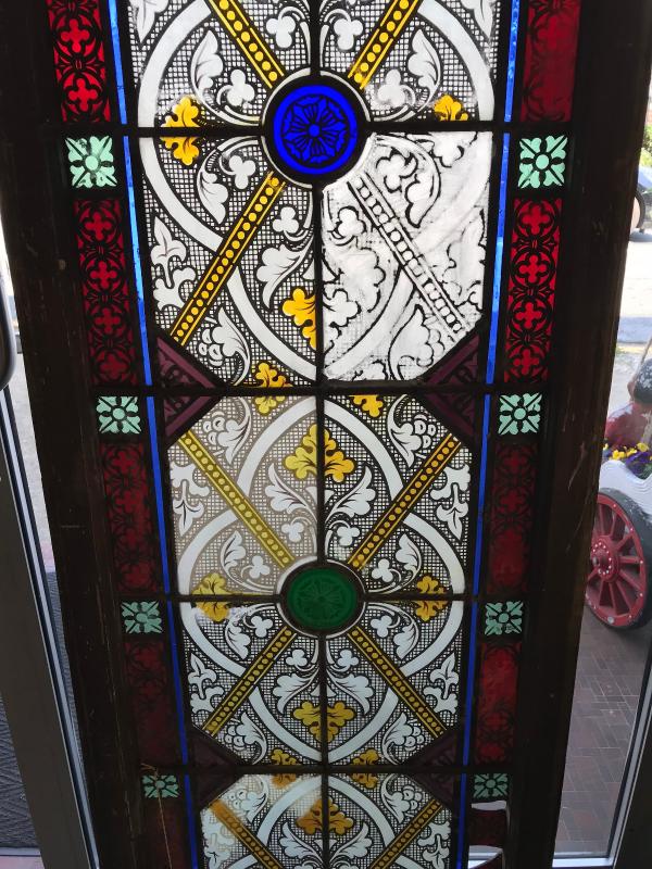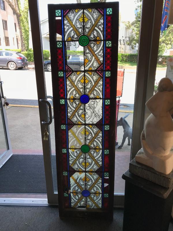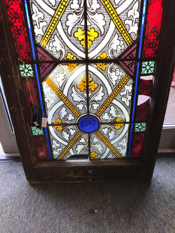 Lot 127-Antique Victorian Gothic Revival Stenciled Stained Glass Panel