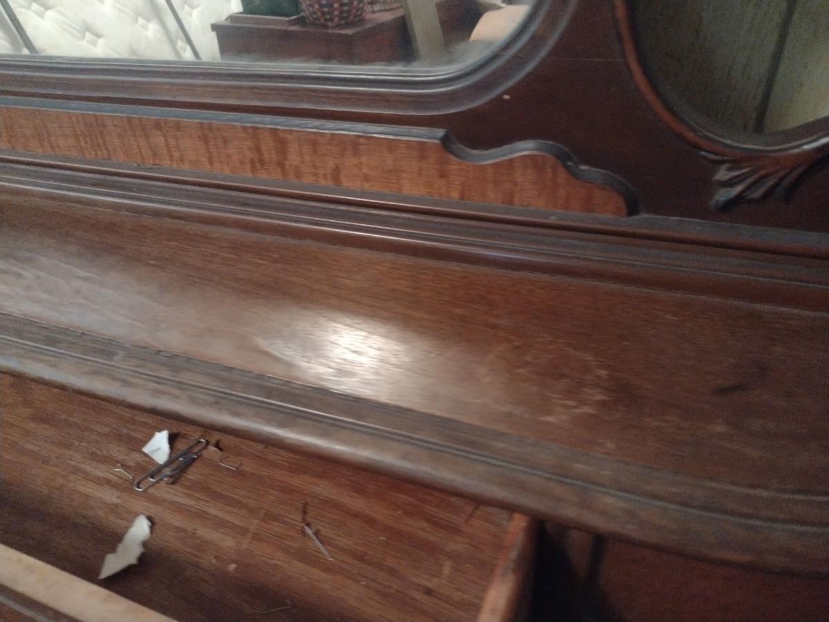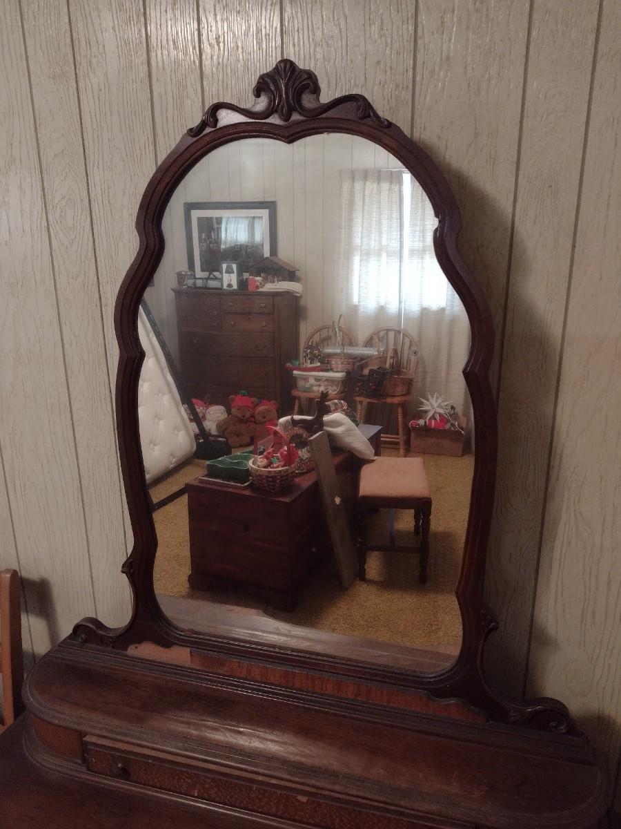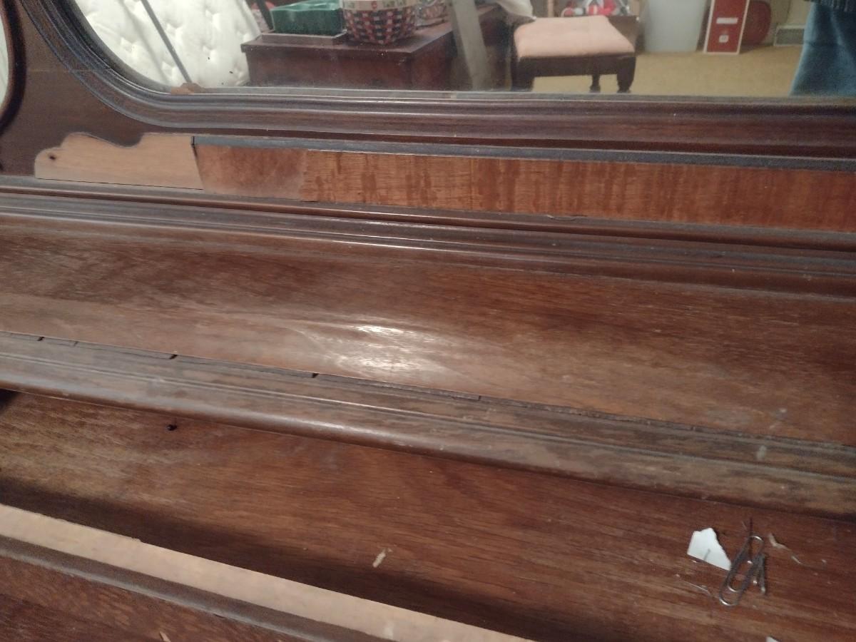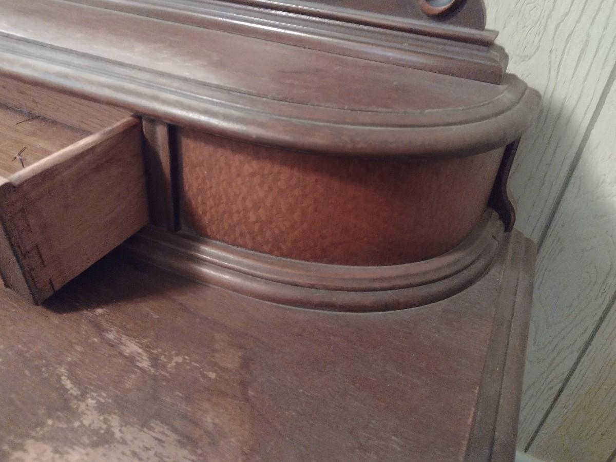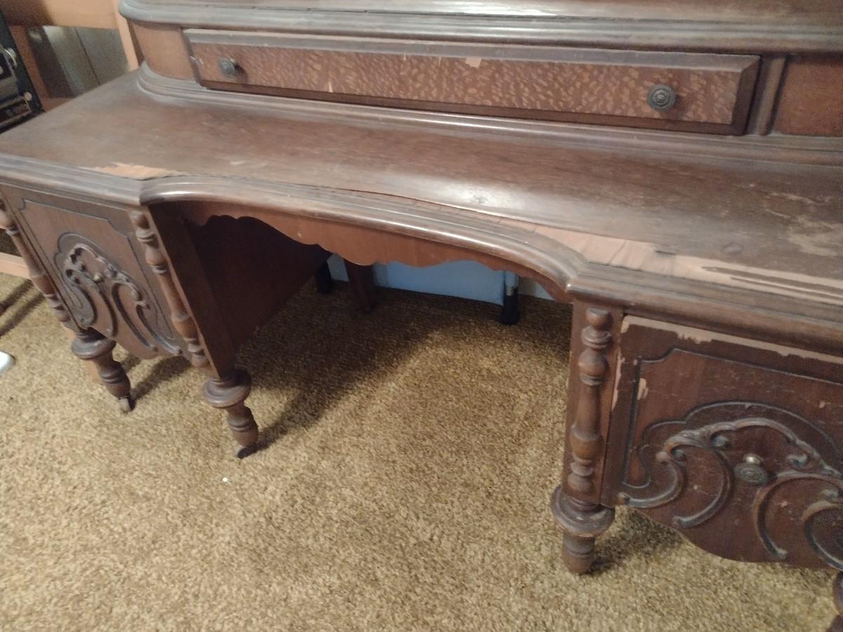 Antique Victorian Mahogany Vanity Desk with Mirror. Has some delamination to finish as shown.