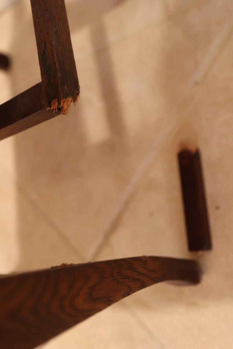 The front right leg is loose and will need attention along with the broken wood, see pictures.