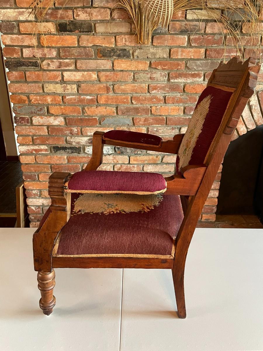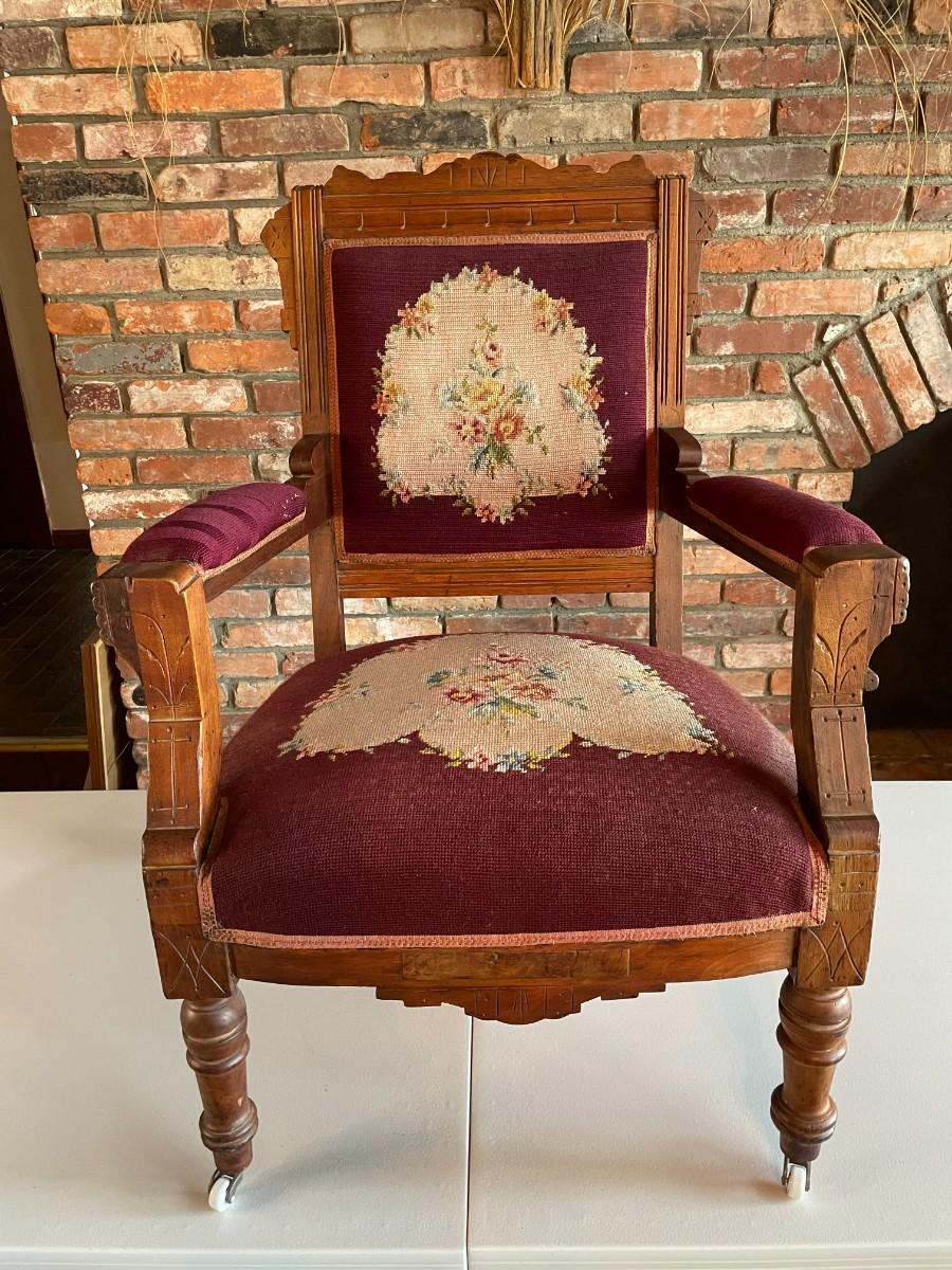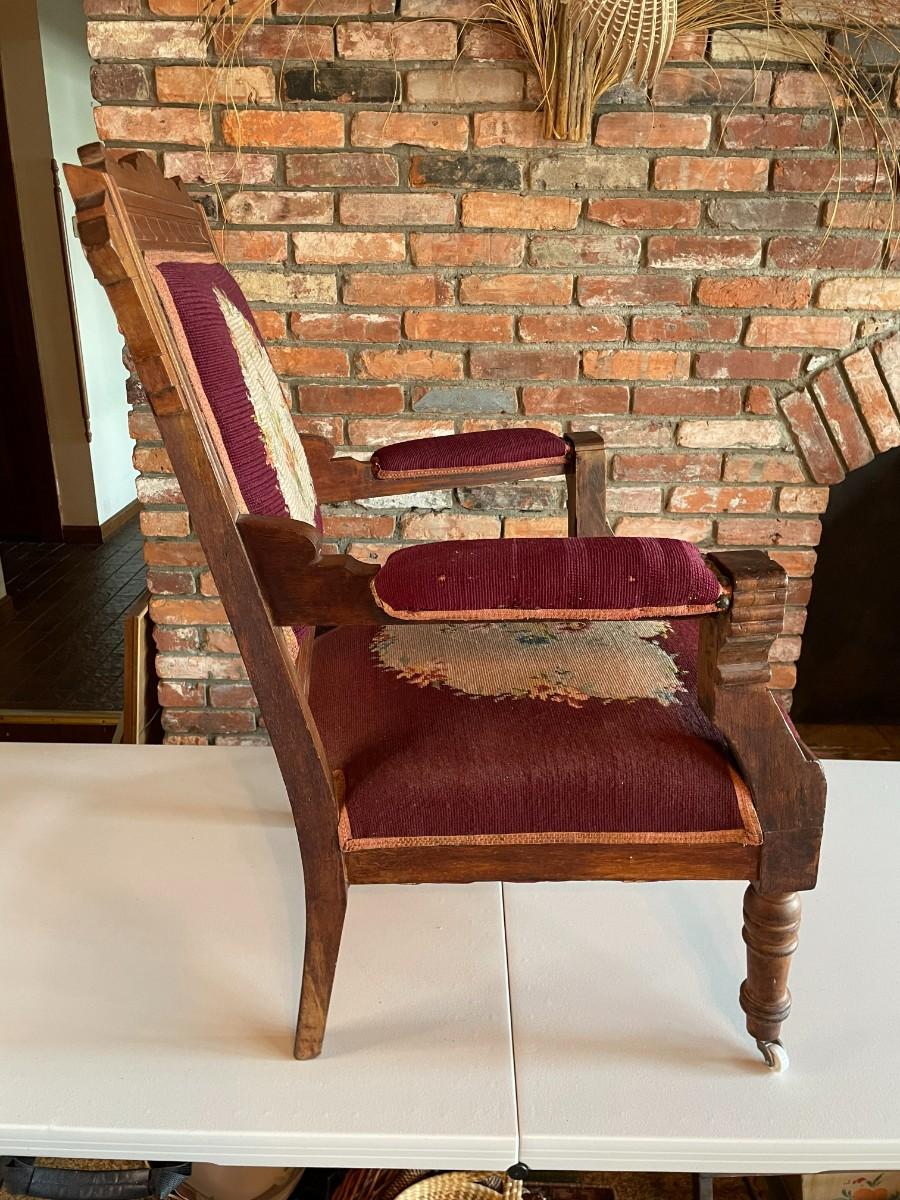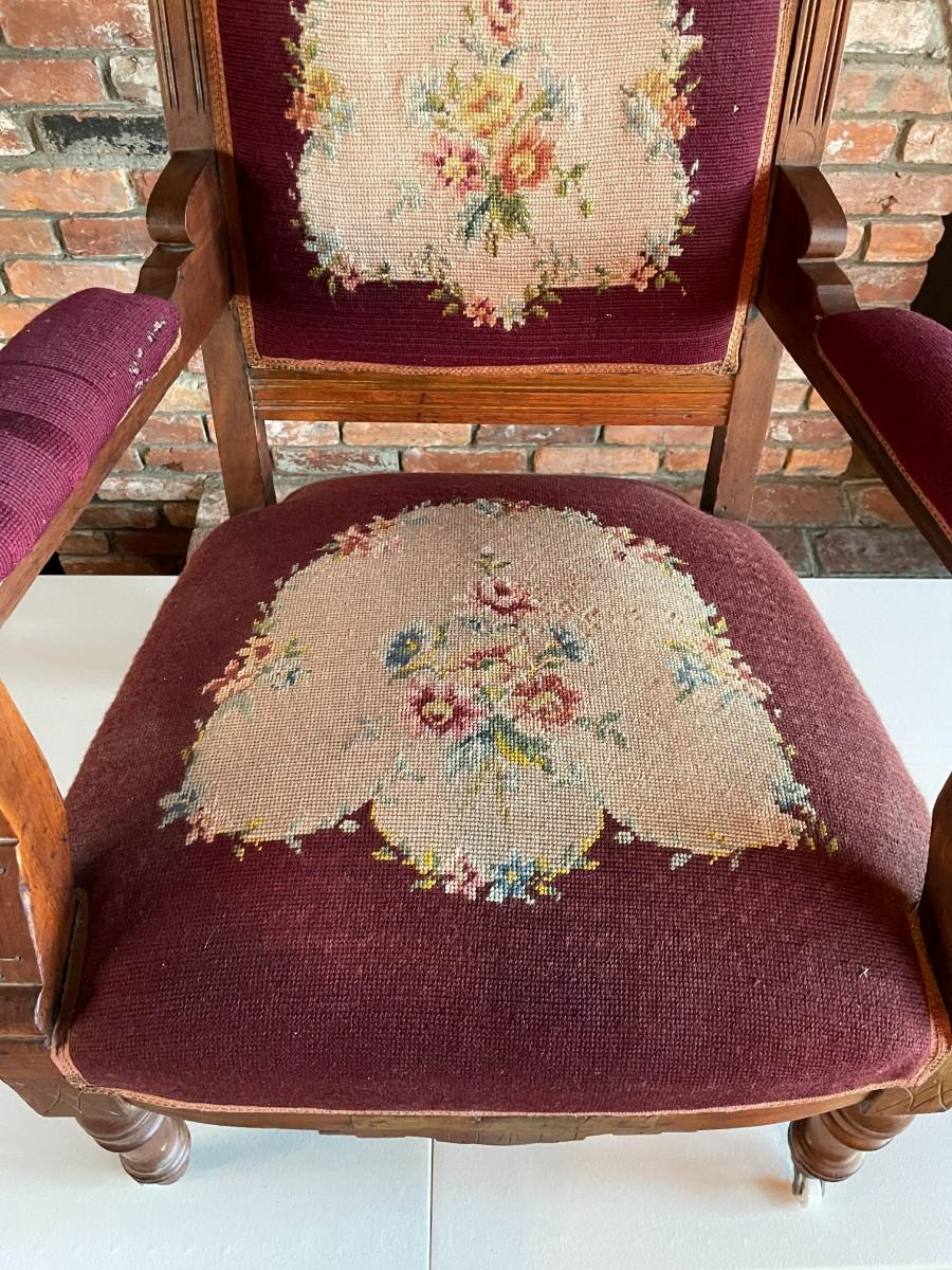 Antique Victorian Renaissance Carved Needlepoint Armchair