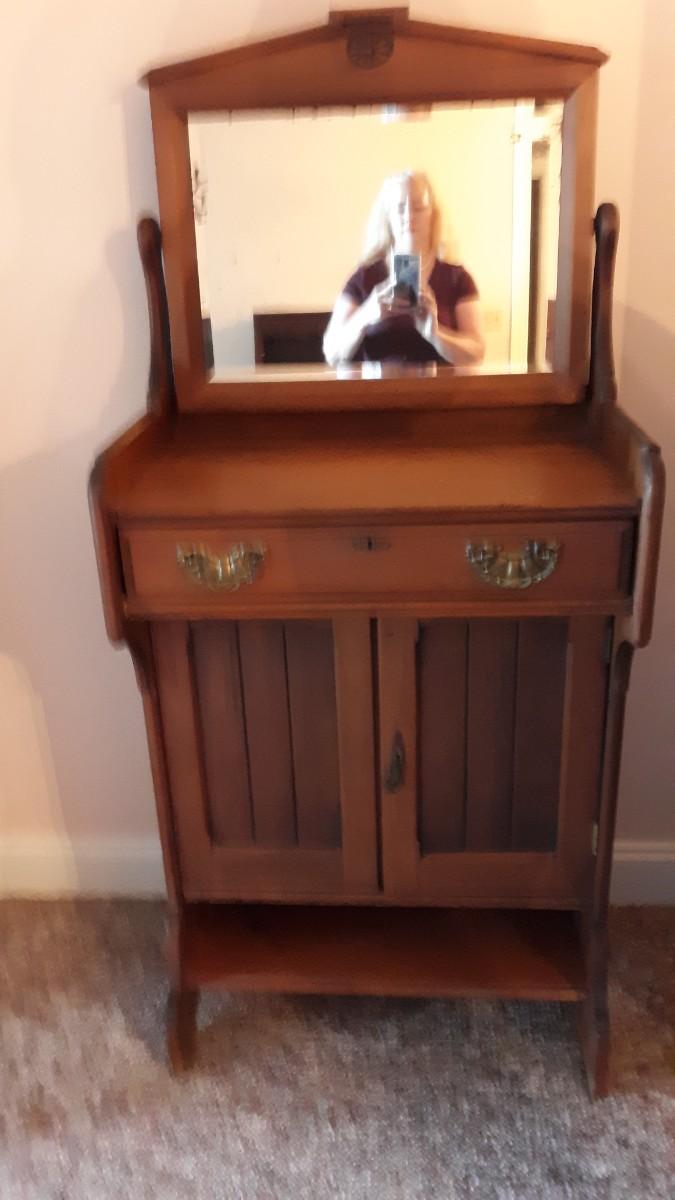 Antique Shaving Stand. Nice item. Beautiful mirror. An amazing piece of furniture.